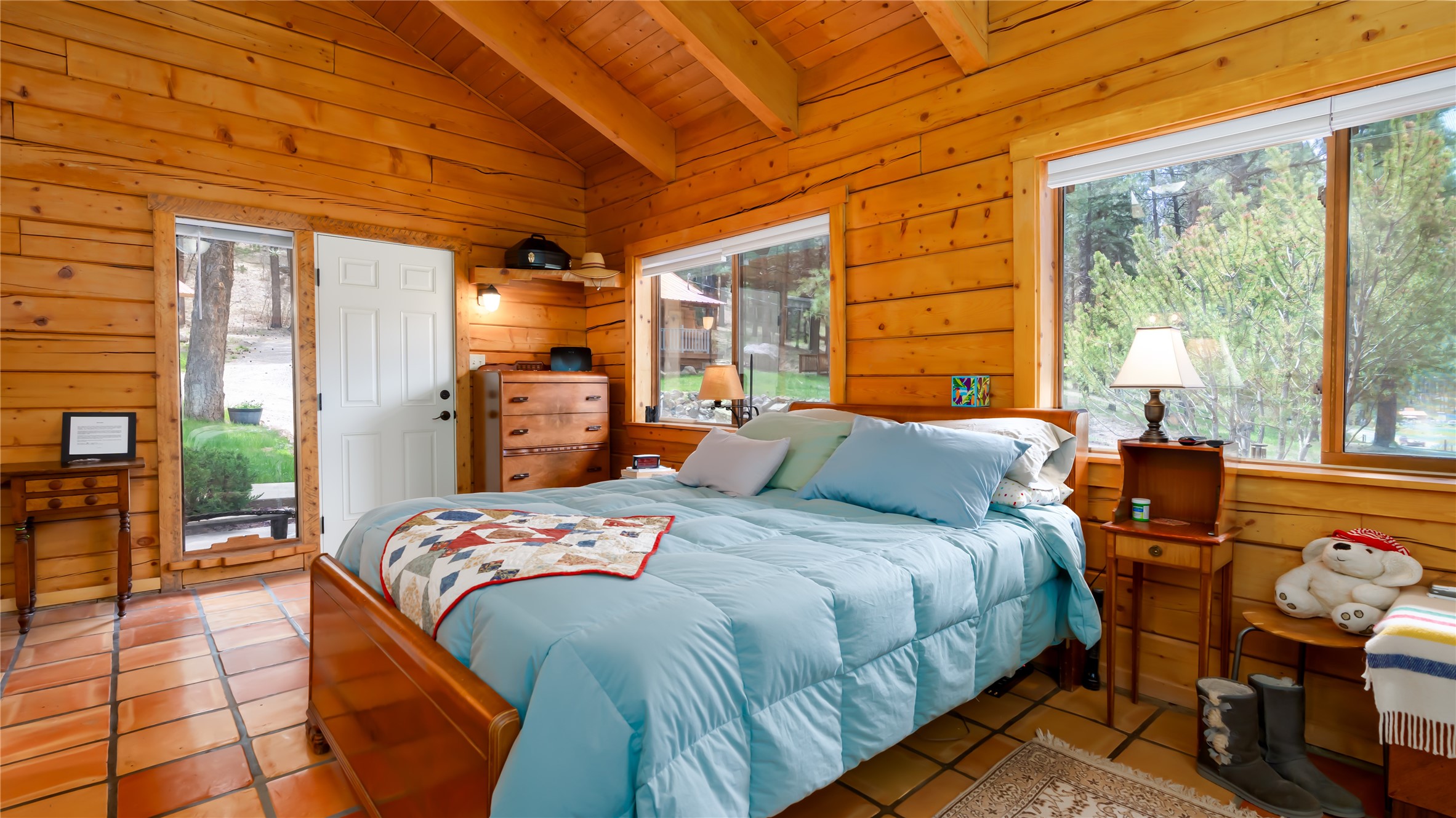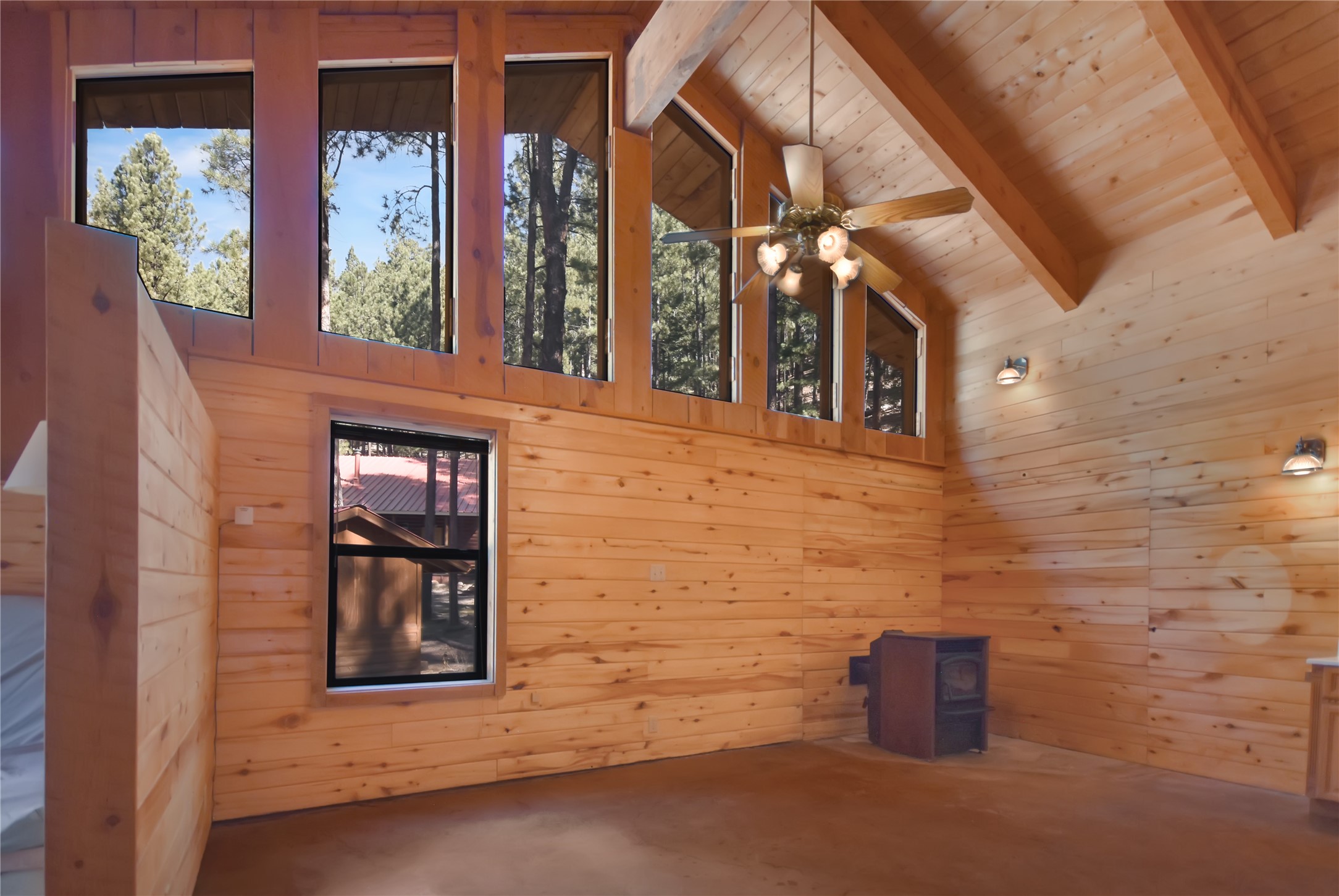 Situated on 3.08 acres encompassing two lots, this former Bed and Breakfast offers endless potential as a home or business venture. The main house has 1868 sq feet of lovely living space with an open-concept great room that showcases beautiful flagstone floors, natural log walls, knotty-pine ceilings and a wall of windows framing the breathtaking views of the Jemez Mountains. The two additional cabins provide potential business opportunities, studio workspaces or a family retreat. The 16X20 garage provides ample space for vehicles and storage. The property borders Santa Fe National Forest, where you can enjoy the Hot Springs, Valles Caldera, Bandelier, Hiking, Skiing and Mountain Biking. Only 45 minutes to Los Alamos, 1.5 hours to Albuquerque and 1.25 hours to Santa Fe.
