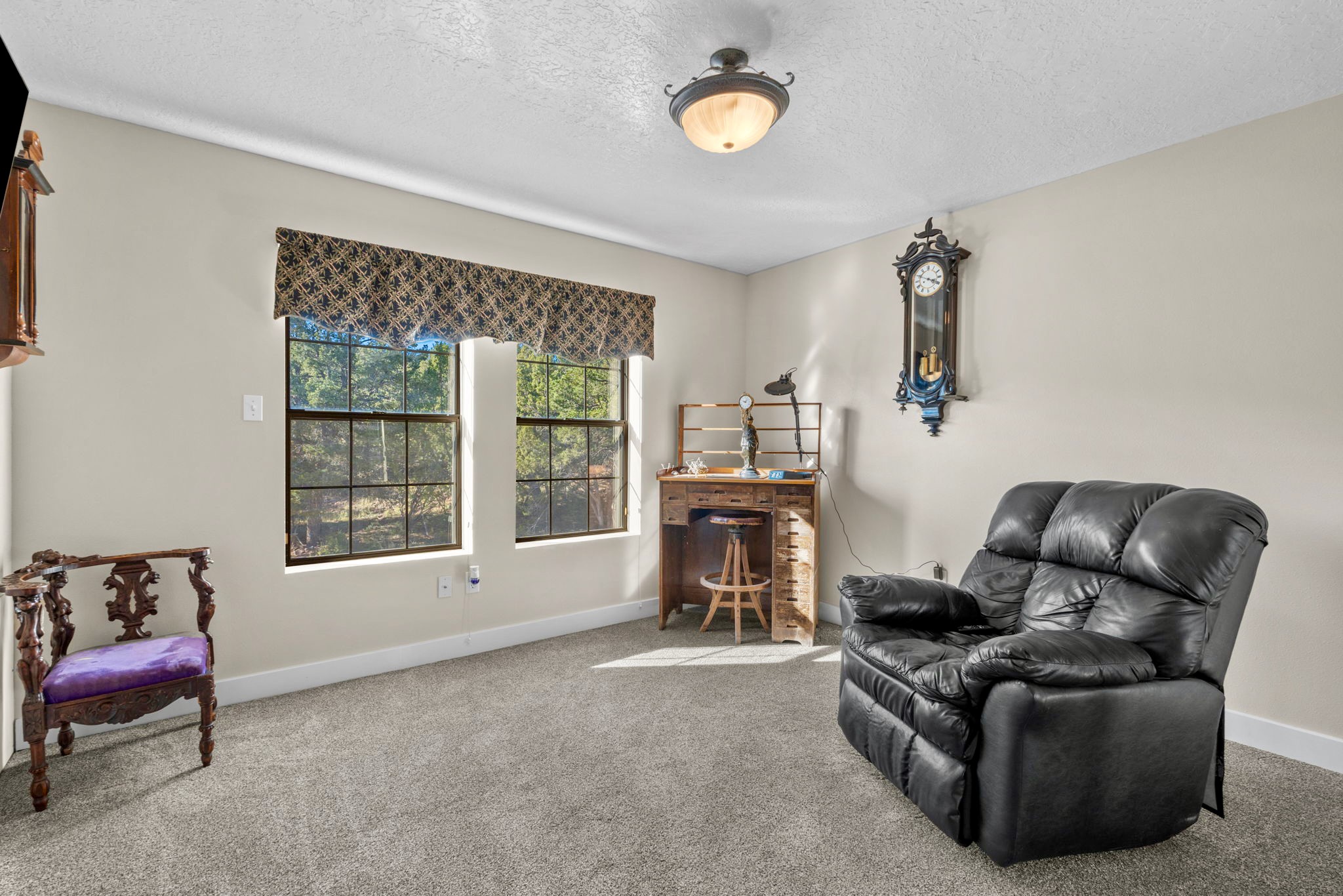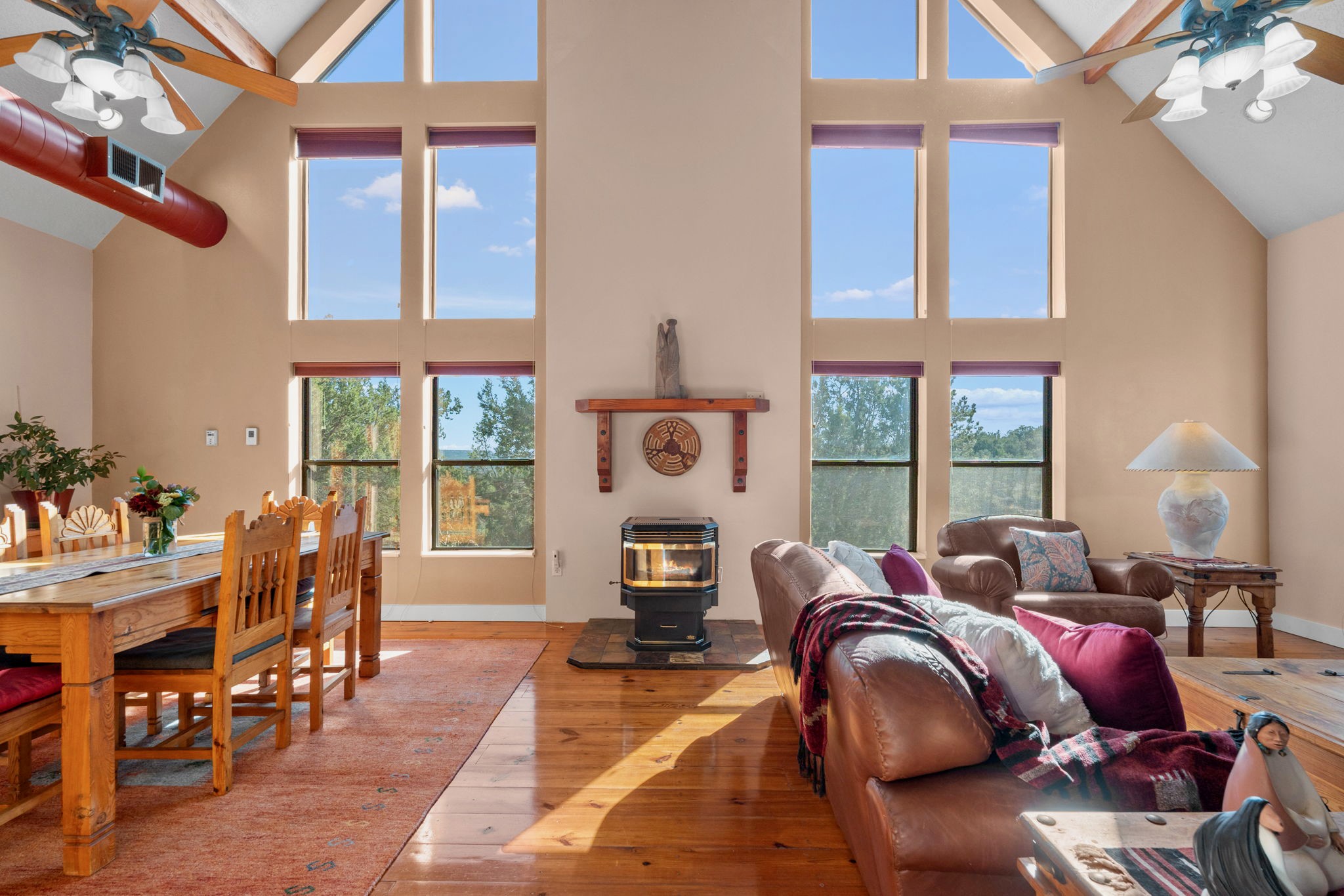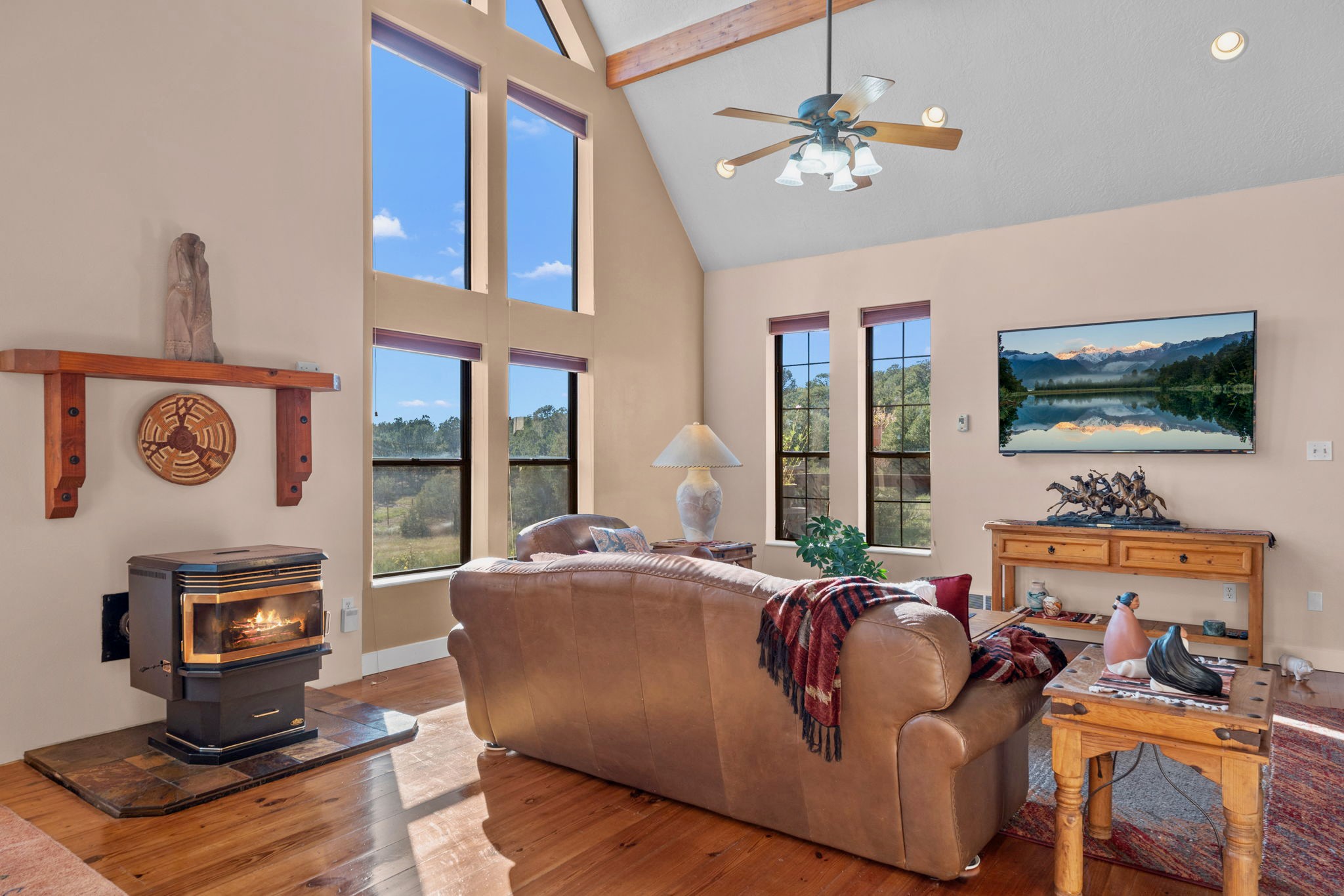 This one-owner home captures what people love about mountain living--peace, privacy, and endless views--while keeping Albuquerque within easy reach. Sitting on over 2 acres, the 3,062-square-foot, three-story layout blends warmth and space with sunlight in every room. The main level's open living area has all the comforts you expect yet still feels like a mountain retreat; this level is completed with two bedrooms & a large full bath. Downstairs, a large bonus room offers flexibility for a game room, creative space, or extra hangout; it includes a bathroom with shower, laundry room & lots of storage. Upstairs, the owner's suite spans into the loft, where morning light and the views remind you how special this setting really is. Practical features include an oversized garage, passive solar, no HOA, connected to Entranosa water system (no water hauling here!), and zoned A-2 so plenty of room for your barnyard friends. Plus, a newer evaporative cooler + recent roof tune-up, septic tank replacement and freshly stained wood siding.At Magic Valley, you'll find dark, star-filled skies, wildlife visitors, and friendly neighbors who value privacy. If you've been dreaming of a quiet country setting with an easy 30-minute commute to town, this may be the one.