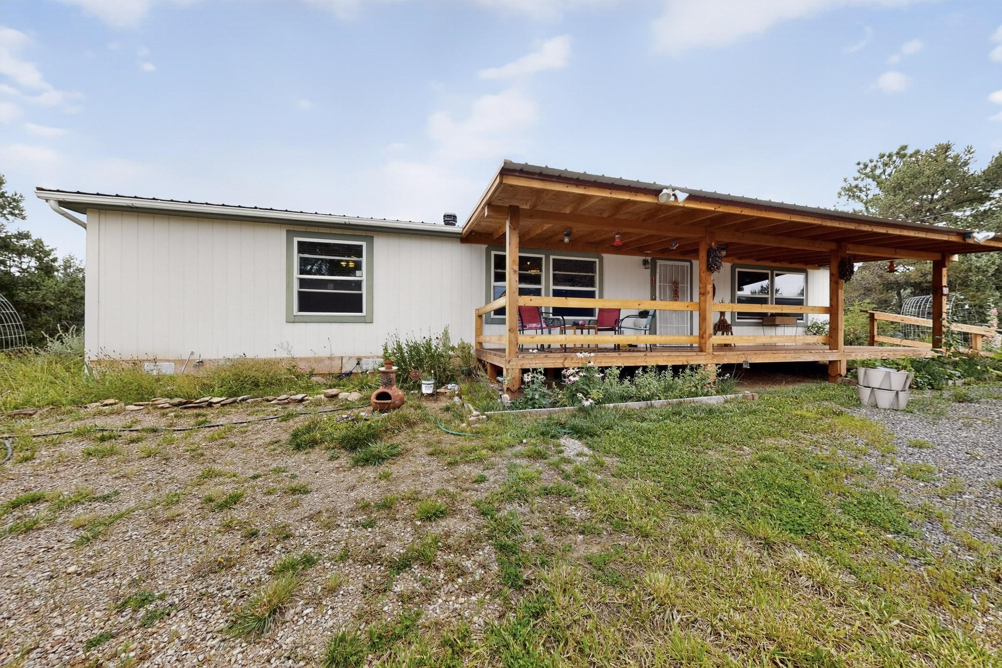 11 Corte Vargas has a 2007 3 bedroom, 2 full bath doublewide manufactured home on a permanent foundation sited on 1.026 +/- acres located in the Glorieta area, 22 minutes to Santa Fe. The home is accessed from a covered porch, has living room with wood burning stove, cook's kitchen, split bedroom floor plan, forced air heating as well as air conditioning, ample closets, washer and dryer. The area around the home is nicely landscaped with perennial flowers, walkways, covered chicken coop, 2 car carport and designated sitting and viewing area. Adjoining 5.37 acres also for sale MLS #202504963, for $124,900