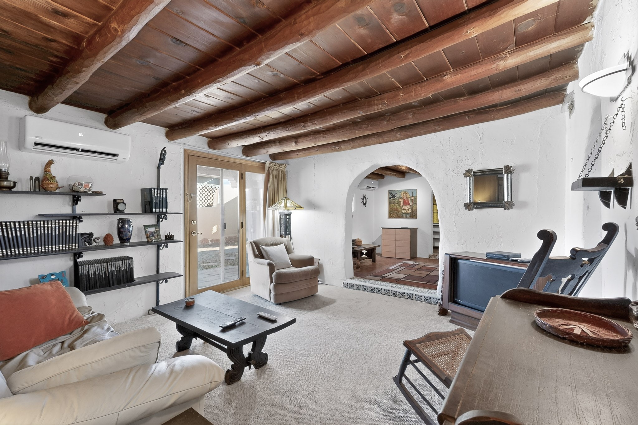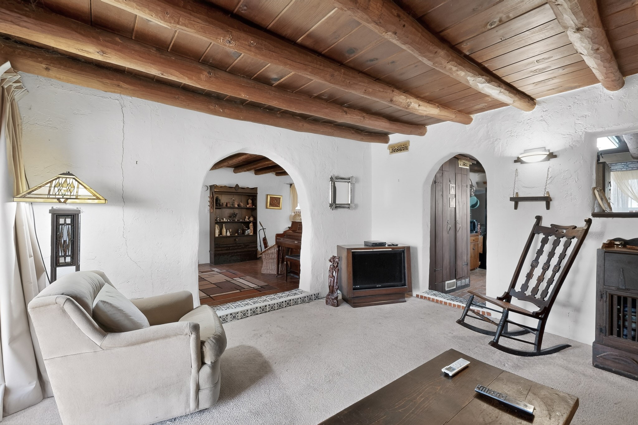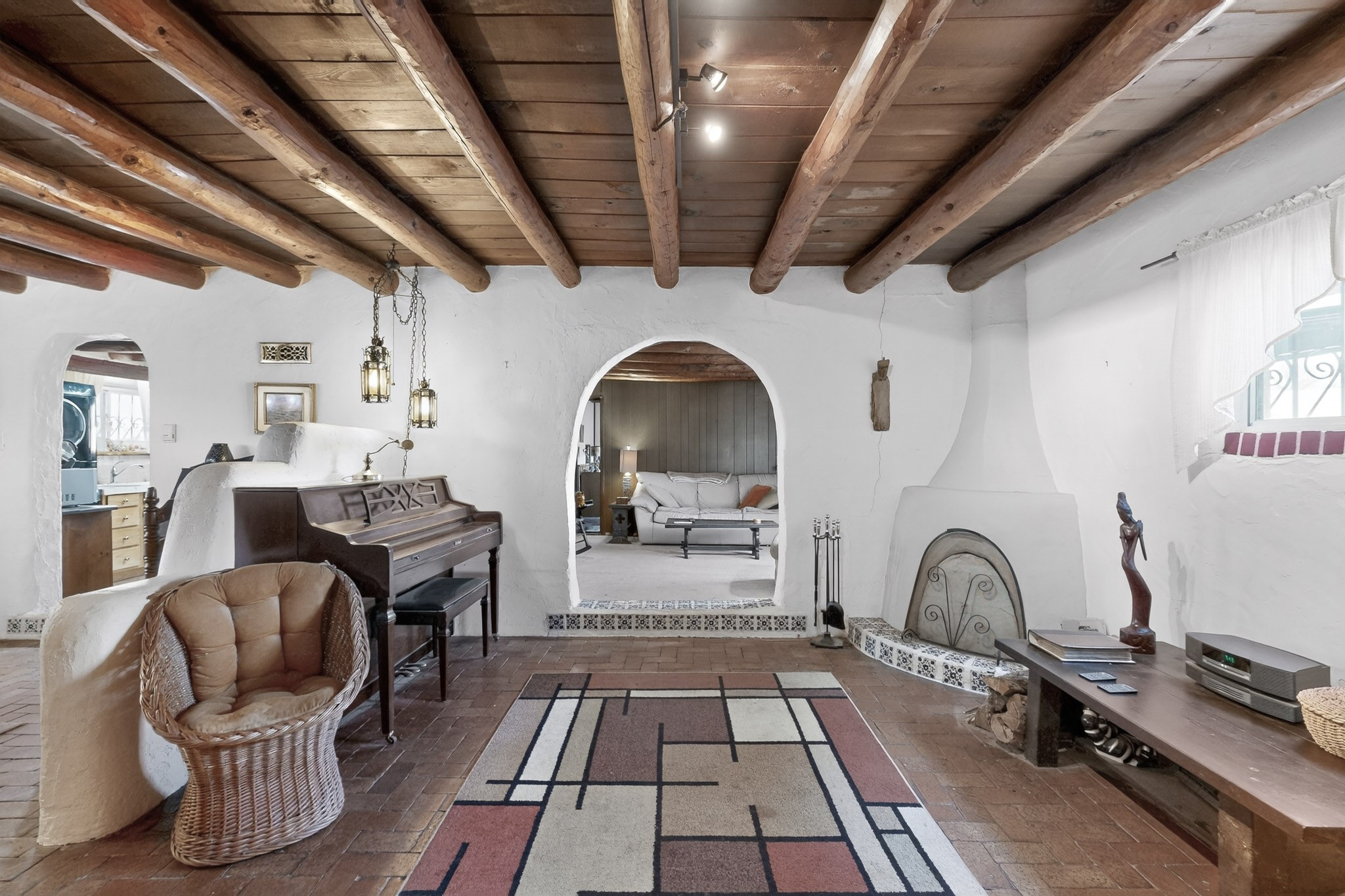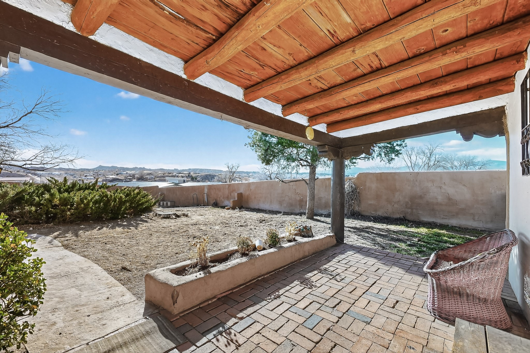 If you've been searching for the perfect Pueblo-style home, your search ends here. The moment you approach this property, you'll be charmed by the surrounding walls, which offer exceptional privacy. Embrace the serenity of small patio areas and maintain the lovely, small gardens. Inside, the home is filled with authentic Southwestern features, including wooden vegas (beams), display nitchos, and cozy kiva fireplaces. The kitchen is a practical and efficient space, complemented by hand-painted Mexican tile and bricked flooring that flow throughout. While this home possesses so much character and a wonderful hacienda feel, the bathroom is one area the new owner might want to customize. Although fully functional, it awaits final Southwestern-style updates to match the rest of the home's charm. Adding to the appeal are the views of the Jemez Mountains, and the property is a total of one acre. This home offers immense potential and is simply waiting for a new owner to love and enjoy all that it provides. A short drive to Los Alamos, and close to shopping,