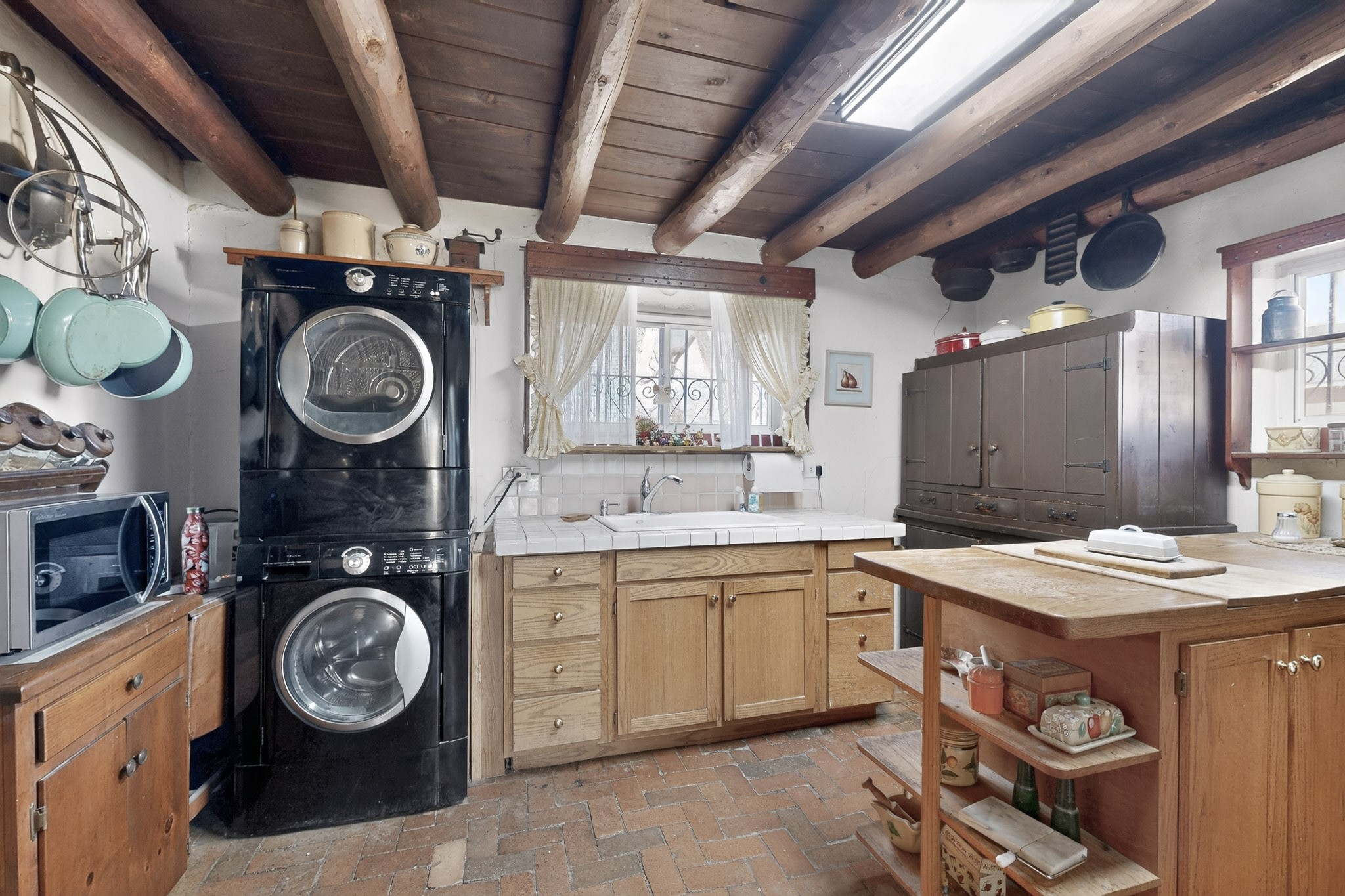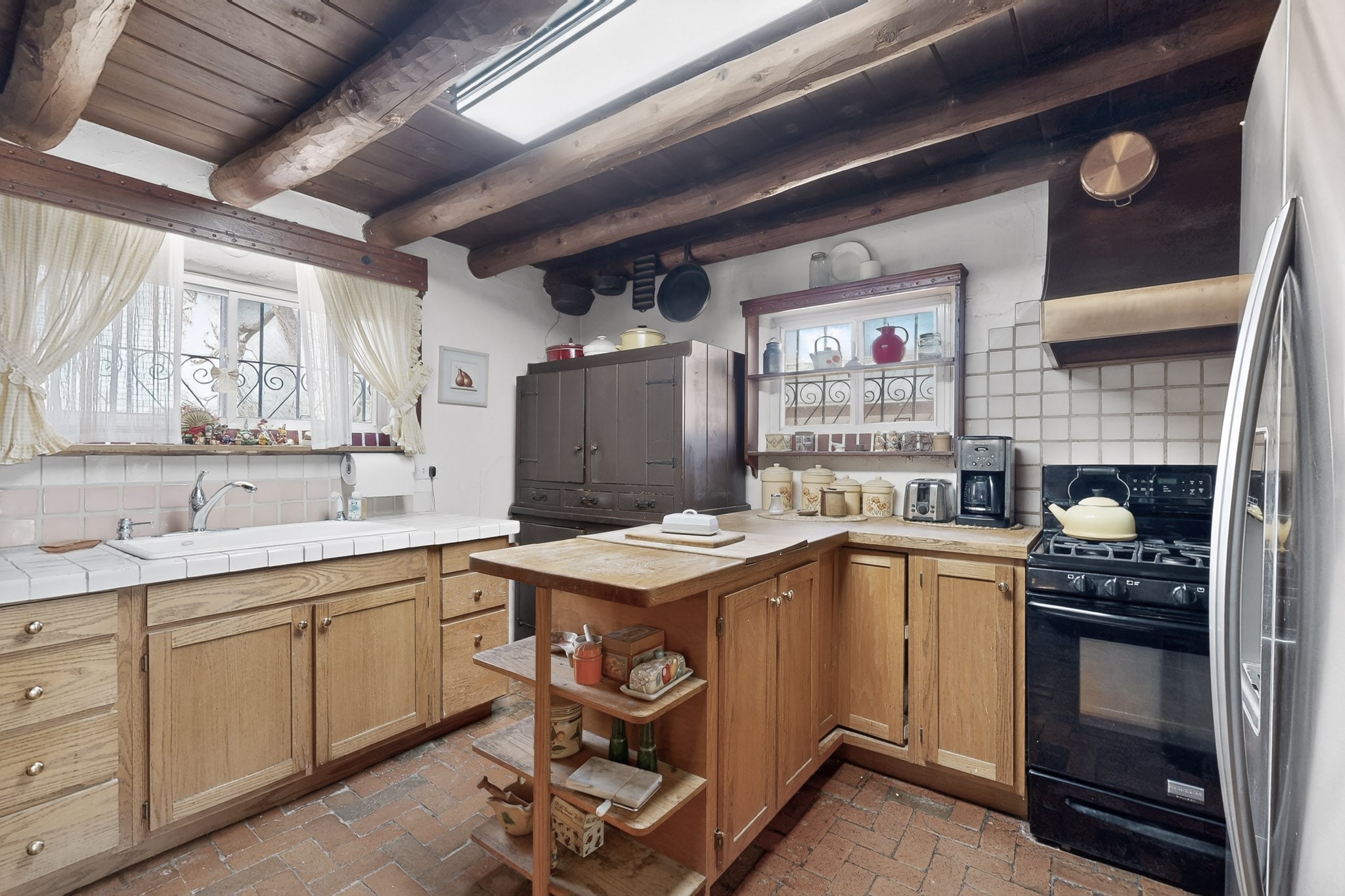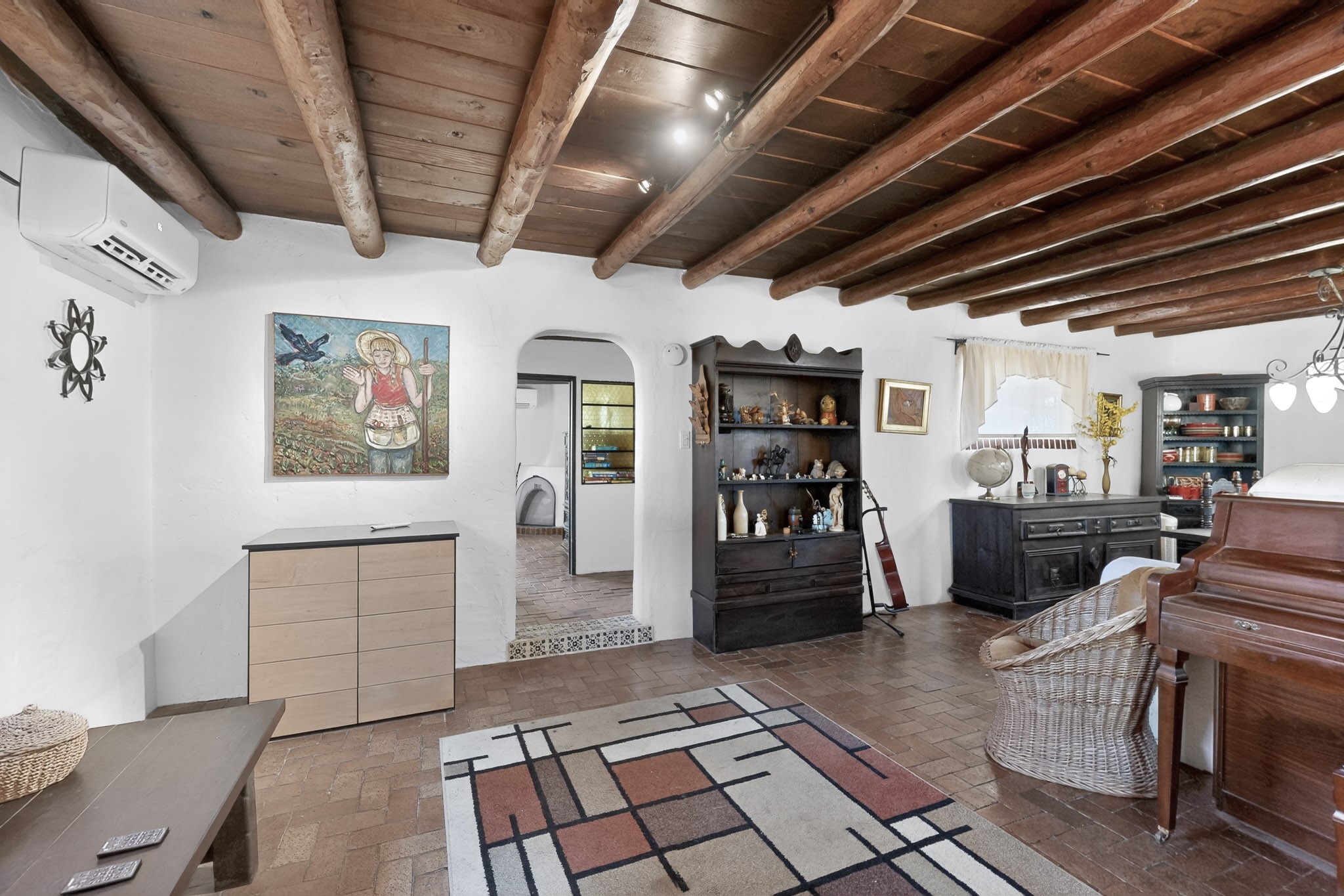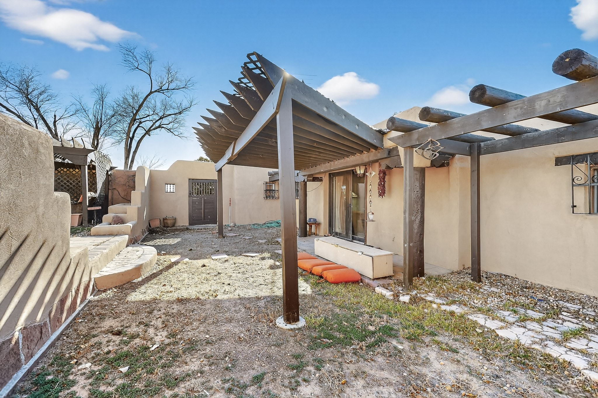 If you've been searching for the perfect Pueblo-style home, your search ends here. The moment you approach this property, you'll be charmed by the surrounding walls, which offer exceptional privacy. Embrace the serenity of small patio areas and maintain the lovely, small gardens. Inside, the home is filled with authentic Southwestern features, including wooden vegas (beams), display nitchos, and cozy kiva fireplaces. The kitchen is a practical and efficient space, complemented by hand-painted Mexican tile and bricked flooring that flow throughout. While this home possesses so much character and a wonderful hacienda feel, the bathroom is one area the new owner might want to customize. Although fully functional, it awaits final Southwestern-style updates to match the rest of the home's charm. Adding to the appeal are the views of the Jemez Mountains, and the property is a total of one acre. This home offers immense potential and is simply waiting for a new owner to love and enjoy all that it provides. A short drive to Los Alamos, and close to shopping,