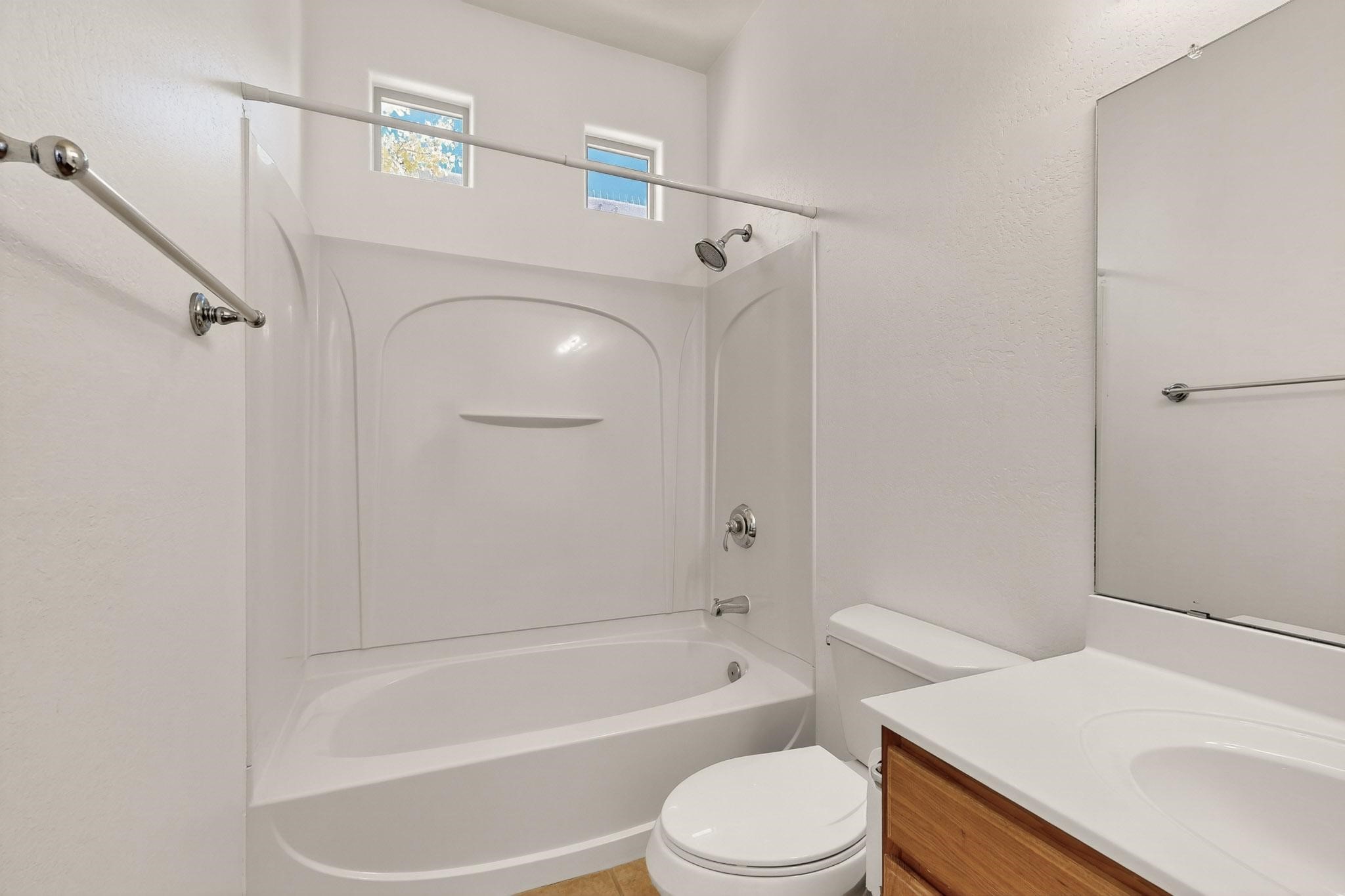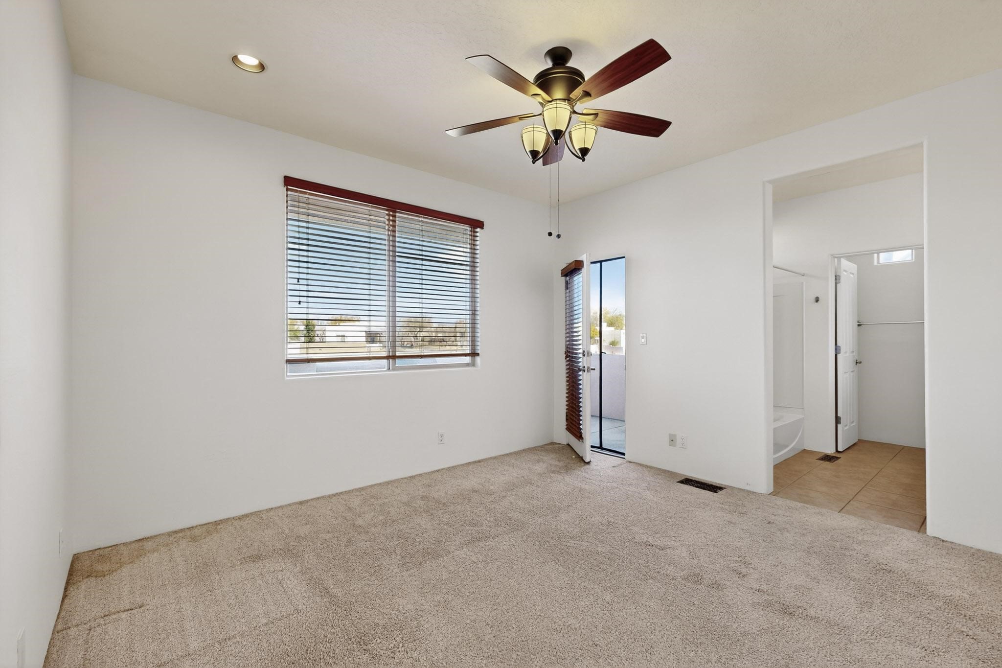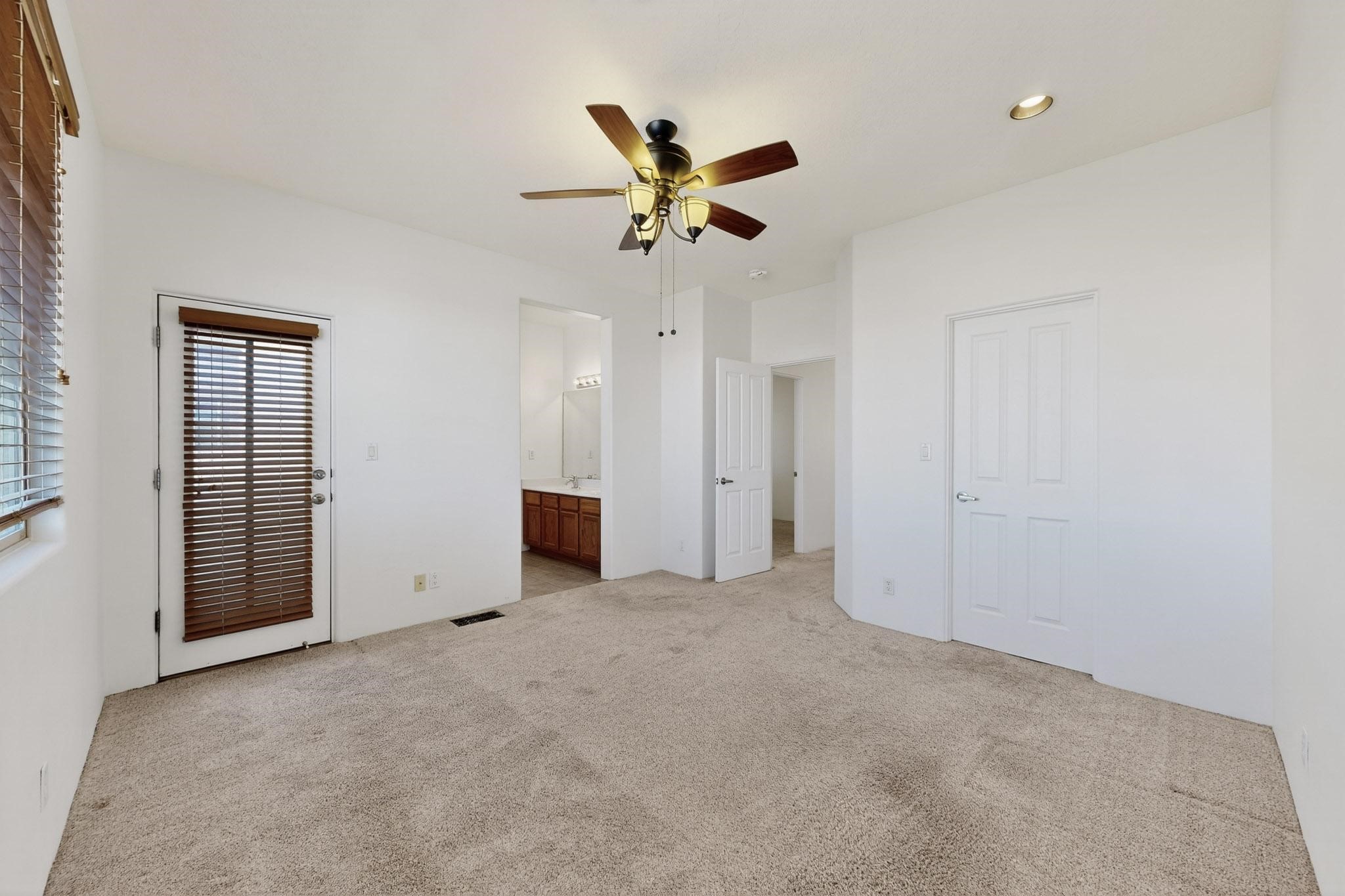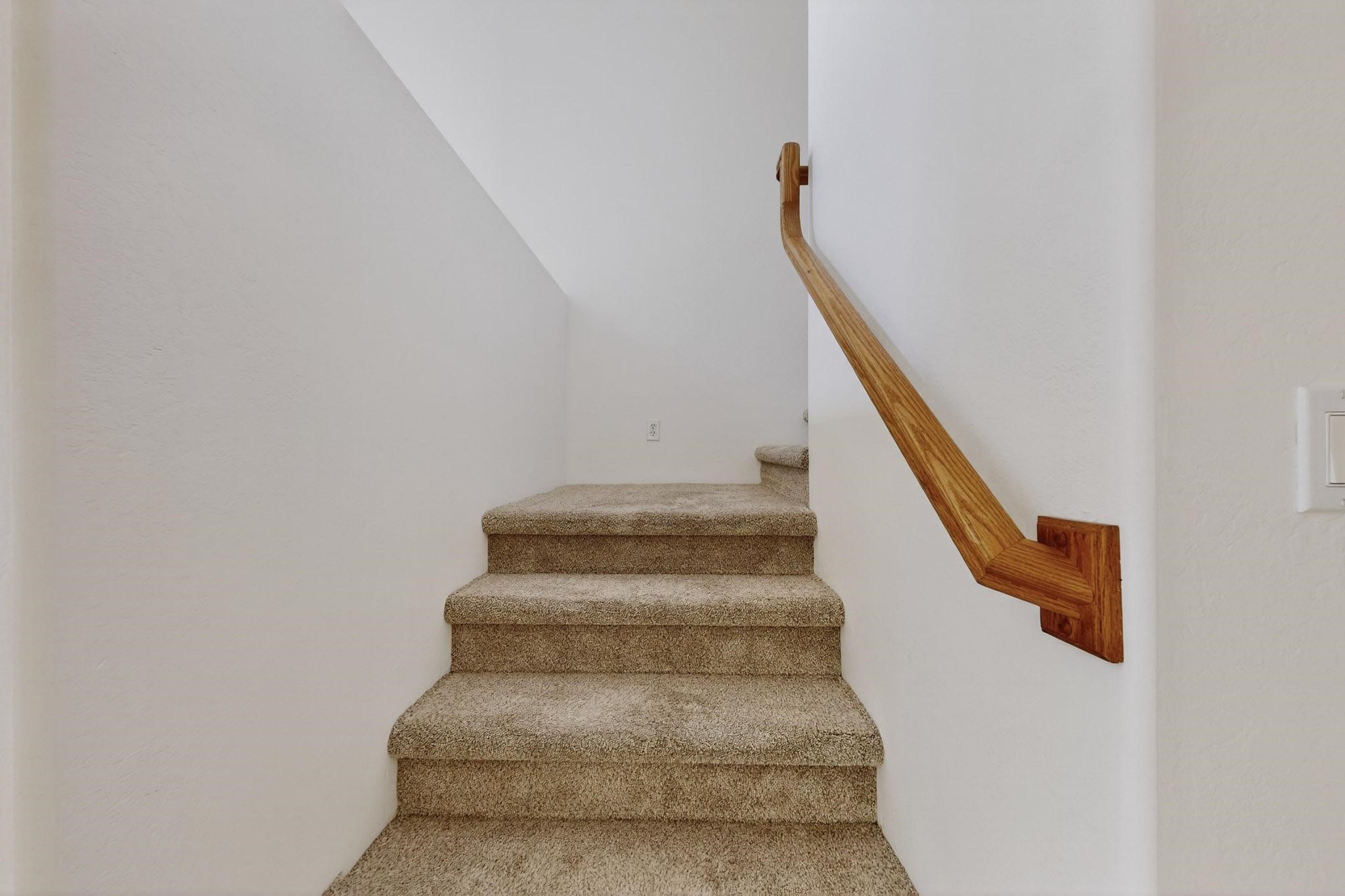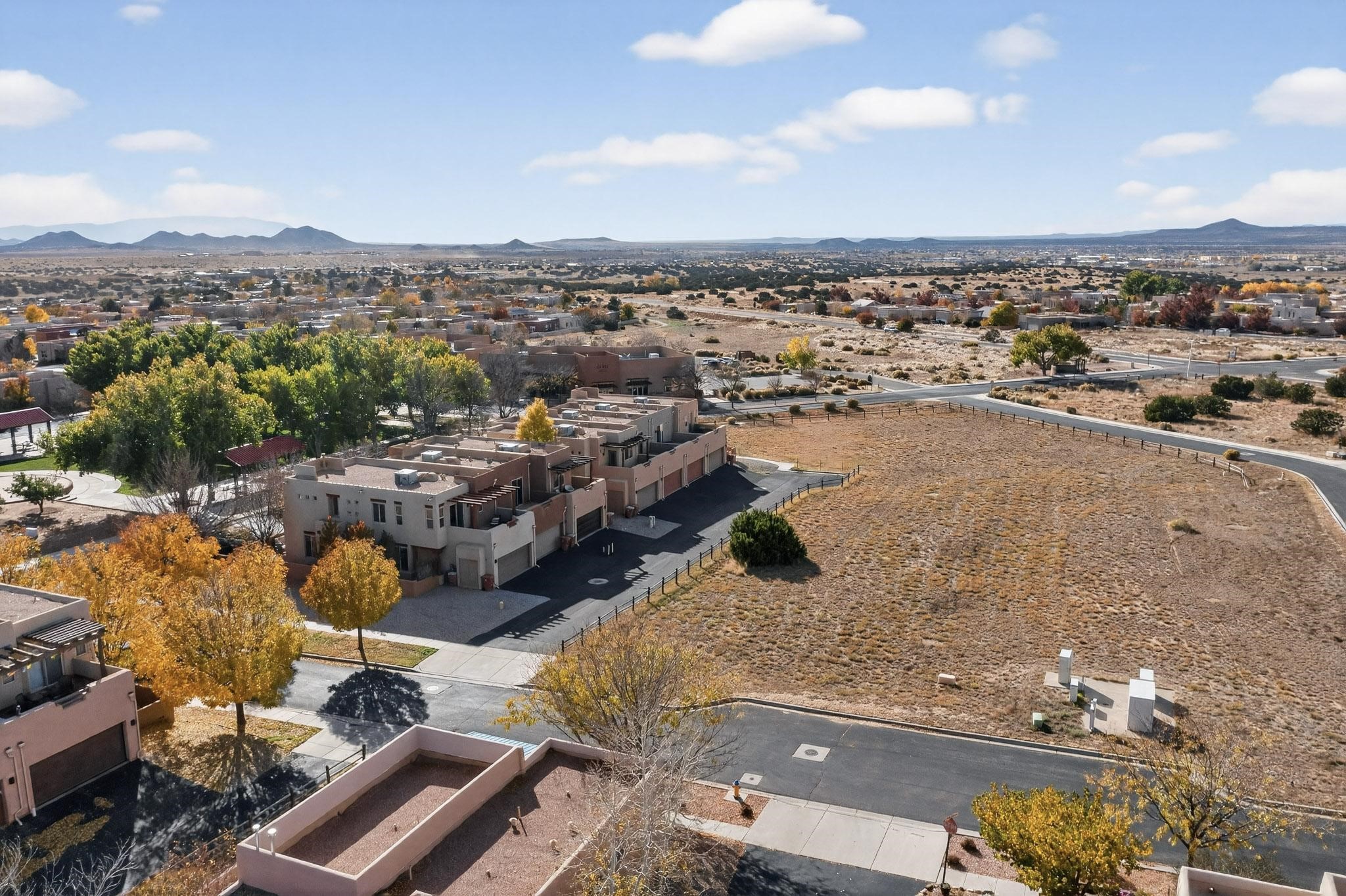 Have you been searching for your dream home in Rancho Viejo? You've come to the right place! This is an end unit home that has been meticulously cared for. The front and side yard have been nicely landscaped and there is a custom-made front entry screen door to welcome you inside. This the Nambe floorplan which boasts a soaring 19 ft. ceiling in the living room with viga accents, along with a diamond plaster kiva gas fireplace to complete the coziness of the home. Downstairs has tiled floors while the upstairs has a neutral color of carpet. There is a half bath downstairs, along with alaundry room with additional storage. The garage has more storage with built in shelving securely attached to the wall. Upstairs are the two bedrooms, two baths and loft area that can have a multitude of uses. The loft also has a door, with a magnetic screen, leading outside to a nice deck for you to enjoy the southern views and the park across the street. The primary bedroom also has a door, with a magnetic screen, leading to a larger deck and pergola for you to enjoy the northern views. The primary closet also has additional shelving. The HOA has recently had the roof replaced and ownerreplaced the water heater and PRV in 2025. With easy access into the subdivision, this home is close to restaurants, schools and a community park with connecting biking/walking trails.