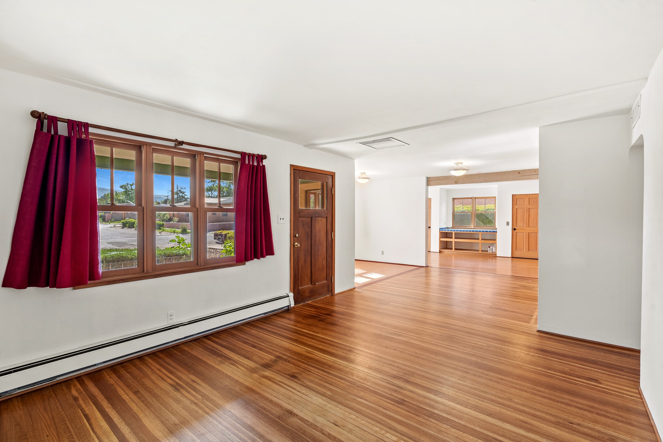 Charming and versatile single-level home nestled in the highly sought-after Casa Alegre neighborhood. Back on the market with significantly improved price. This property stands out as a unique opportunity, featuring multiple living areas and exceptional flexibility for the modern homeowner. This generous residence offers three bedrooms and two bathrooms, complemented by a large heated and finish open area. The oversized bonus space features direct access, presenting enormous possibilities. It's perfectly suited for a private art studio, home occupancy business, large gym, or a dedicated multi-generational living suite. The interior includes dedicated family, living, and dining rooms, all boasting beautiful hardwood flooring throughout the main living areas. Santa Fe Lifestyle at Your Doorstep. Enjoy true convenience with easy access to local shopping and dining. Best of all, the home is ideally situated near the Santa Fe River Trail and the Acequia Trail, providing direct, car-free routes straight to the vibrant Railyard District and historic downtown. The property features a spacious, fenced backyard and a covered portal, creating an ideal setting for outdoor entertaining and relaxation. Enjoy year-round comfort with reliable hot water baseboard heating and evaporative cooling.This motivated seller opportunity won't last long--schedule your showing today!