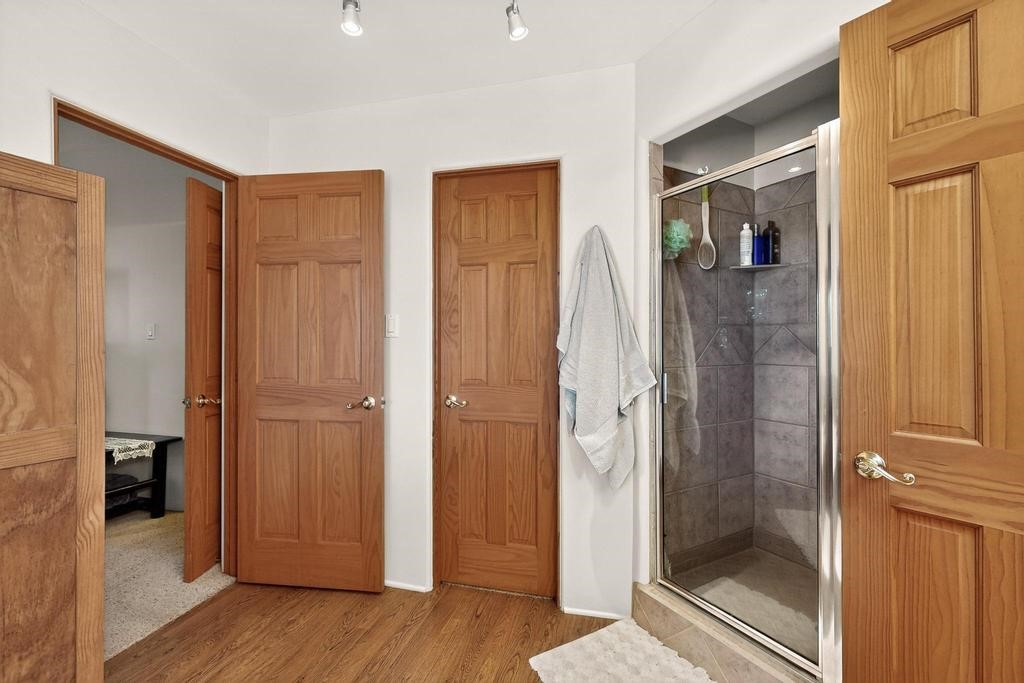 Don't miss this charming single-level home in Pueblos del Sol featuring three bedrooms and two bathrooms. This residence showcases classic Santa Fe details such as Vigas and a cozy Kiva fireplace. Lots of natural light streaming in from five skylights throughout the home. The open floor plan provides great flow and comfortable bedroom separation, while the spacious deck with a solid portal--accessible from both the living room and primary bedroom--offers the perfect place to relax and enjoy the beautiful mountain views. York Central air conditioning and a two-car garage complete this wonderful Santa Fe home. Additionally, the raised subfloor design allows for easy access to plumbing for repairs or modifications. Situated on a large, beautifully landscaped corner lot with native plants and an apricot tree, the property backs onto a greenbelt for added privacy. Recent updates include a finished garage with a new door (2016), a new TPO roof (2021), new coyote and dog-eared fencing (2021), stucco patched and stained (2025), a new hot water heater (2025), and a new sump pump (2023). We invite you to come take a look at this wonderful property.