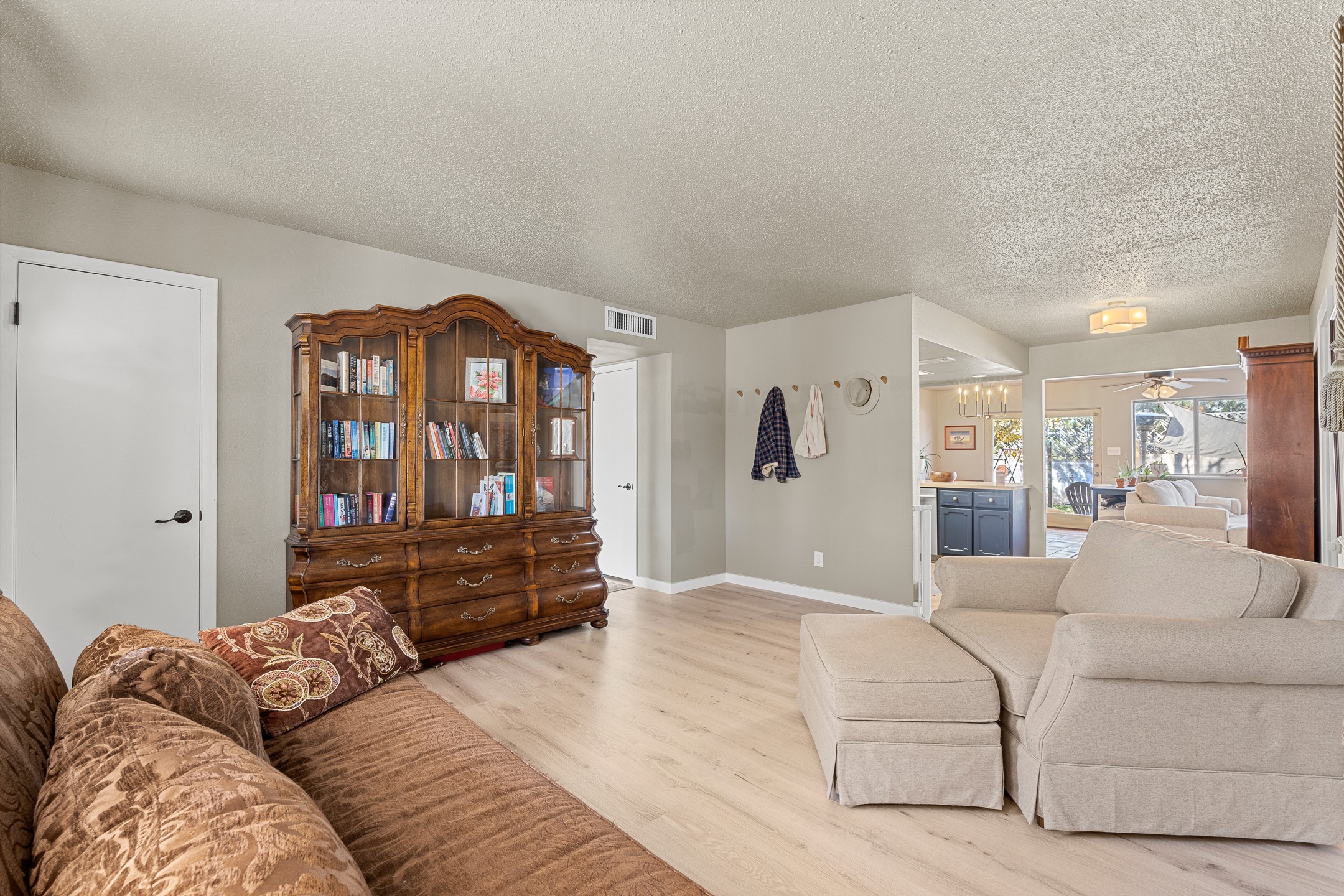 Discover comfort and convenience in this charming 3-bedroom, 2-bath home ideally situated in a central location close to shopping, dining, and major amenities. Featuring a blend of stylish LVP flooring and classic Saltillo tile, the home offers both warmth and durability throughout its spacious layout.The inviting living room flows seamlessly into the updated kitchen, showcasing stainless steel appliances, generous counter space, and an open design that connects easily to the den and dining area. A built-in seating area provides great storage, complemented by two coat closets for added functionality. Just off the kitchen, a large pantry and storage room offer excellent organization and direct access to the one-car garage.Abundant natural light highlights the home's thoughtful design. Two comfortable bedrooms share an oversized bath, while the private primary suite features a spacious walk-in closet, a luxurious oversized bath, and additional closet space.Enjoy easy indoor-outdoor living with backyard access from both the primary bedroom and the den--perfect for entertaining, morning coffee, or quiet evenings outdoors.This home combines modern updates, flexible living spaces, and a prime central location--ready for you to move in and make it your own!