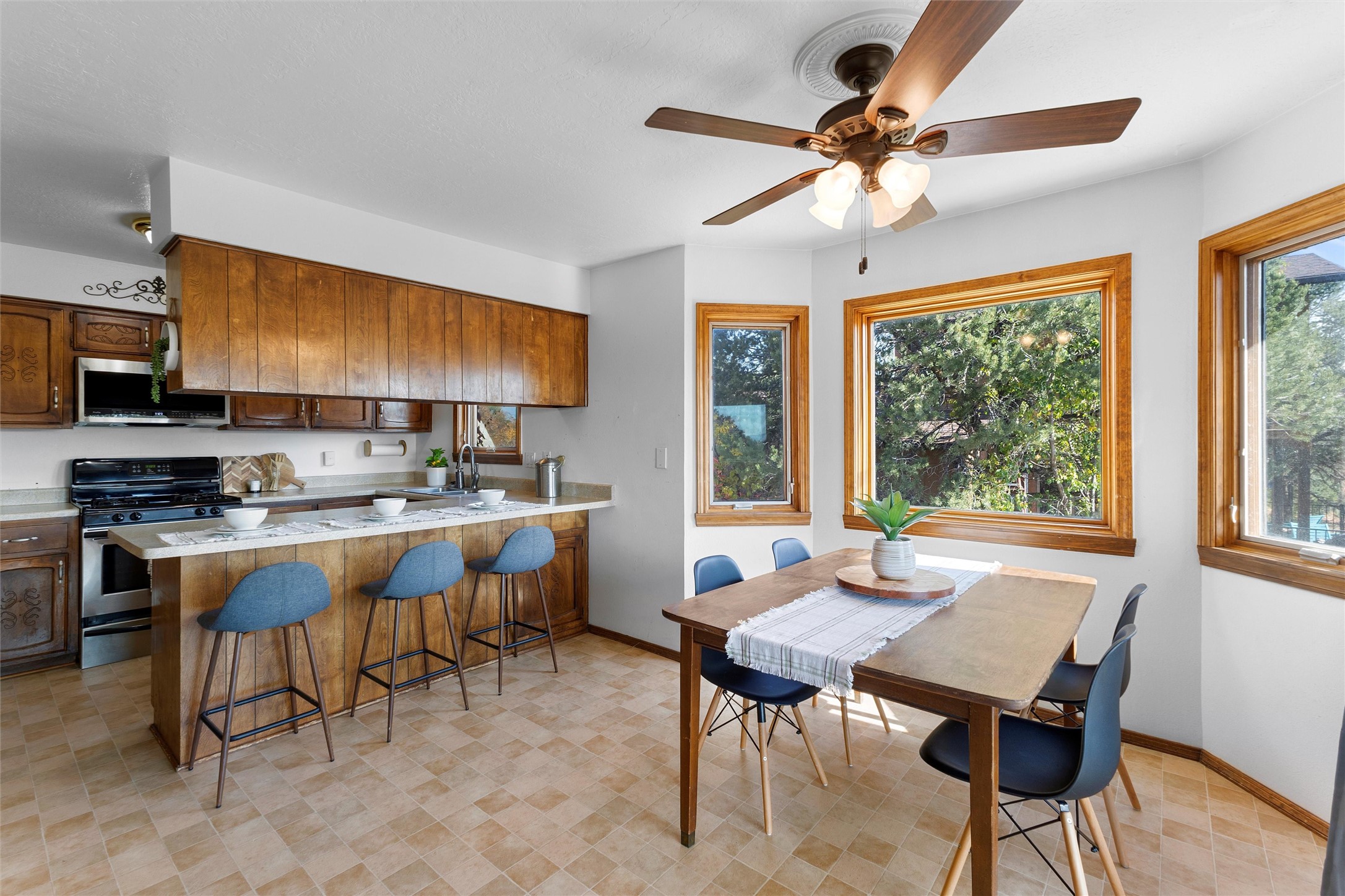 From the moment you pull into the wide, circular driveway, this White Rock home greets you with a sense of steadiness--like a place that's been well-loved and is ready for its next chapter. Sitting in a peaceful spot near Rover Park, it offers room to spread out, settle in, and make it your own.Inside, the upstairs living room welcomes you with a warm, collected feel. The wood-burning fireplace and wood-beamed ceiling bring a comforting, lived-in charm that makes you want to curl up and stay awhile. The kitchen connects easily to a cozy dining area with views out toward the mountains, and a balcony just off this space gives you a quiet place to breathe in the fresh air or take in the wide-open view of the expansive backyard.The primary bedroom continues that calming feeling, with views of the yard and an en suite featuring its own separate vanity area. Two guest rooms, a full bath, and a conveniently placed laundry space finish out the upper level.Downstairs, the fully finished walkout basement is truly the heart of the home. With warm laminate flooring, another fireplace, a big rec room, an oversized living area, a dedicated office space, a guest bedroom with backyard views, and an updated full bath, this lower level offers so much room to grow--whether you need space for gatherings, creative projects, or a quiet retreat at the end of the day.Step outside and you'll find a backyard designed for simple joys and everyday living. There's lush grass, a stone paver patio, and more than enough room for gardening, gatherings, or relaxing under the open sky. Beyond the main fenced yard is even more to appreciate: RV parking, an additional fenced area perfect for pets, and a chicken coop--ideal for anyone dreaming of a little homestead charm.With refrigerated A/C for warm summer days and plenty of space to truly settle in, this home offers comfort, character, and the kind of possibilities that make life feel fuller.Don't miss the chance to make it yours.