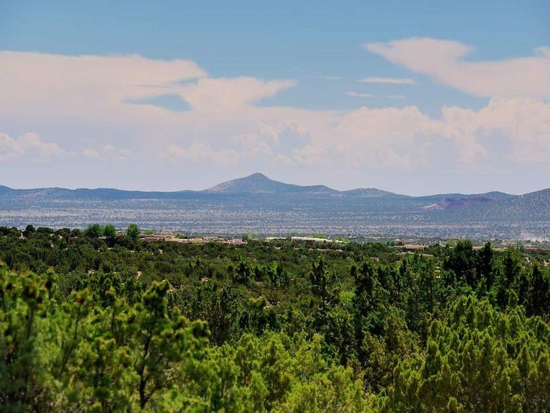 In the tree-studded rolling hills northwest of town are Las Campanas and a host of other developments and neighborhoods of larger, private lots and newer homes, most with city services and utilities. The land here sits between the city and the arroyos that carry rainwater to the Rio Grande, just a few miles west, creating a landscape almost like ocean waves rolling into shore. The community of