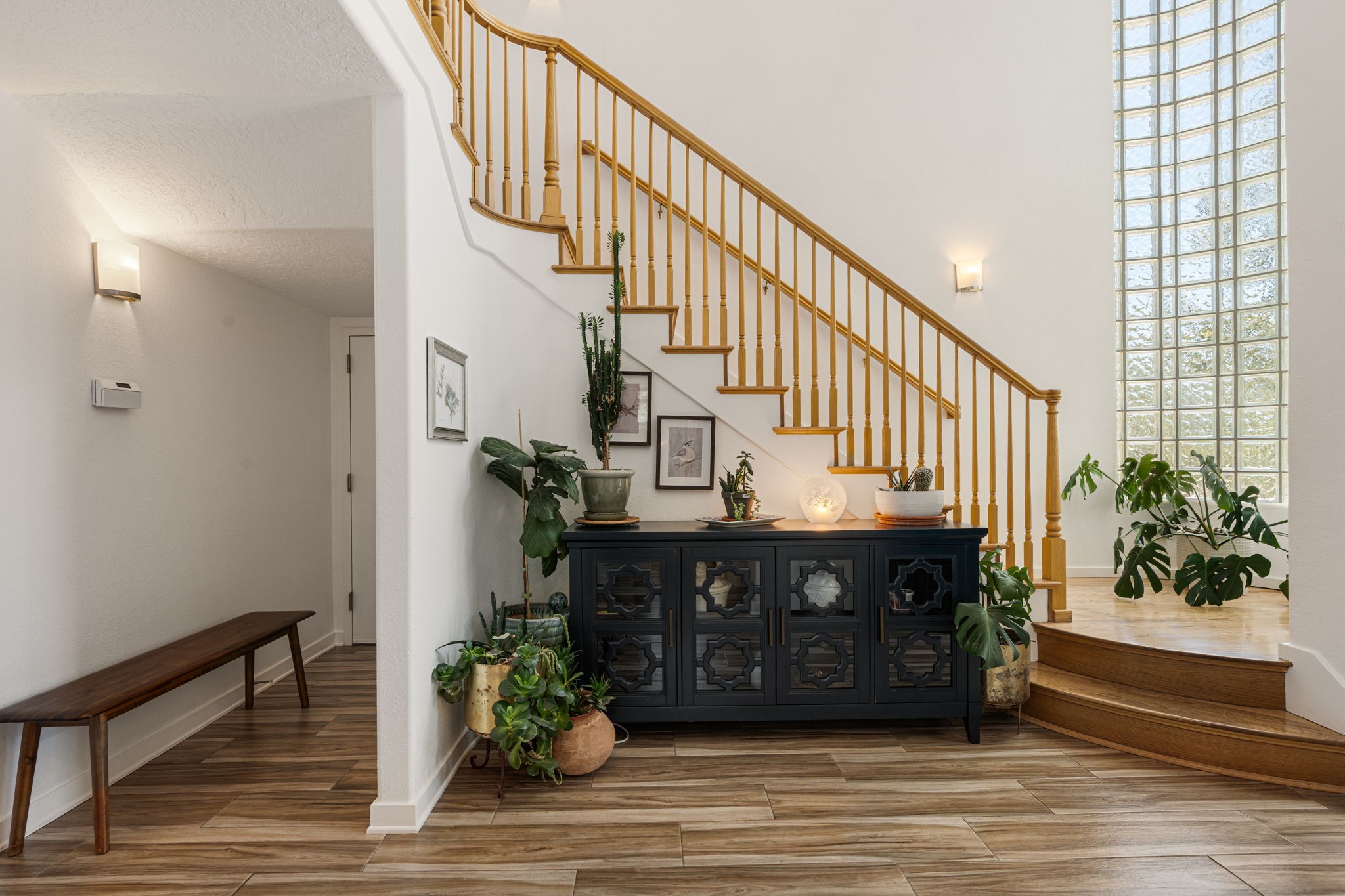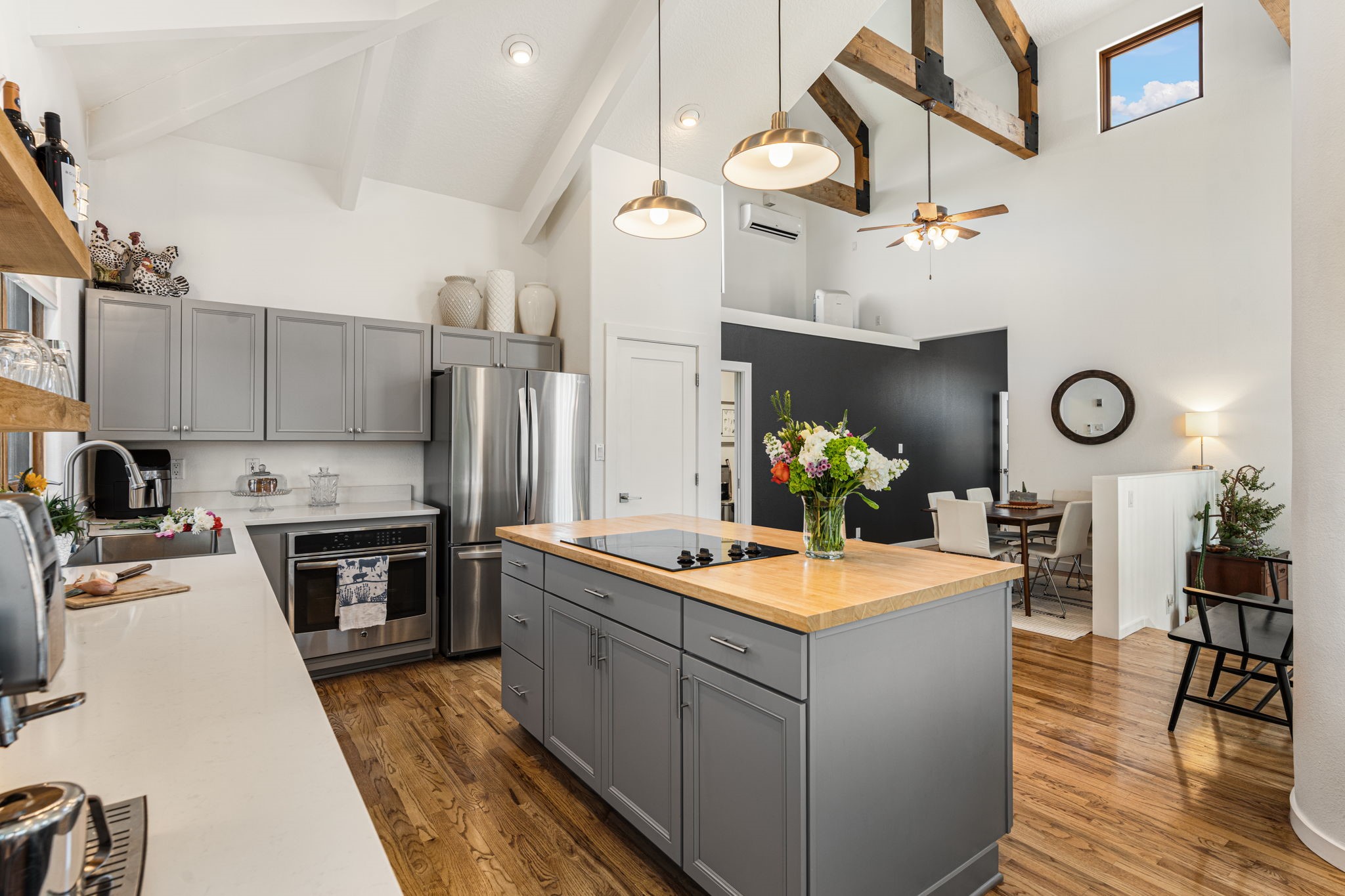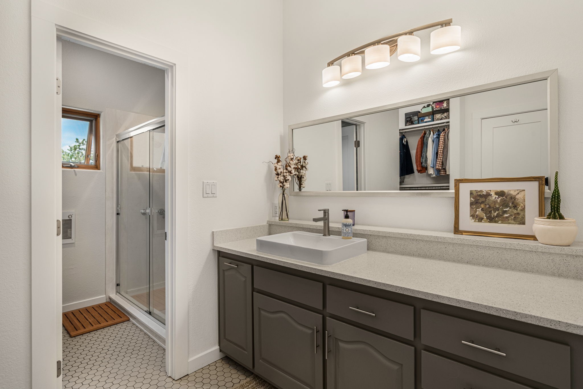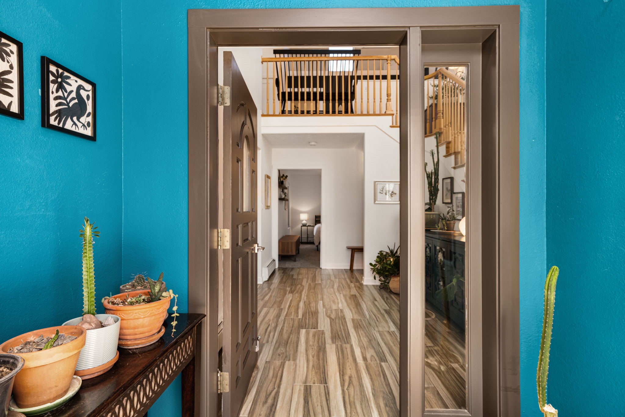 This updated home situated on 4.68 acres & 2 lots, zoned A-2, NO HOA & additional 820 sq. ft Bunker like basement is one of the most unique in the east mountains. It features an oversized 33.9x24 tandem style garage, automatic gate, vaulted ceilings, natural light, exposed wood beams, large casement windows, multiple outdoor seating areas, hot tub purchased 11/1/24, community water-no well. 3 sources of heat: Radiant baseboard, 6 Mini Splits& Wood stove. Solar panels that will be paid off by the Seller with acceptable offer. The views are stunning! The home is open & inviting. The property will take your breath away. Outdoor features include an oversized chair facing the Sandias for a beautiful sunset view, access through back gate, chicken coop and goat pen and much more