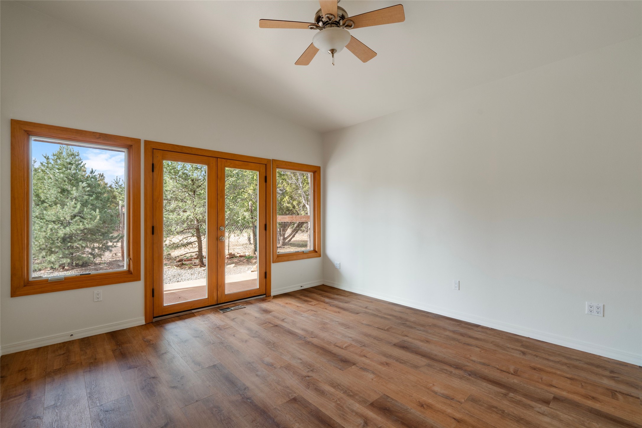 Discover the perfect blend of mountain tranquility and convenient living in this beautifully updated 4-bed, 2-bath home set on 1.3 acres with sweeping views of the Pecos Mountains. Located just 32 minutes from the historic Santa Fe Plaza, this property offers both privacy and an easy commute.Step inside to an inviting open concept living, dining, and kitchen area, anchored by a charming gas kiva fireplace in the great room, that adds warmth and Southwestern character. The smart floor plan provides excellent bedroom separation, with the primary suite privately situated away from the additional bedrooms.Enjoy the confidence of recent upgrades, including new paint and flooring in 2025 and a new pro-panel roof installed in 2020. The home also features a two-car garage and a covered back patio, the perfect spot to relax and enjoy our wonderful outdoor lifestyle.With its generous acreage, thoughtful layout, and fresh updates, this property offers comfort, beauty, and true New Mexico living.