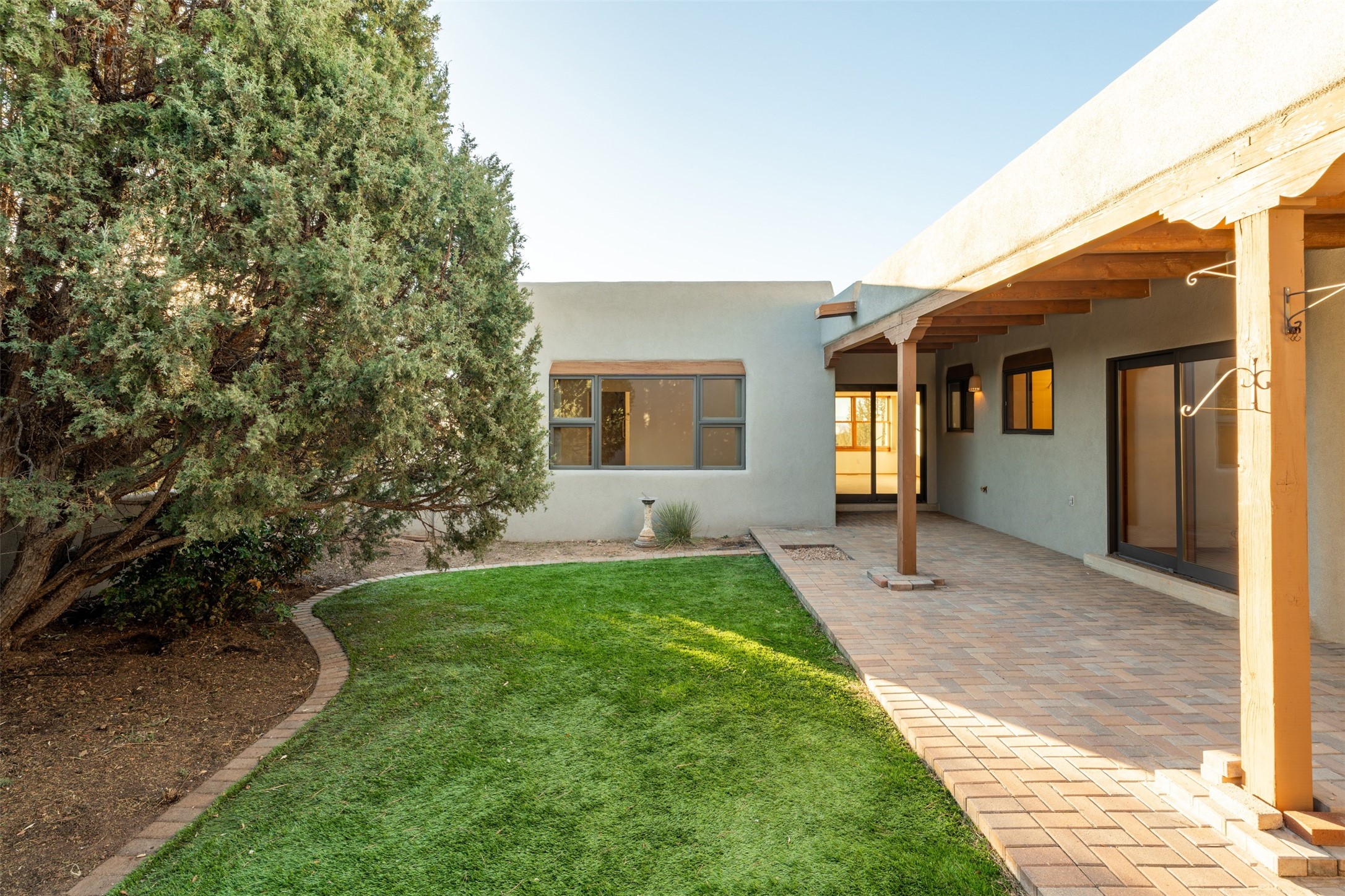 A wonderful opportunity to own a single-level home, perfectly situated in the highly desirable DeVargas Heights neighborhood. This property is an ideal canvas, ready for your personal touches to make it truly your own. Its prime location offers exceptional convenience, being close to downtown Santa Fe, various medical services, and a host of other local amenities. The home itself features a generously sized backyard with established trees, providing a private and serene side portal and courtyard. Inside, the primary suite encompasses a spacious bathroom designed with wheelchair access, ensuring comfort and accessibility. Additionally, the primary bedroom includes a dedicated sitting/office area, perfect for remote work or a quiet study space. Further enhancing this property's appeal are a three-car garage and potential RV parking in the side yard, offering ample space for vehicles and storage.This home combines an excellent location with practical features and the potential for customization. The type of cooling and its operation will need to be verified.