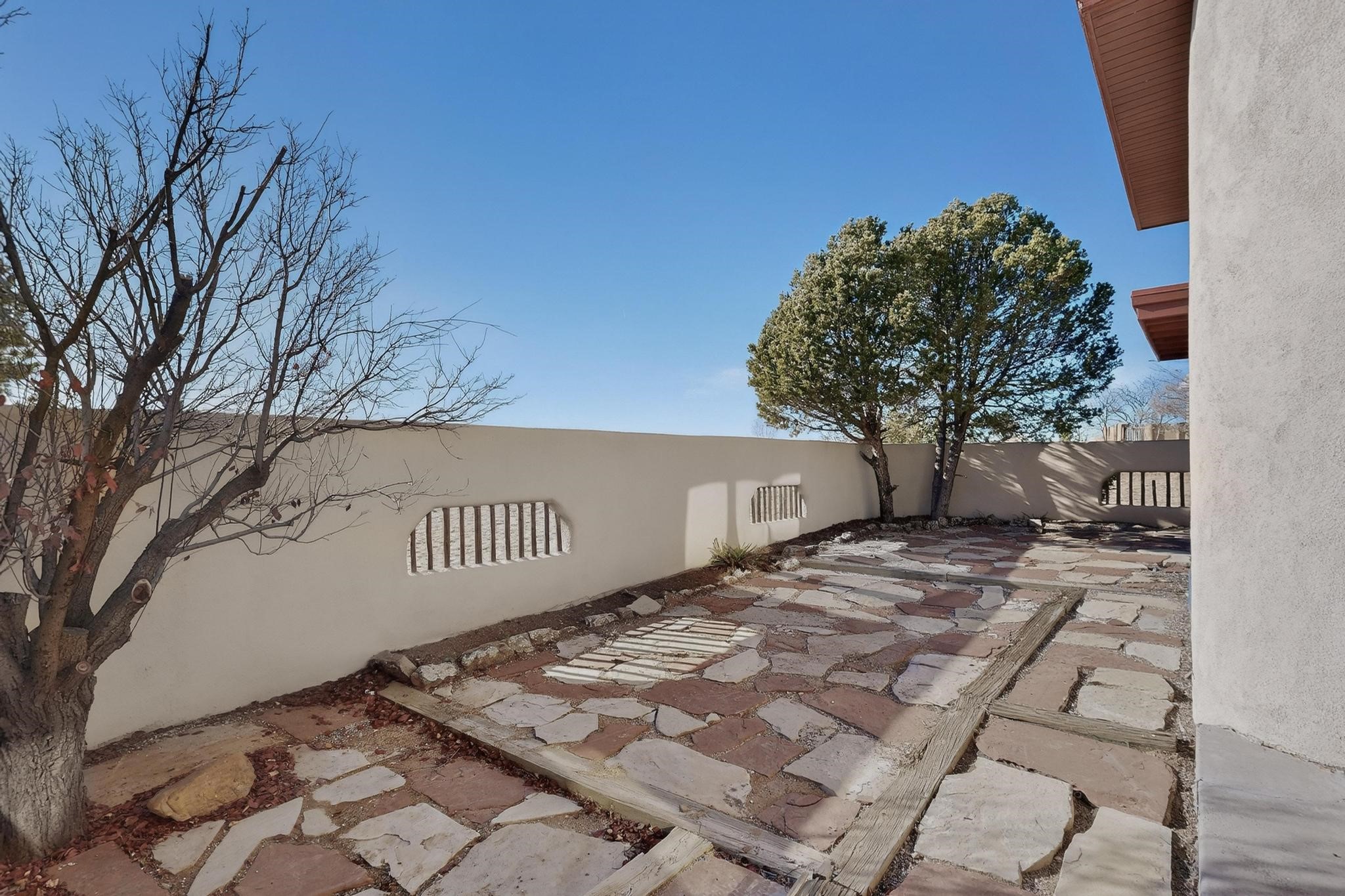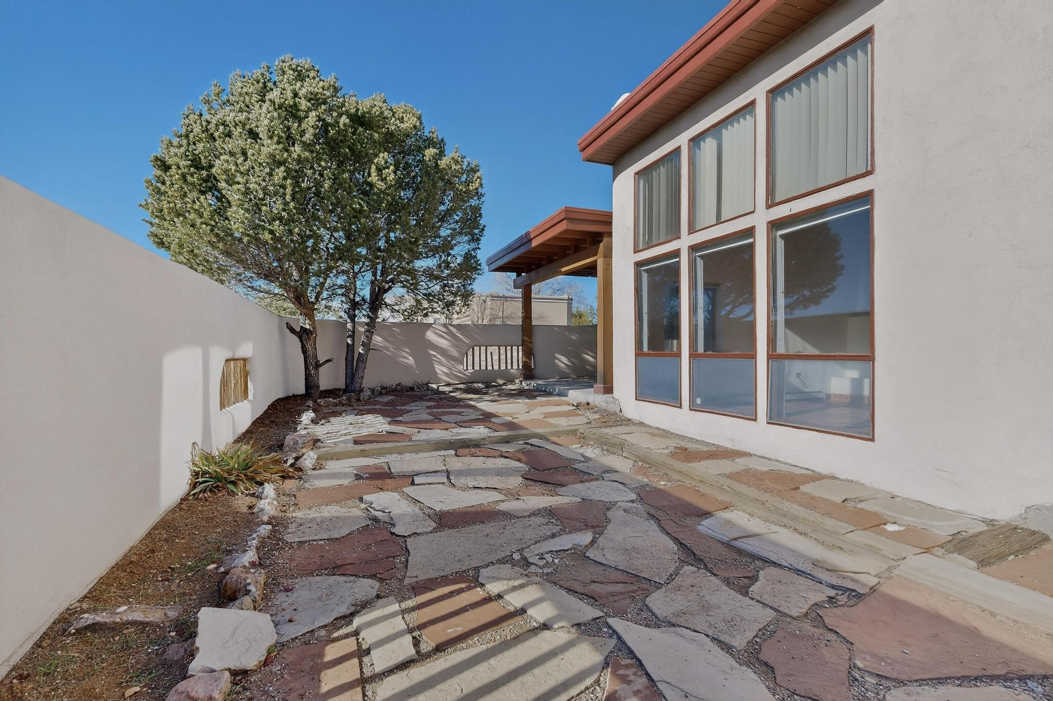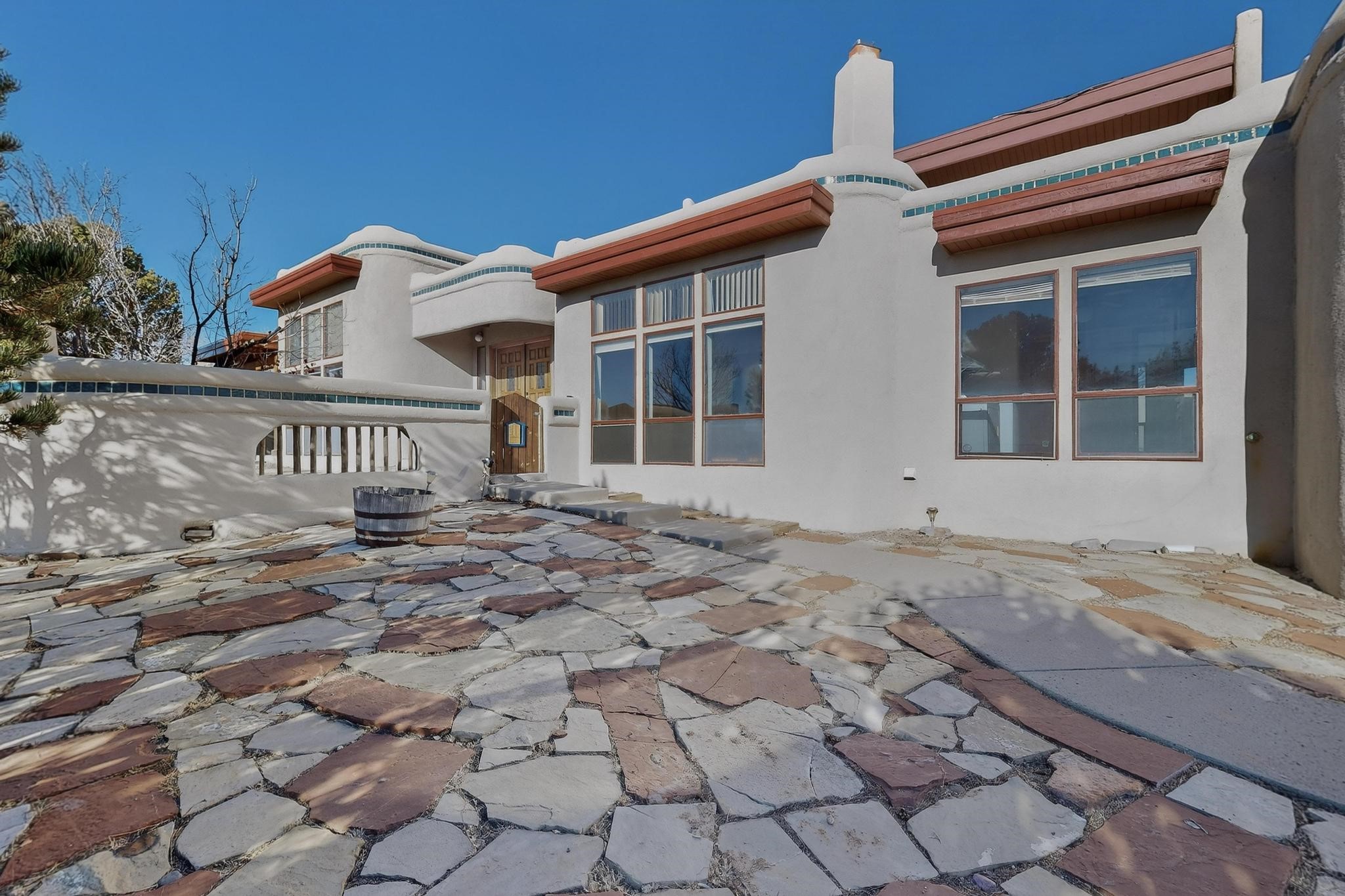 Remarkable opportunity to obtain a 3963sf multi generational 4 bedroom home in Eldorado. Born with a passive solar design and high ceilings with deep southern glazing this home is full of sunlight. Saltillo tile floors, beam and viga ceilings, high clerestories, nichos and 2 kiva fireplaces this contemporary pueblo home is amazing. A spacious country style kitchen with large breakfast bar and breakfast nook will accommodate plenty of family entertainment. There is an adjoining family room, sunken living room and a formal dining room/den off the kitchen. the owners suite features a spacious bathroom and walk in closet, plus there are 3 guest bedrooms with a 3/4 and full bath. The laundry includes a tub and plenty of extra storage. On going through the 3 bay garage you can enter the studio/guest wing which includes a 2 large rooms, bath and a separate 4th garage. A walled private flagstoned courtyard and portal in front and to the rear offer plenty of outside enjoyment. The paved driveway also includes plenty of guest parking. This home is within easy reach of the Eldorado Community Center amenities, local shopping, school, library and senior center, and only minutes into Santa Fe.