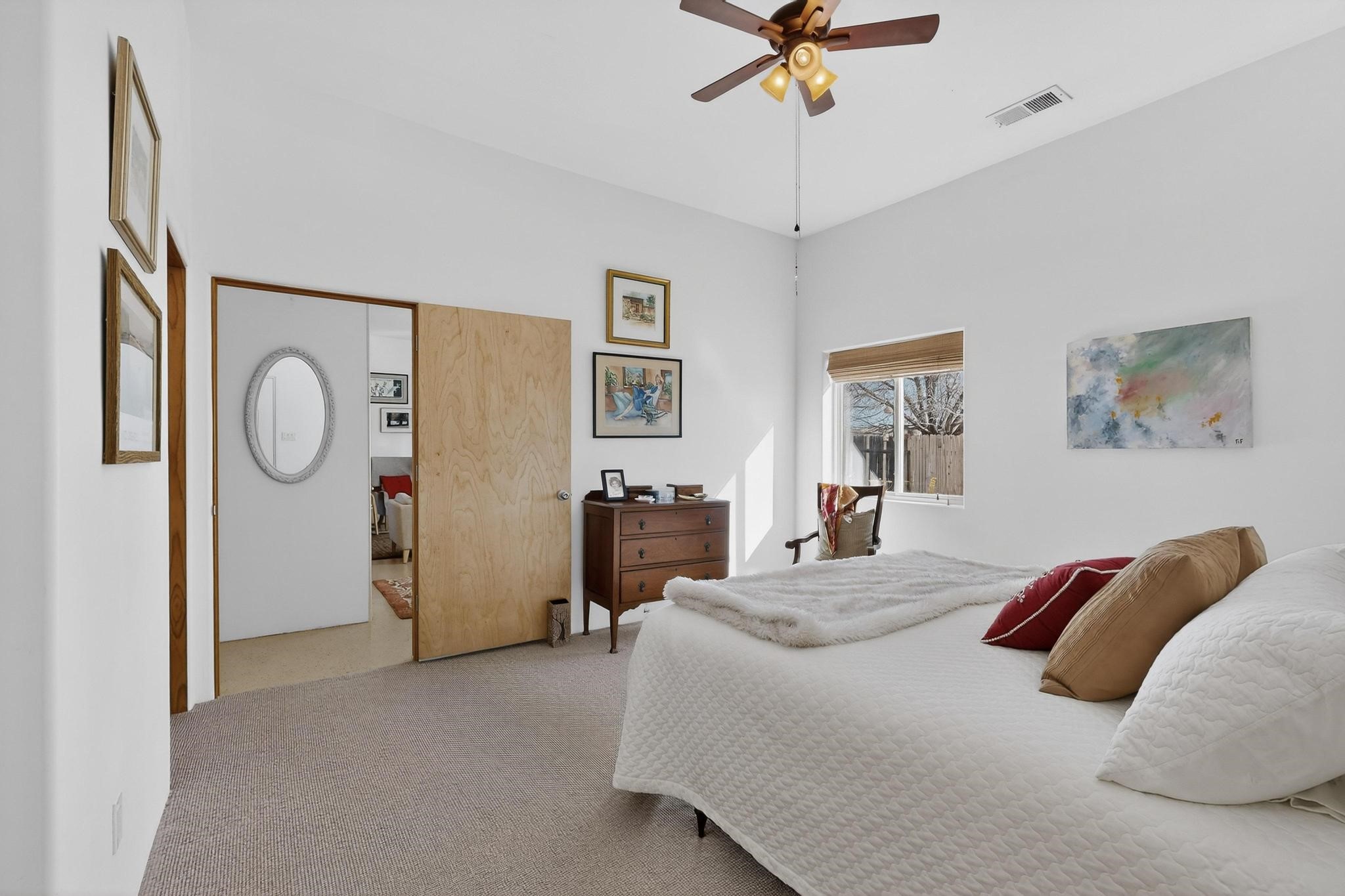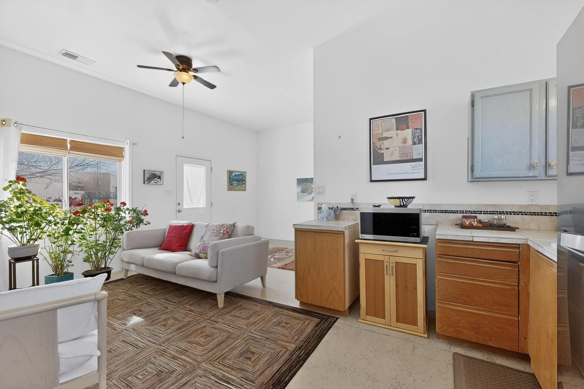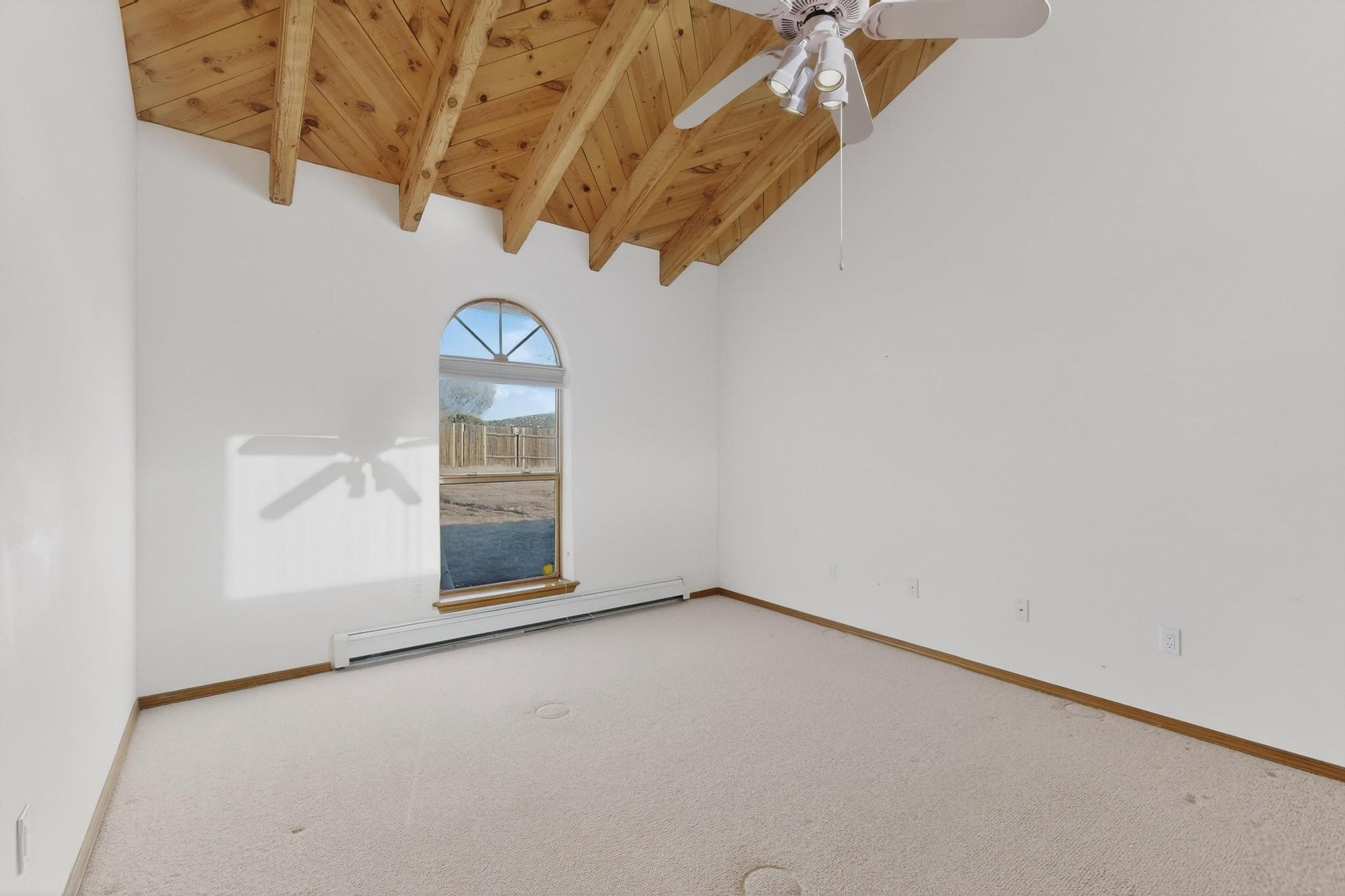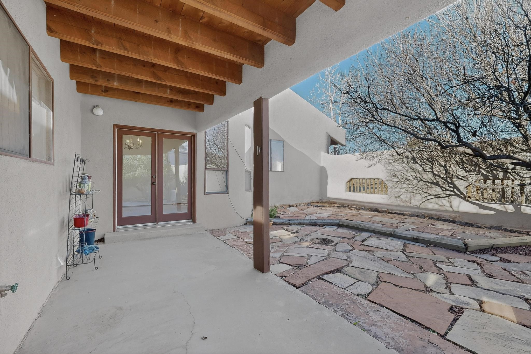 Remarkable opportunity to obtain a 3963sf multi generational 4 bedroom home in Eldorado. Born with a passive solar design and high ceilings with deep southern glazing this home is full of sunlight. Saltillo tile floors, beam and viga ceilings, high clerestories, nichos and 2 kiva fireplaces this contemporary pueblo home is amazing. A spacious country style kitchen with large breakfast bar and breakfast nook will accommodate plenty of family entertainment. There is an adjoining family room, sunken living room and a formal dining room/den off the kitchen. the owners suite features a spacious bathroom and walk in closet, plus there are 3 guest bedrooms with a 3/4 and full bath. The laundry includes a tub and plenty of extra storage. On going through the 3 bay garage you can enter the studio/guest wing which includes a 2 large rooms, bath and a separate 4th garage. A walled private flagstoned courtyard and portal in front and to the rear offer plenty of outside enjoyment. The paved driveway also includes plenty of guest parking. This home is within easy reach of the Eldorado Community Center amenities, local shopping, school, library and senior center, and only minutes into Santa Fe.