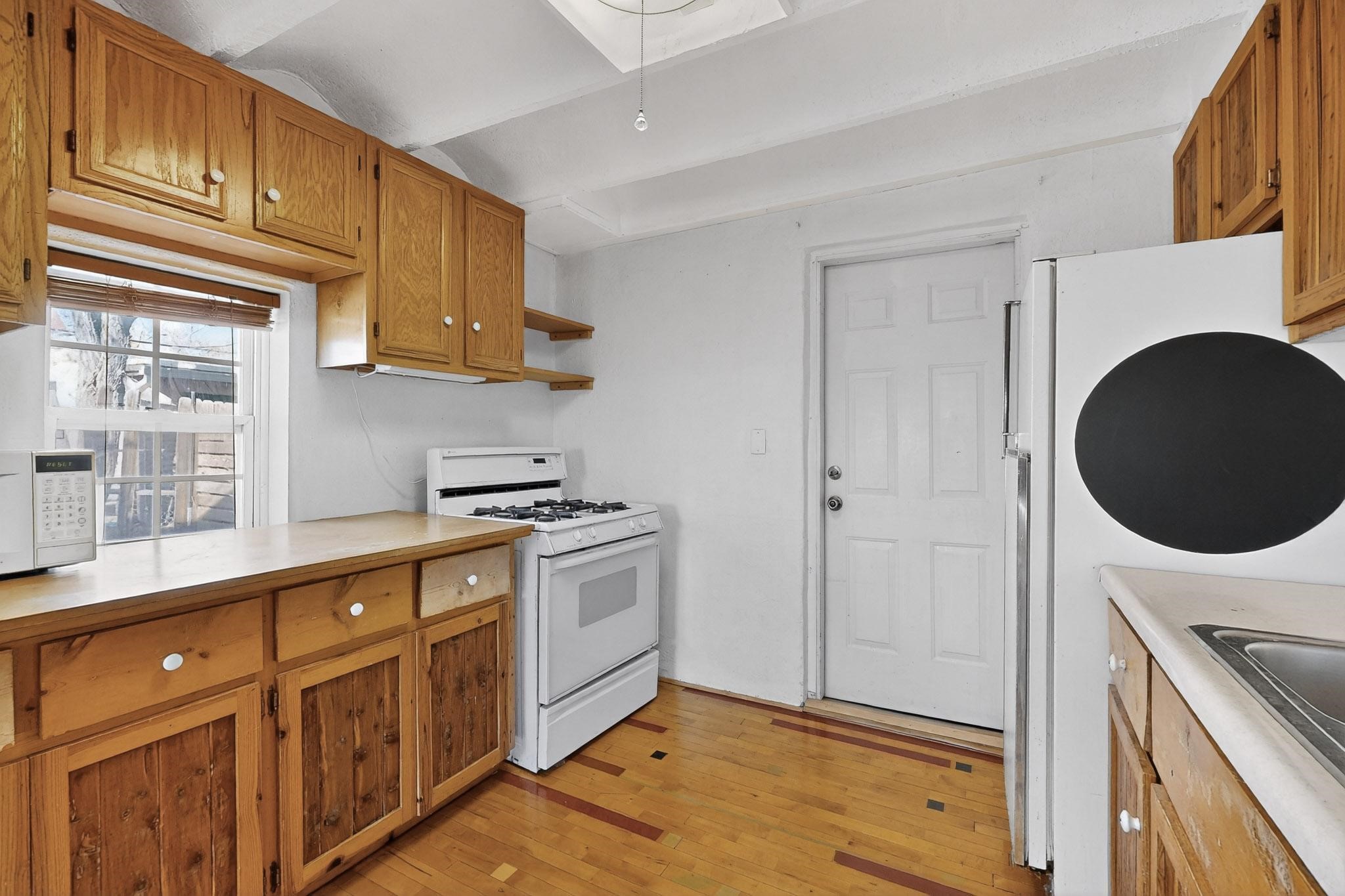 Discover an exceptional investment or live/rent opportunity just minutes from the Santa Fe Plaza and the vibrant Railyard District. This versatile duplex features two spacious 1BR/1BA units totaling 1,320 sq ft, each with its own distinct character, private outdoor space, and two dedicated parking spots. A shared laundry room conveniently connects the units while maintaining privacy. A spray foam roof (10y) with fresh elastomeric coating (2y) and acoustic-insulated separation between units adds comfort, efficiency, and peace of mind. Live in one home and rent the other, or maximize income potential by leasing both--this property offers flexibility for owners, investors, or multi-family living.UNIT A:Warm and artistic, Unit A welcomes you with a large living room featuring a wood stove and hardwood floors reclaimed from a basketball court--a true conversation piece. Custom shoji doors create a stylish division between the living and bedroom spaces. The open-concept kitchen includes a gas stove and blends seamlessly with the living area. Custom coved ceilings, numerous skylights, and unique colorful accents make the interior attractive, and the private fenced outdoor patio is perfect for morning coffee or evening relaxation.UNIT B:Bright and inviting, Unit B boasts a spacious living room with parquet hardwood flooring and abundant natural light. The kitchen showcases unique sheet-metal paneling for a contemporary, artistic touch. The bedroom features serene American Clay plaster walls, adding texture and warmth, with an en-suite bathroom boasts slate tile, walk-in shower, and custom skylights. A large private yard offers ample outdoor living potential--gardening, pets, or entertaining. A 220V hookup in the yard makes your hot tub or workshop vision possible. With its unbeatable location, character-rich interiors, and strong rental flexibility, 617 Paulin St is a rare find in the heart of Santa Fe. A must-see for investors and homeowners alike. Property to be sold as-is.