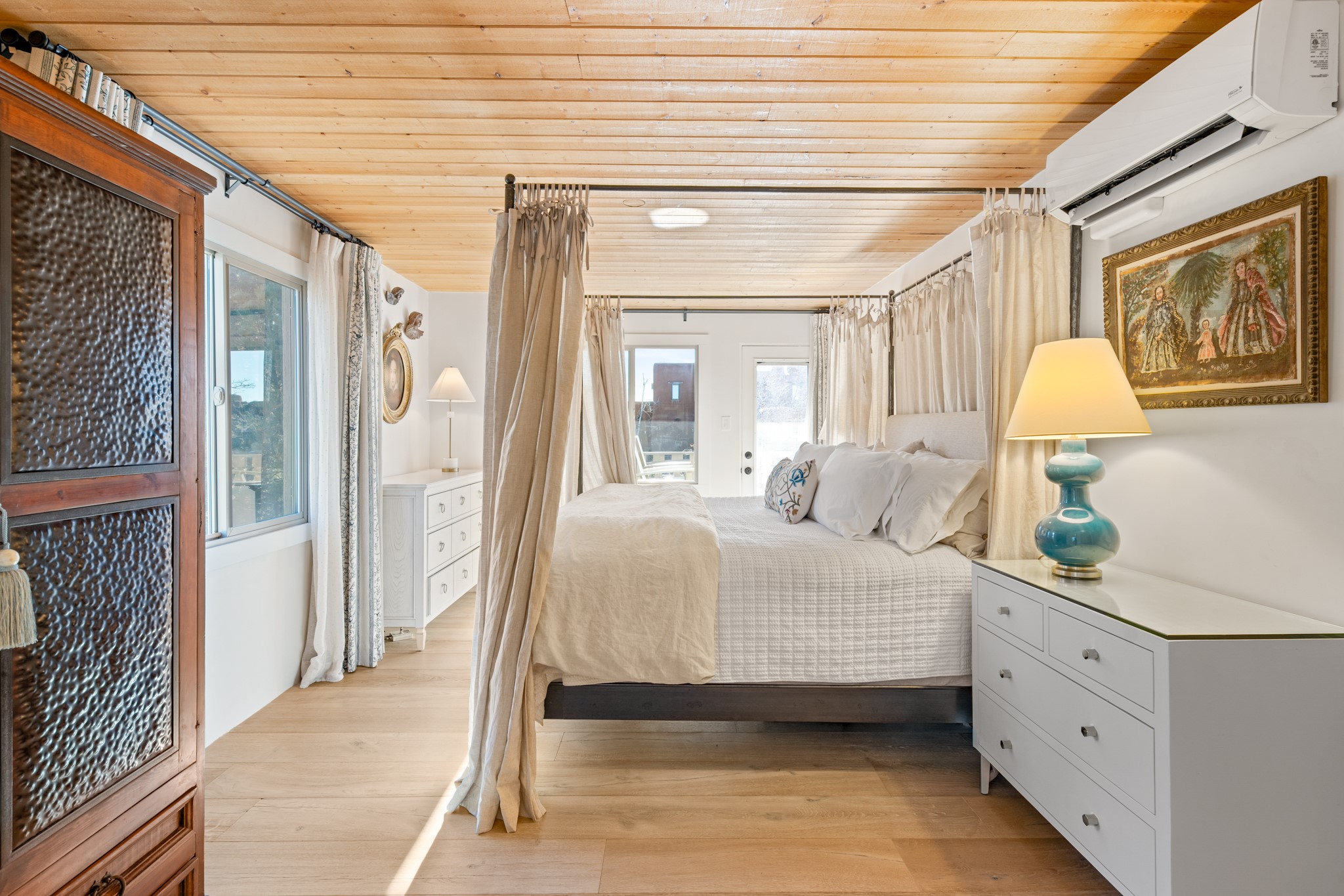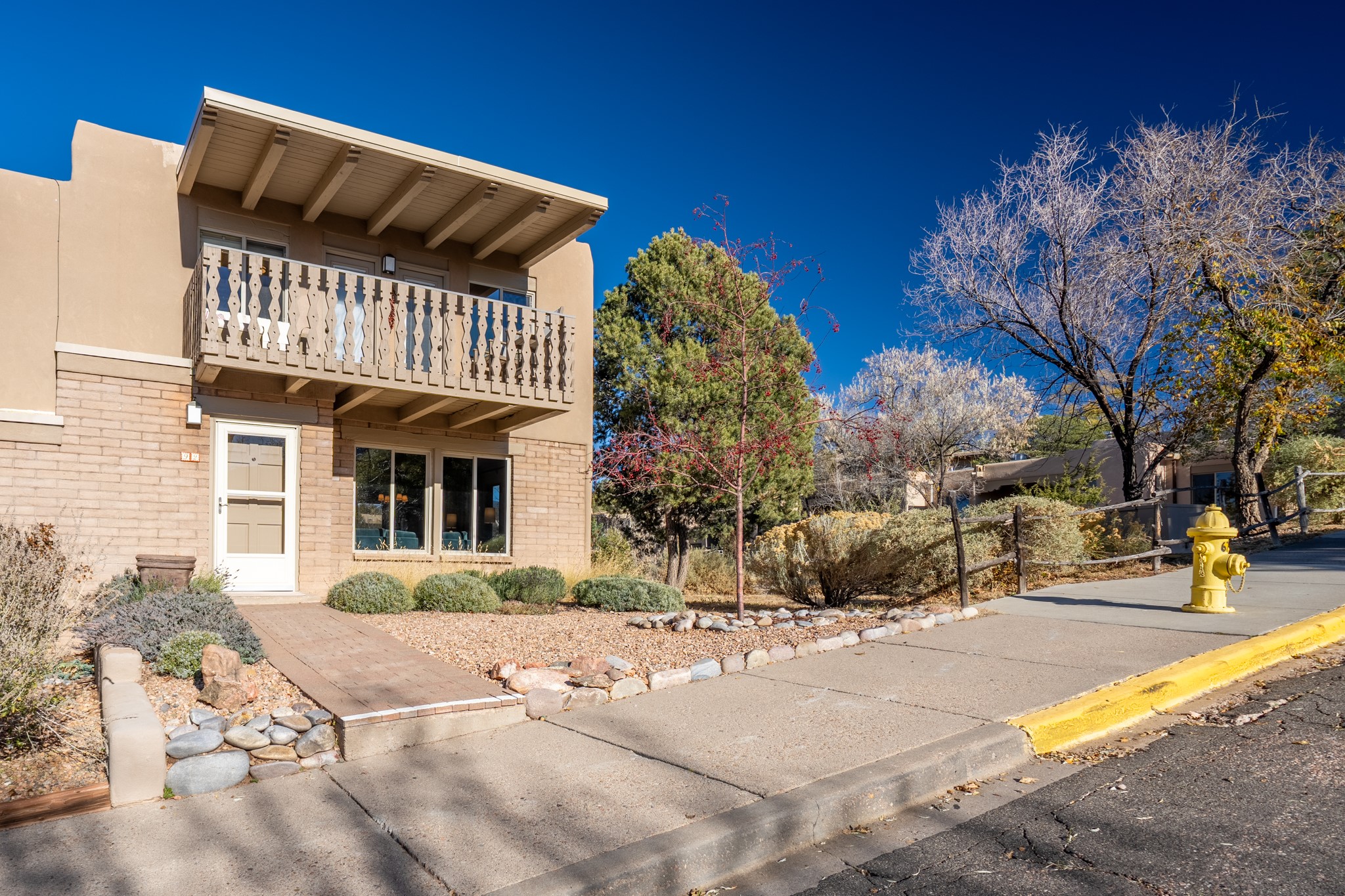 Exceptional Location & Impeccable Renovation in the Heart of Santa FeDiscover a beautifully transformed end-unit residence just moments from the Santa Fe Plaza, Canyon Road, Fort Marcy Park, and miles of scenic walking trails. This light-filled, open-concept home offers effortless living, plentiful parking, and two private outdoor spaces with sweeping mountain views, including breathtaking Jemez sunset views from the upstairs balcony.Every detail has been thoughtfully curated in this complete professional renovation. The home features engineered wood flooring, hand-troweled plaster walls throughout, custom solid wood doors, and new wood beams added to both levels for authentic Santa Fe warmth. The kitchen and half bath showcase new quartz countertops, custom cabinetry, paneled appliances, and modern fixtures. The kiva fireplace has been elegantly re-tiled, and new solar tubes illuminate the bathrooms and stairway.Additional upgrades include a tankless water heater, mini-splits, new light fixtures, and travertine tile in the bathroom. A professionally landscaped yard with irrigation enhances both beauty and ease of maintenance. The property also features a new roof with a 25-year warranty, offering peace of mind for years to come.With abundant windows, mountain views, and two inviting outdoor living spaces, this home offers an exceptional blend of comfort and convenience. Ideally located near downtown and Fort Marcy Park, which includes a gym with classes, pickleball courts, a pool, playground, and dog park, provides endless lifestyle opportunities. Luxury vacation rentals are permitted, offering outstanding flexibility for both owners and investors.