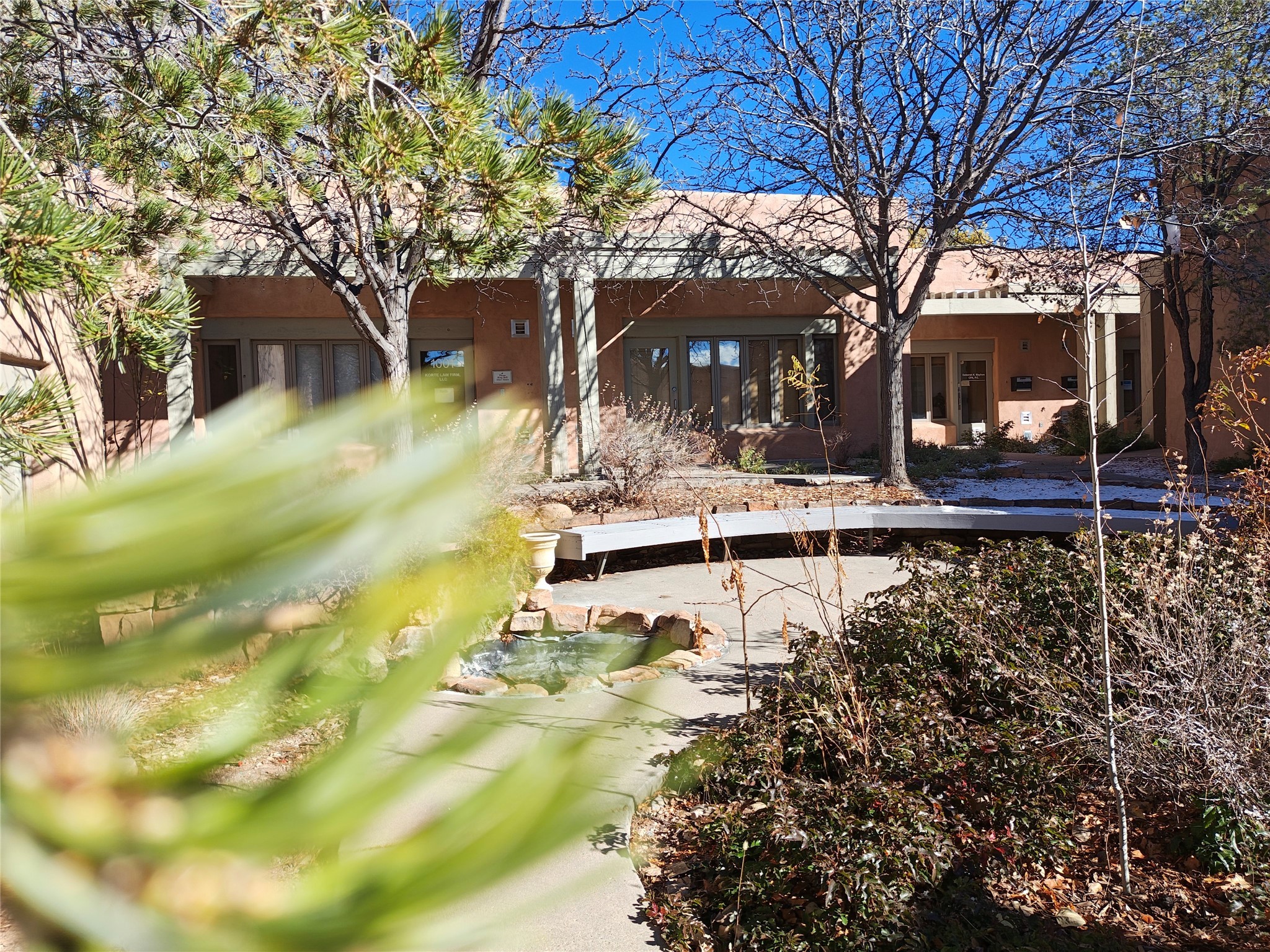 Santa Fe's Premier Courtyard Office Park. Caddy corner from the hospital. St. Michael's frontage. Originally the headquarters of a venture capital firm, this unit features carved woodwork, a dramatic reception, 4 large offices/conference rooms, a circular outdoor fountain with benches, tons of operable windows, and great parking.DISCLAIRMER: PLEASE NOTE THAT THIS LISTING AND ANY CONTRACT IS SUBJECT TO LANDLORD PAYING OFF ITS MORTGAGE. ASK LISTING AGENT FOR DETAILS.