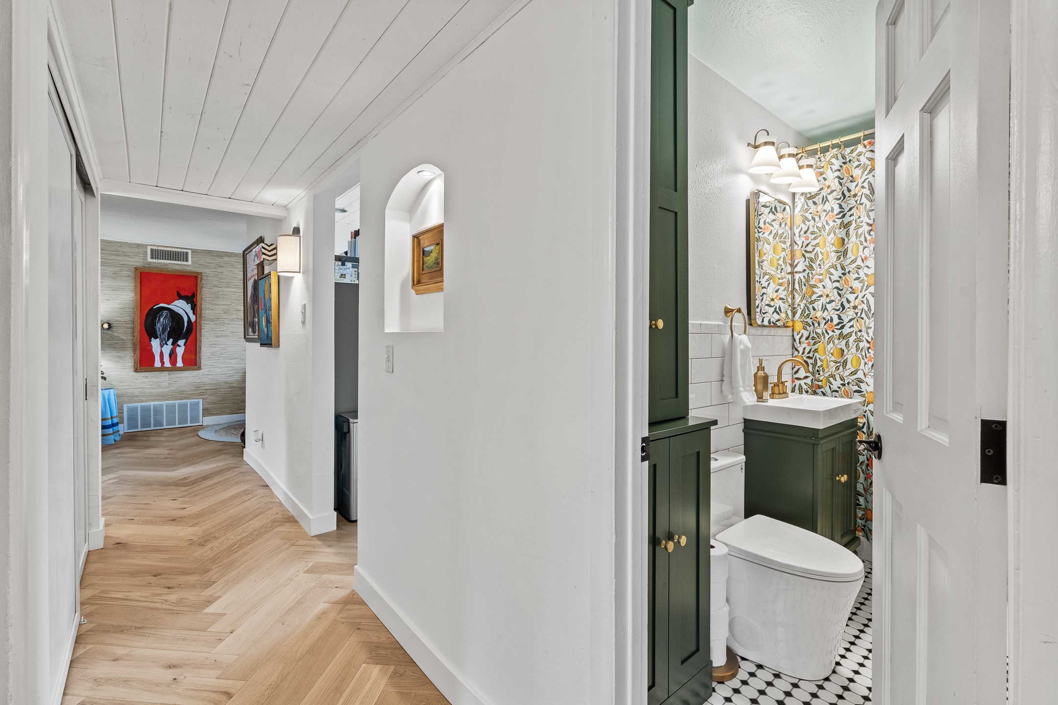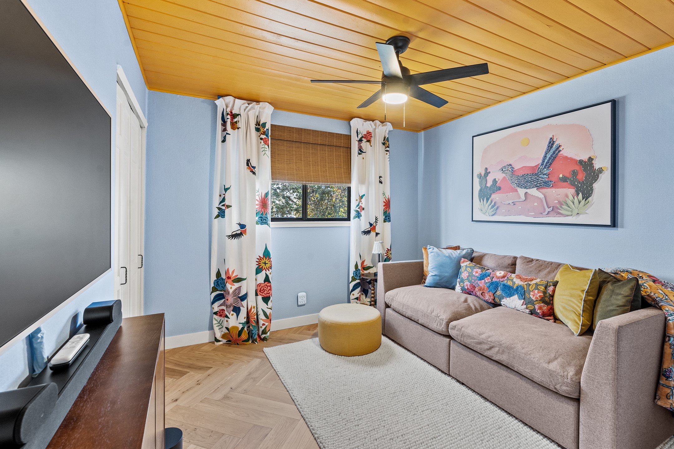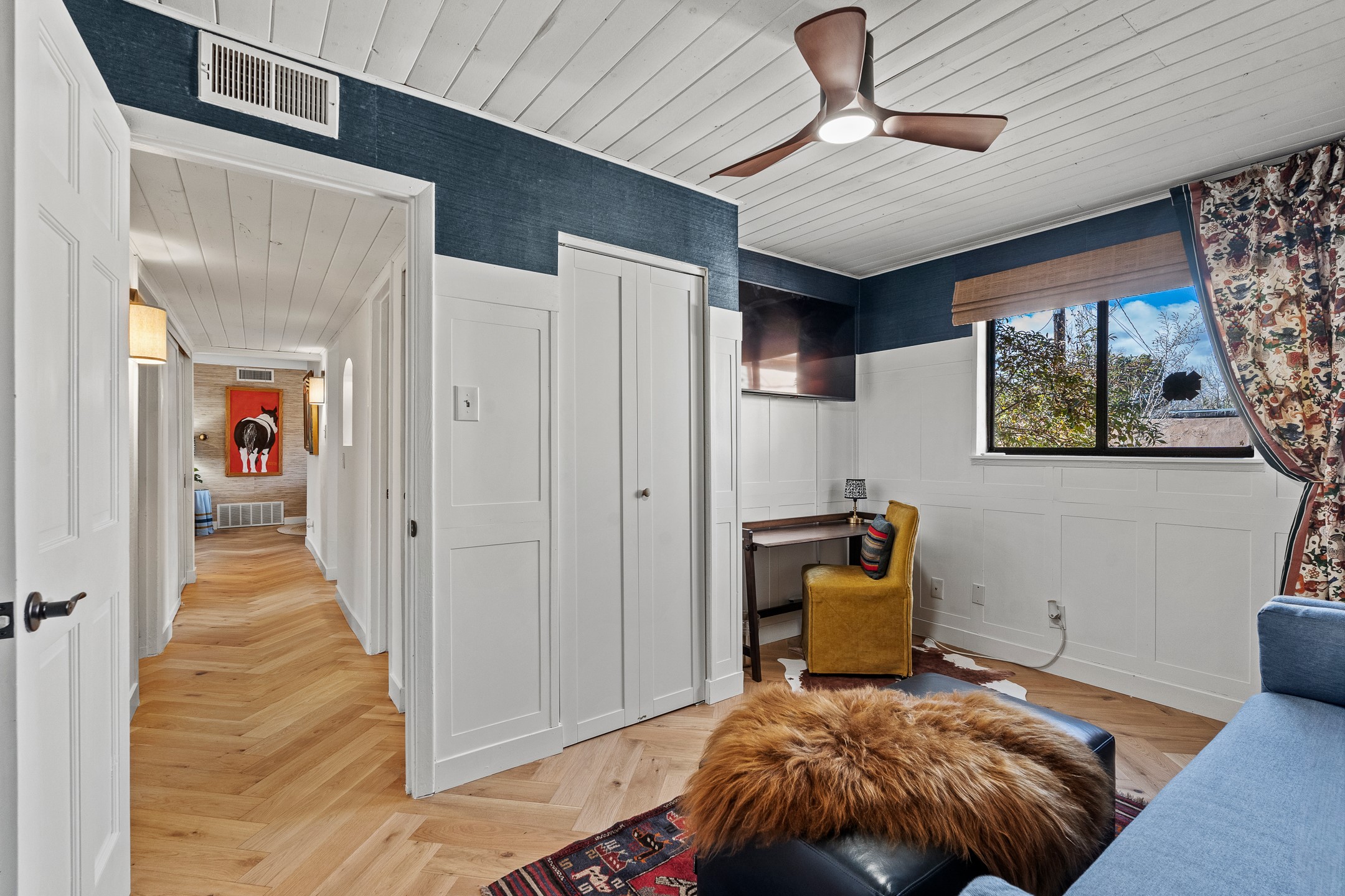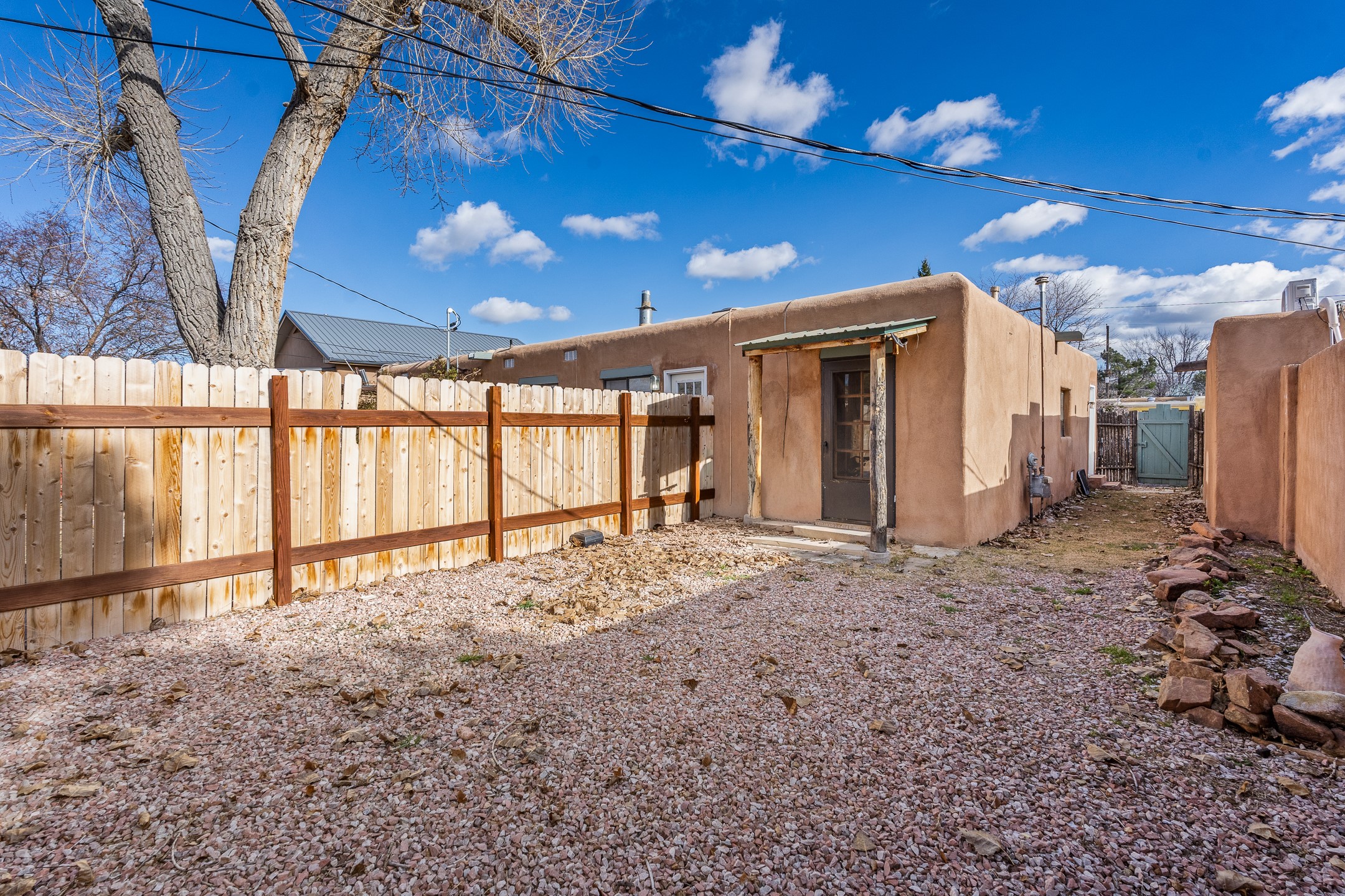 Completely remodeled and stylishly true to its mid-century roots, this three bedroom one bath house in Barrio La Canada with an attached one bed one bath is sure to wow. So much in this house has been improved or upgraded, there's nothing left to do but enjoy. The long list of upgrades includes but is not limited to new HVAC, appliances, kitchen counter tops, doors, flooring, walls and ceilings, as well as a new electrical panel and a roof sealing. The attached casita has its own entrance and yard and is just as charming as the primary. A shed in the back provides extra storage. Two miles from the plaza and short walk from the Santa Fe River, this move in ready home is convenient to everything. Priced at stated value from a recent (November 2025) appraisal.