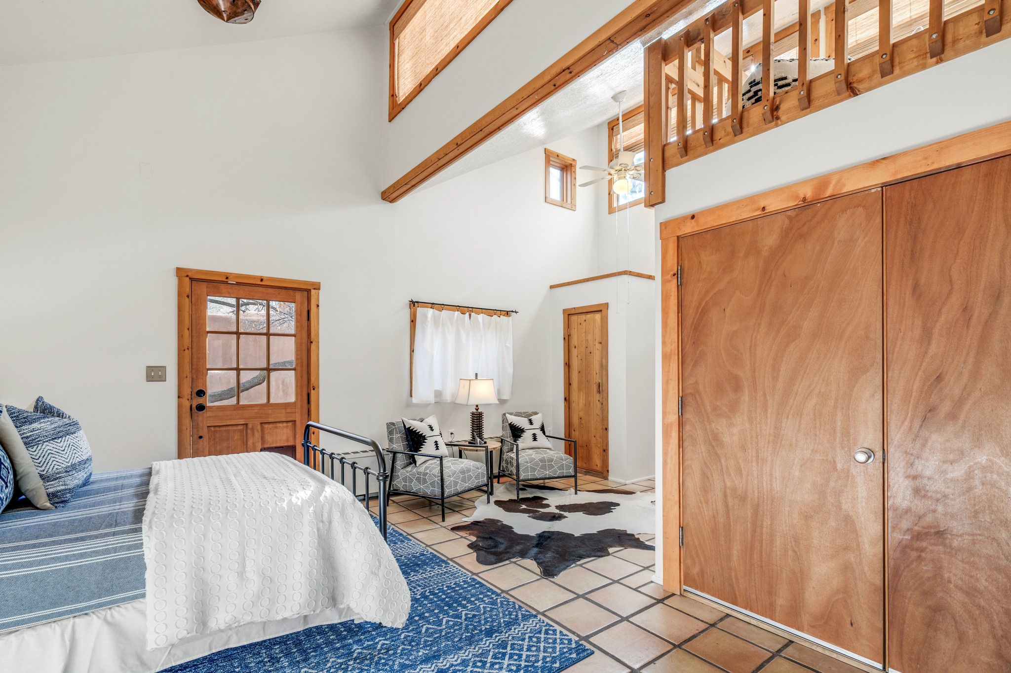 Discover authentic Santa Fe charm and exceptional walkability in this sweet downtown property, perfectly situated in the heart of the Historic District. Set on a quiet, dead-end street, this inviting home offers a rare blend of privacy, character, and proximity--just moments from Canyon Road, the Plaza, grocery, neighborhood cafs, food trucks, galleries, and everyday conveniences.A lush, fully landscaped backyard provides direct access to the treasured Acequia Madre pathway, creating a serene oasis filled with mature fruit trees, including apricot, pear, and apple, all maintained by a drip-irrigation system. Enjoy a spacious, shaded back patio ideal for relaxing or entertaining, along with a welcoming front patio perfect for morning coffee.Inside, the home features 3 bedrooms and 2 baths, with classic Santa Fe finishes throughout, including newly refinished hardwood floors, divided-light windows, vigas and beams, adobe walls, and a cozy kiva fireplace. The updated kitchen offers granite countertops, new cabinetry, and newer appliances, and the primary bathroom has been tastefully remodeled. A rear addition includes a loft-style bedroom that opens directly to the backyard, creating a flexible and airy retreat.Recent improvements include fresh interior paint, a new roof with a transferable warranty, new stucco, and new mini-splits for year-round comfort. Light, bright, and thoughtfully maintained, this home captures the essence of Santa Fe living.Cozy, comfortable, and move-in ready--make this charming downtown retreat yours today.