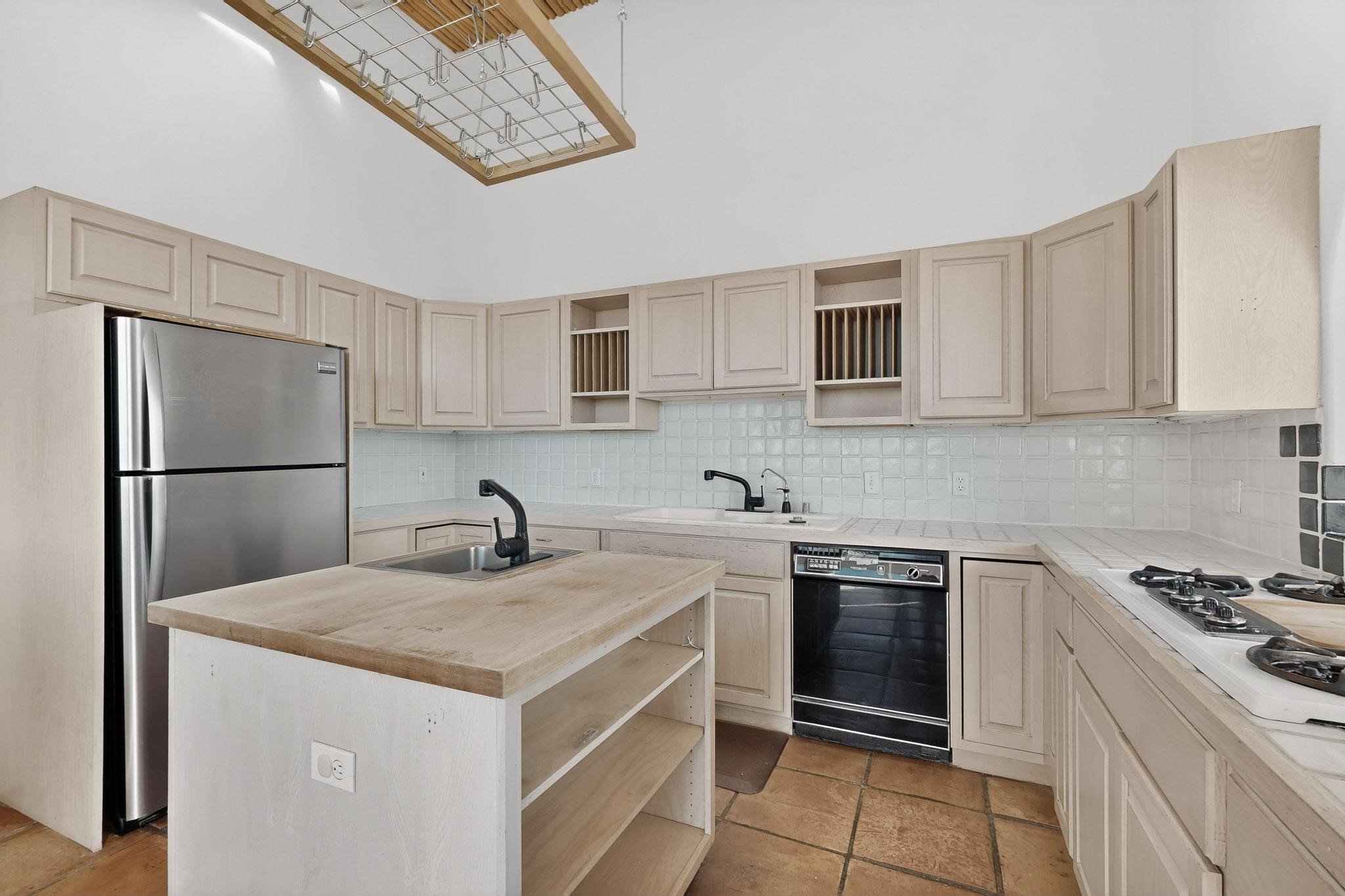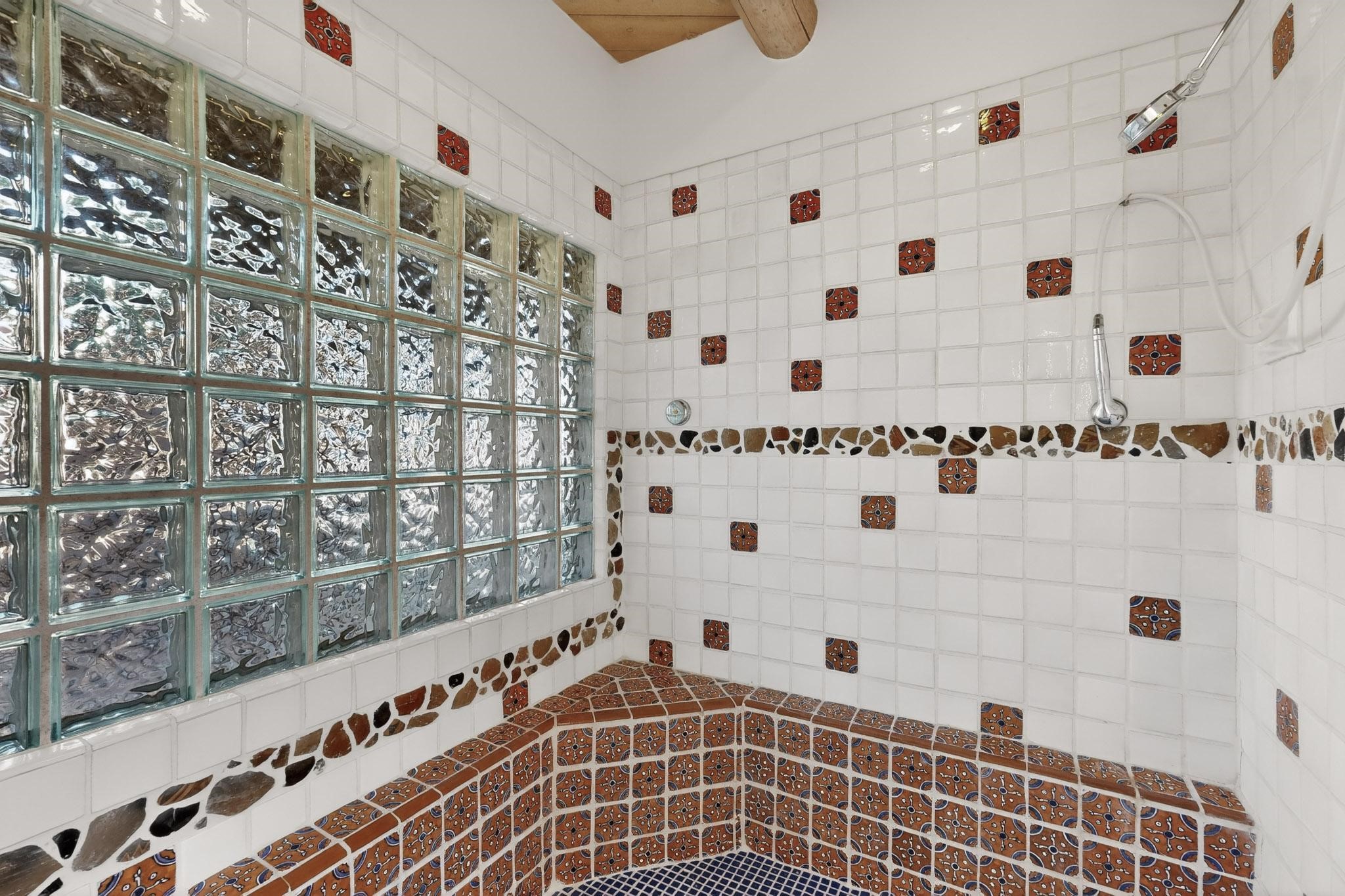 Lovely Eldorado home, situated on an expansive and beautifully landscaped almost 2-acre lot, is filled with natural light and exudes Santa Fe charm. Enjoy panoramic mountain views and amazing sunsets from inside the home and multiple outdoor areas enclosed by coyote fencing and flagstone walk-ways. Offering 2 bedrooms and 2 bathrooms with approximately 2800 square feet, the home features versatile areas perfect for a range of uses. A heated flex space (with gas stove) with appx 390 sqft, separate entrance and direct access to the home provides the ideal setting for a studio, office, workout room, or playroom. Off the spacious primary suite, you'll find a cozy office or sitting room with built-in desk space, as well as a large, light-filled appx 550 sqft unheated room with direct outdoor access--perfect as a work-out room, sitting/TV area, or relaxation space. There is ample storage throughout. The inviting living room boasts soaring ceilings with vigas, a kiva fireplace, and abundant natural light. The owner's suite includes a fireplace and ensuite bath with separate tub and large walk-in show all offering a serene retreat. Car enthusiasts will love the oversized garage (approx. 1,365 sq ft) with room for up to six cars & possibly an RV. Additional highlights include: 4 fireplaces-Abundant skylights-Radiant heat (we have been told not Kitec or Entran II)-Wood doors-Large laundry room with closet & washer/dryer-Saltillo tile floors-Rooftop viewing deck-Vigas in almost every room including bathrooms-Nichos-Banco-Corbels-Archways-Ceiling fans-Newly paved Frasco Rd-Multiple decks and sitting areas and more. This unique property combines Southwestern character with extraordinary versatility and spectacular views.