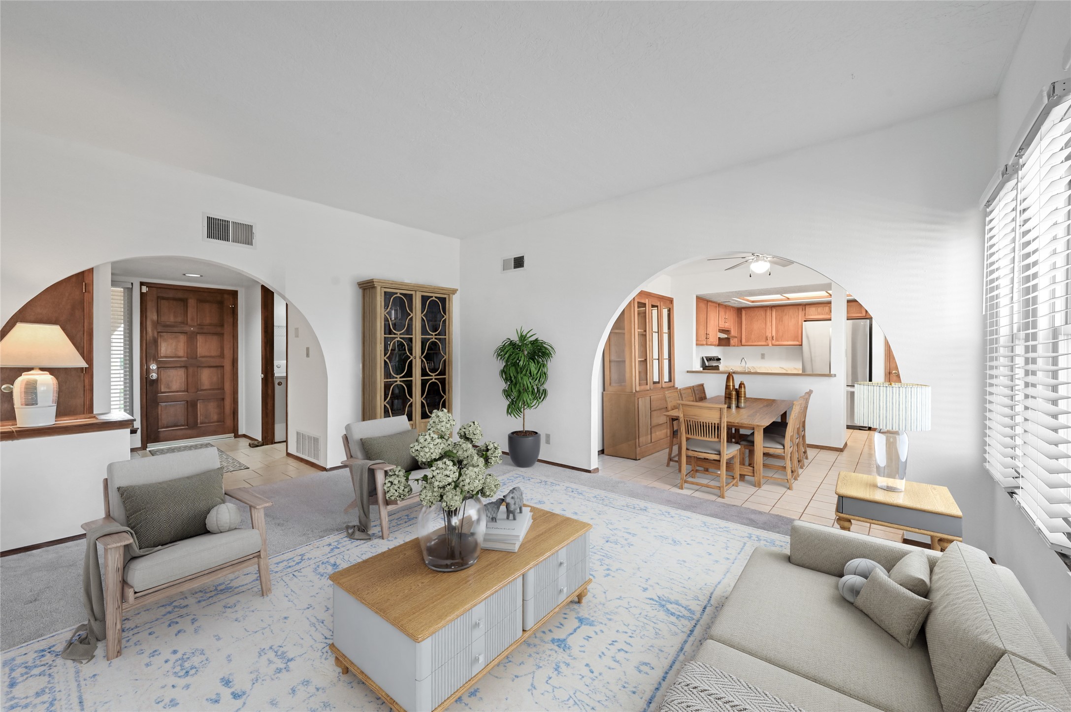 In the heart of Santa Fe, where the high desert light turns each day into a shifting canvas of gold, this thoughtfully maintained and recently improved 2 bedroom, 2 bath, 1,133 square foot home offers an inviting blend of comfort, accessibility, and quiet beauty. Single level living flows easily through sunlit spaces with excellent bedroom separation, while a 2-car garage and fully walled yard provide both practical convenience and private outdoor refuge. Here, everyday life flows with ease as shopping, restaurants, parks, medical services, and Santa Fe's cultural vibrancy are only minutes away, transforming errands and evenings out into simple, pleasant excursions. This residence is not just a house but a gentle expression of Santa Fe living, where thoughtful updates, an ideal in-town location, and a sense of serene enclosure come together to offer a move-in-ready haven perfectly positioned to enjoy all the color, flavor, and ease the City Different has to offer.