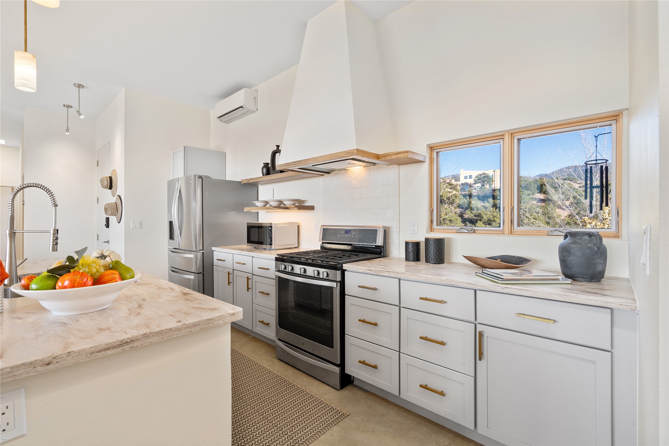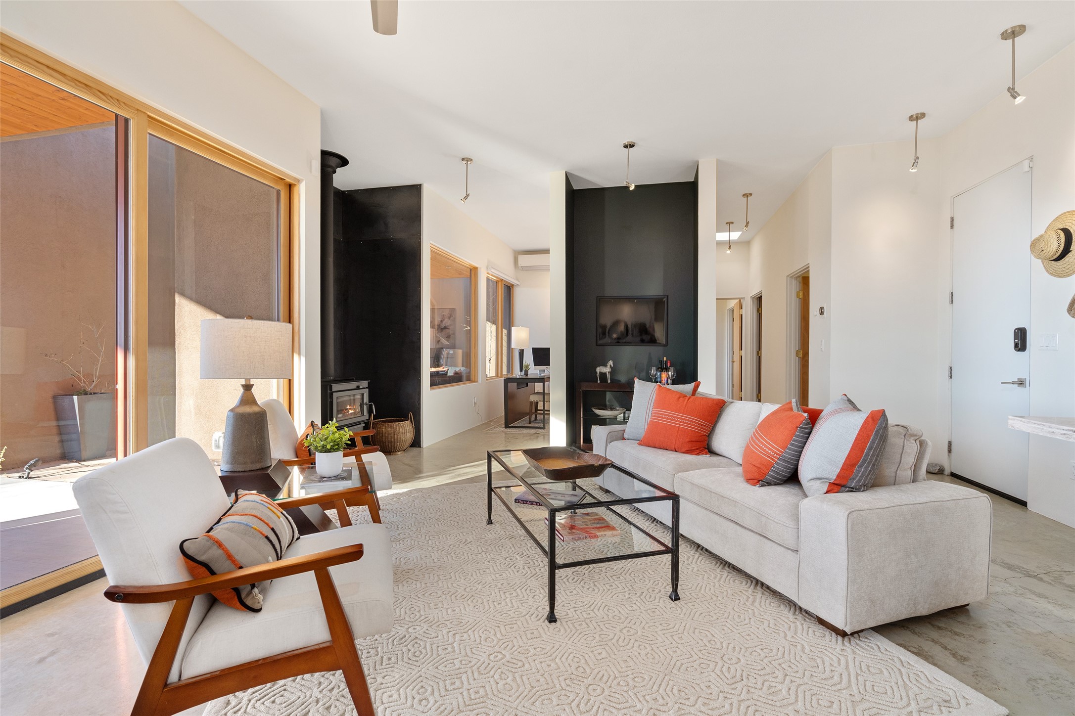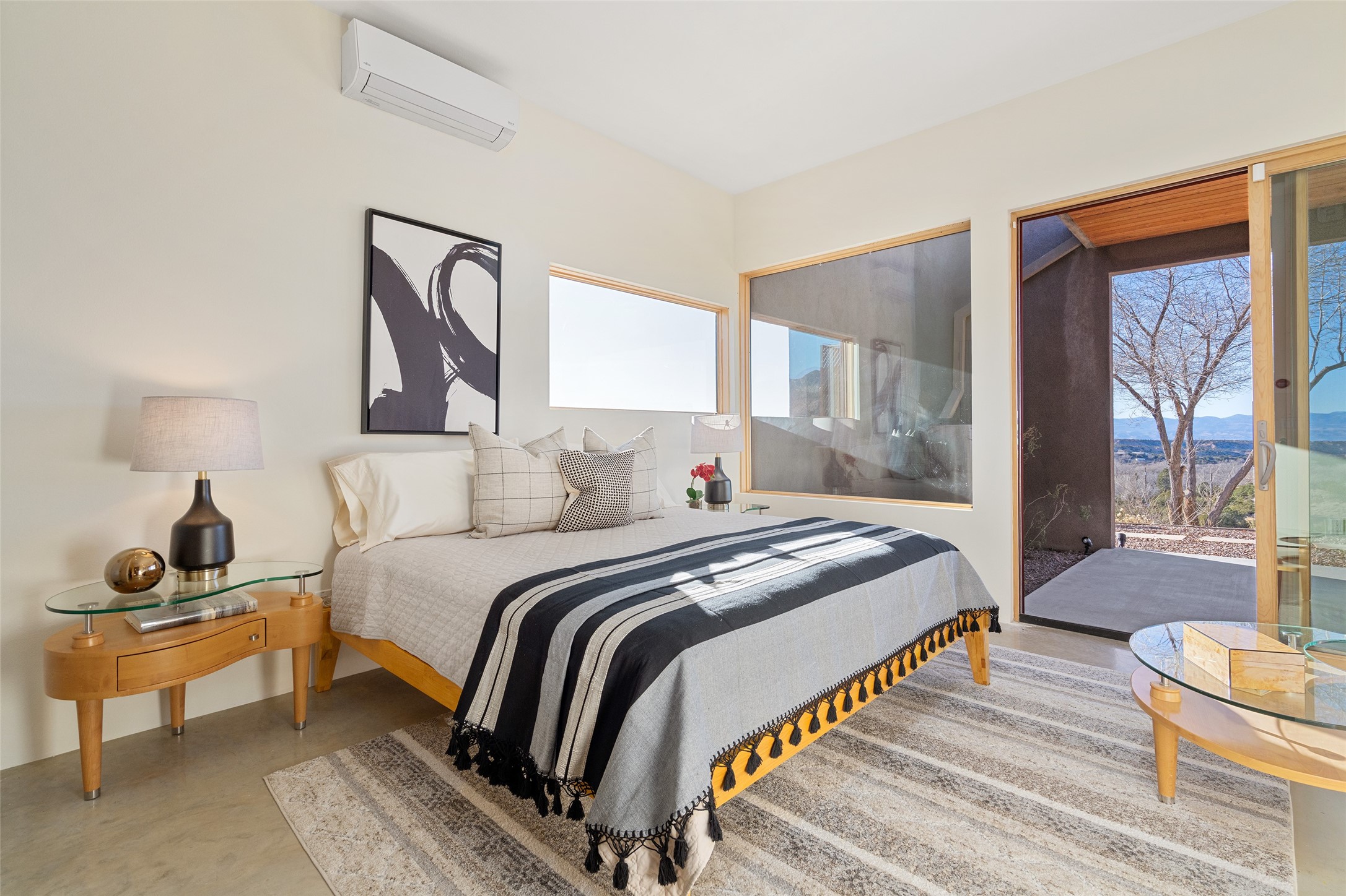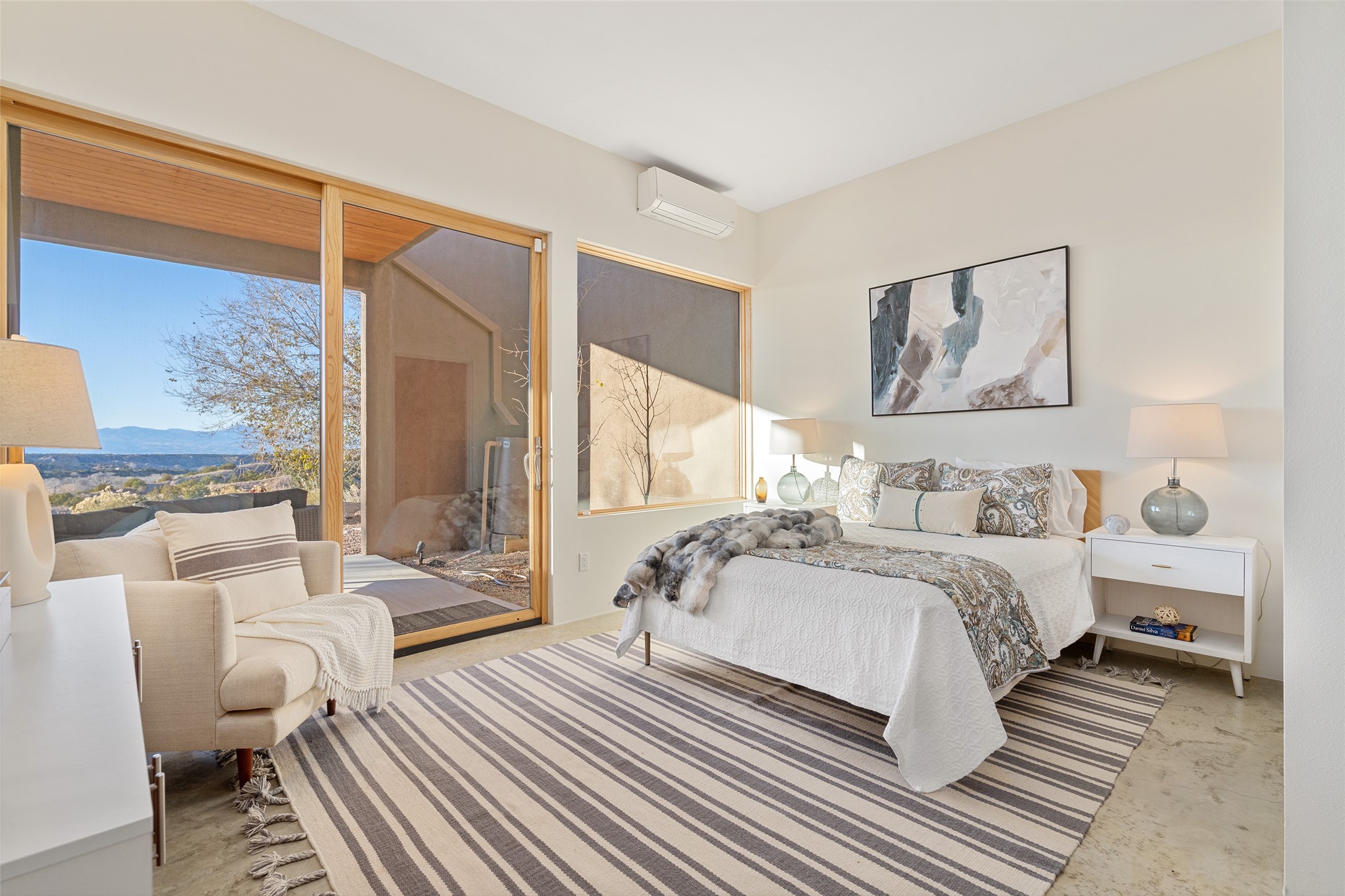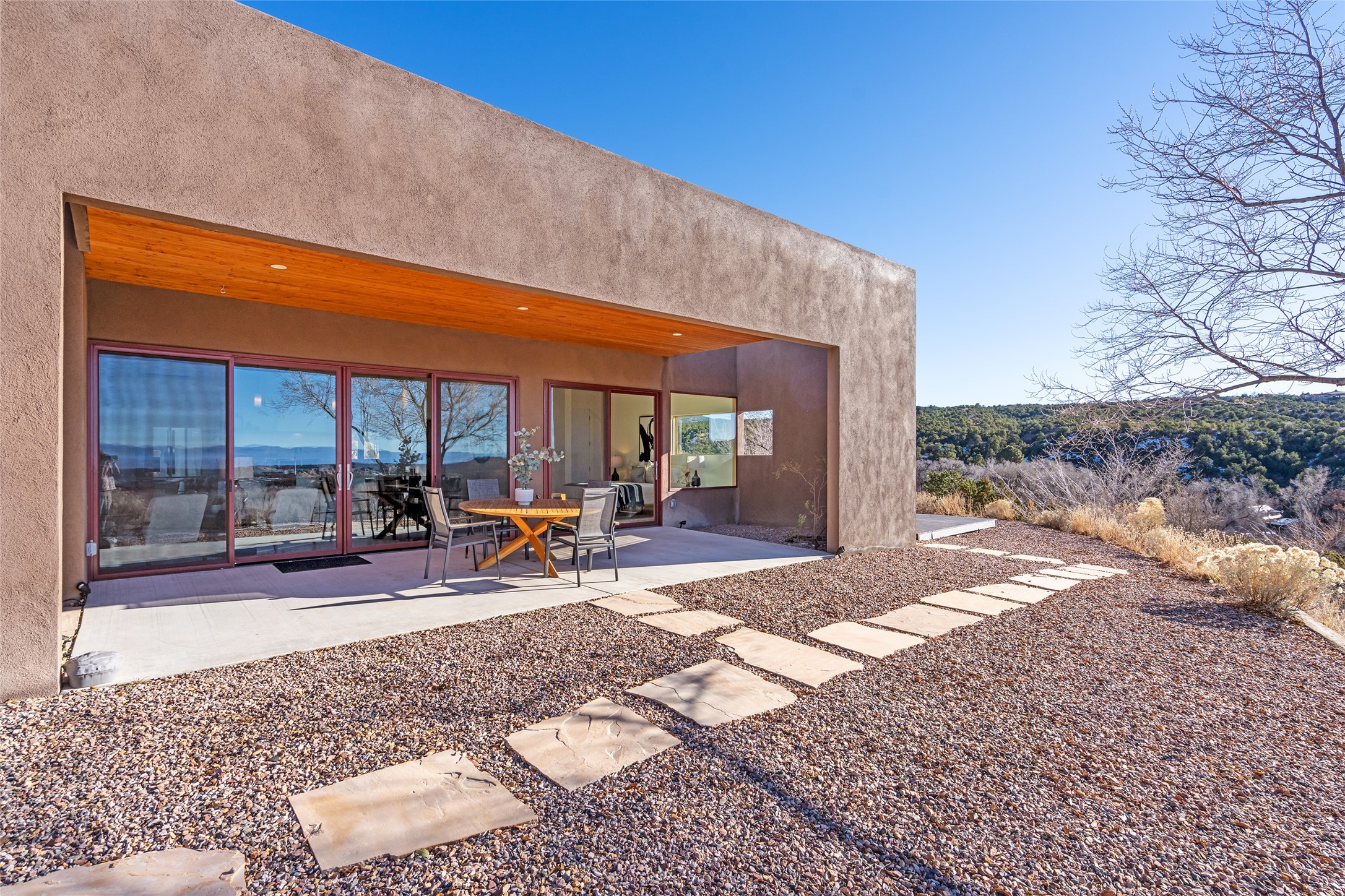 Perched atop a private hill in the storied community of Chupadero, this contemporary split floor plan 2-bed, 2-bath residence delivers the kind of views most people only dream about. Thoughtfully designed for high-desert living, the home includes solar power and water catchment, underscoring a sustainable, forward-thinking approach to life in this remarkable landscape. Indoor-outdoor living shines here, with each room offering direct access to the surrounding patios and the panorama beyond.Comfort comes easily thanks to radiant in-floor heating, a wood-burning stove, and ductless mini splits that both warm and cool the home year-round. Even everyday moments feel elevated--the kitchen sink frames a stunning view of the Sangre de Cristos.Just 20 minutes from downtown Santa Fe--and even closer to beloved amenities such as the Four Seasons, El Nido Restaurant, and Tesuque Village Market--Chupadero offers a lifestyle that feels both connected and wonderfully serene. Make an appointment to experience this special home for yourself.