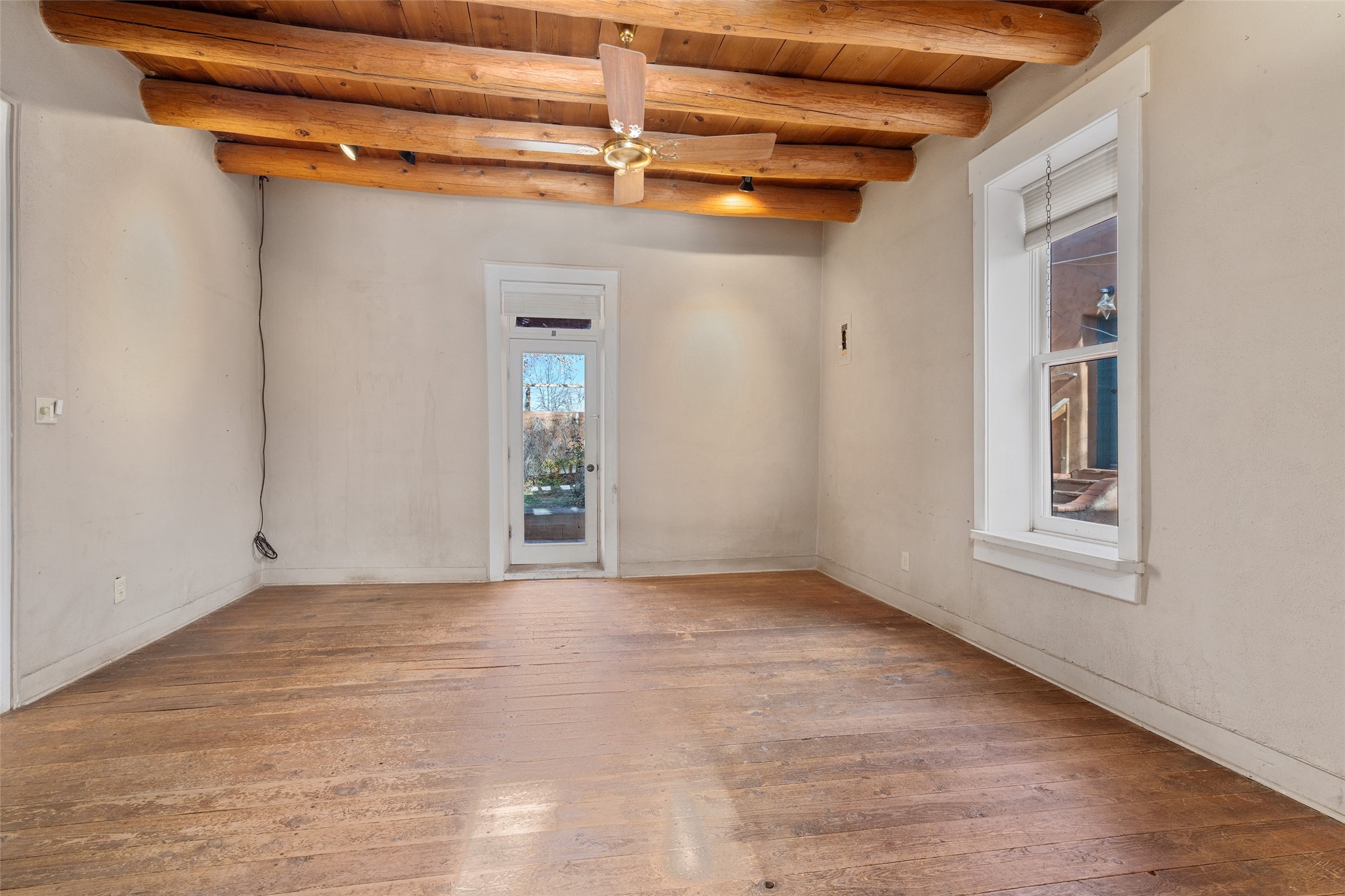 This historic Hacienda embodies the essence of old-world New Mexico charm and the deep, layered history of Galisteo, with the spirit of this venerable adobe reflecting the lore, legend, and mystery of the Galisteo Basin. Dating back to the 1800s, the property served as the headquarters of Don Jos Ortiz y Pino's sheep empire--a gathering place and general store--and later, beginning in the late 1970s, as the iconic Quartermill Farm - home, studio, and gallery of acclaimed potter and visual artist Priscilla Hoback, offering decades of creative nourishment to the local arts community.Nestled in the heart of Galisteo Village, still celebrated for its vibrant artistic culture, the long portal of the former gallery lines a central village road, while behind it sits the substantial adobe main house, rich with both intimate and grand spaces that speak to another era.The hacienda is composed of two wings--one with a single bedroom and bath, the other with three bedrooms and two baths--along with a large library, grand living room, formal dining room, several distinctive fireplaces, and an abundance of authentic architectural details. The generous inner courtyard is a place of quiet beauty with an ancient willow shading the koi pond. Together with the central kitchen and spacious living room, the layout suggests a home once designed for gatherings, celebrations, and meaningful connection. The grounds feature mature trees, fruit trees, flower gardens, and multiple outbuildings. This is a rare and significant property now ready for its next chapter. The home requires restoration and thoughtful renovation, offering a discerning buyer the opportunity to reimagine and revive an important piece of Galisteo history. For those with vision and appreciation for heritage, the potential is extraordinary--an invitation to become the next steward of this remarkable estate and to make your own mark on Galisteo's enduring story.