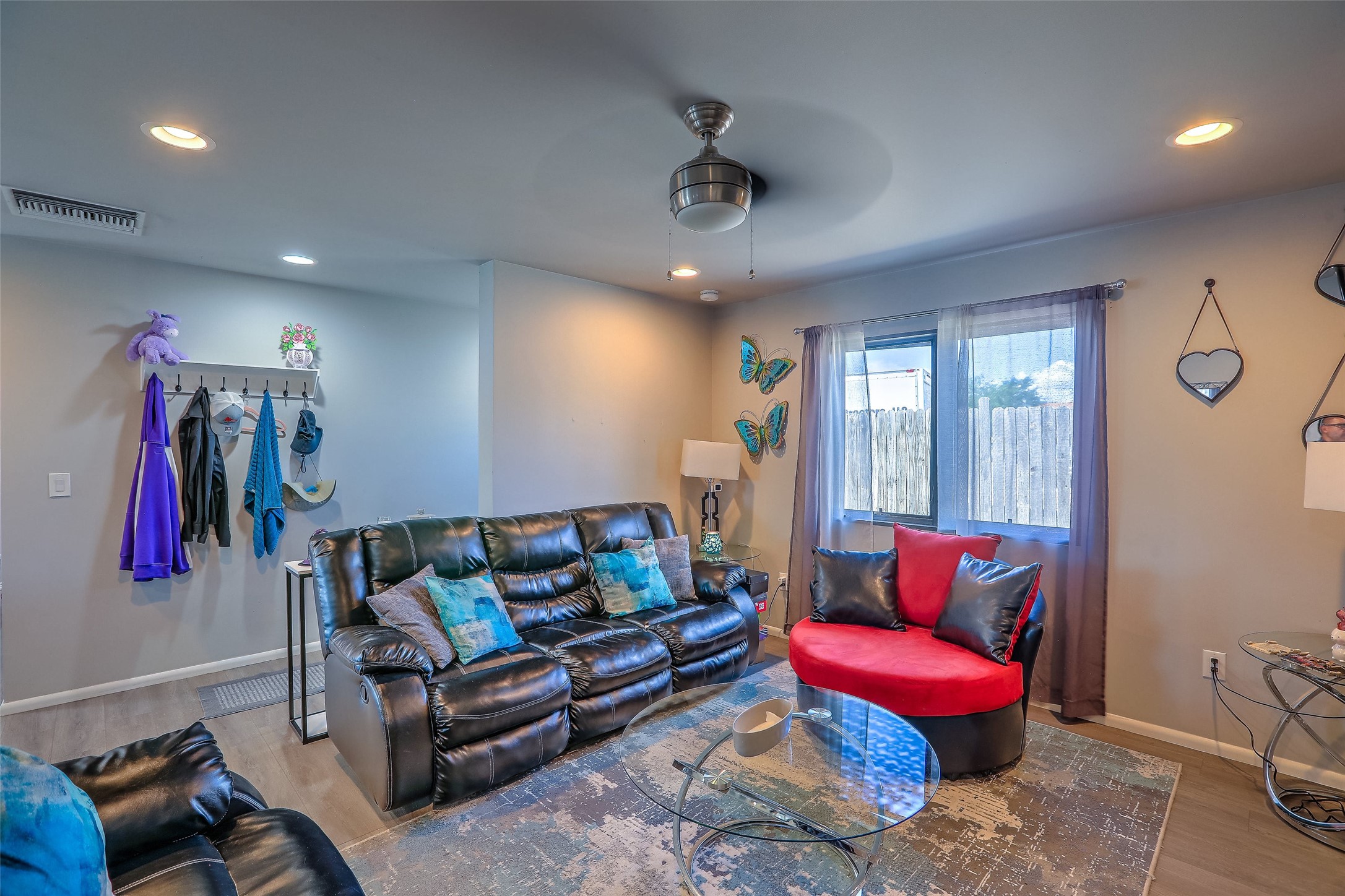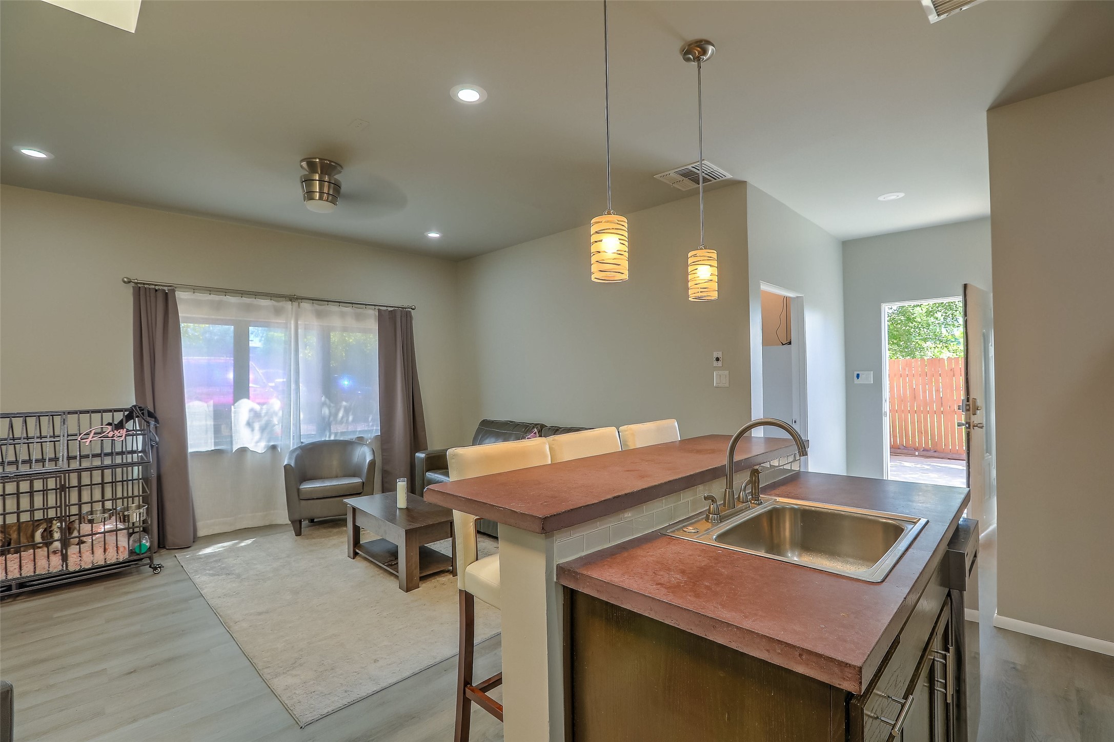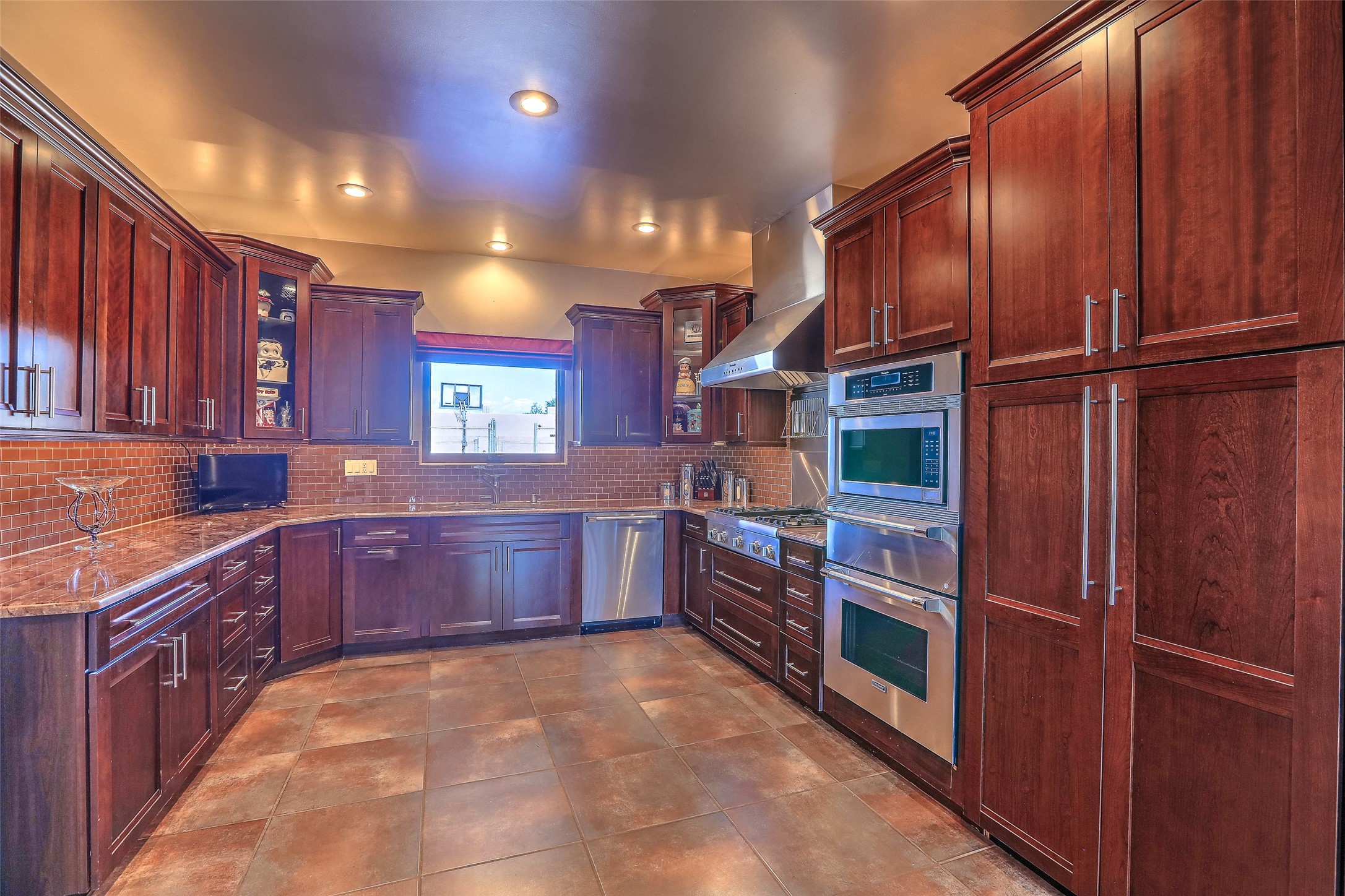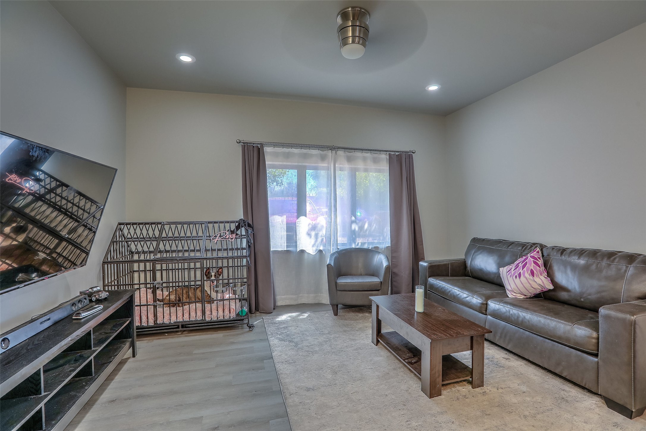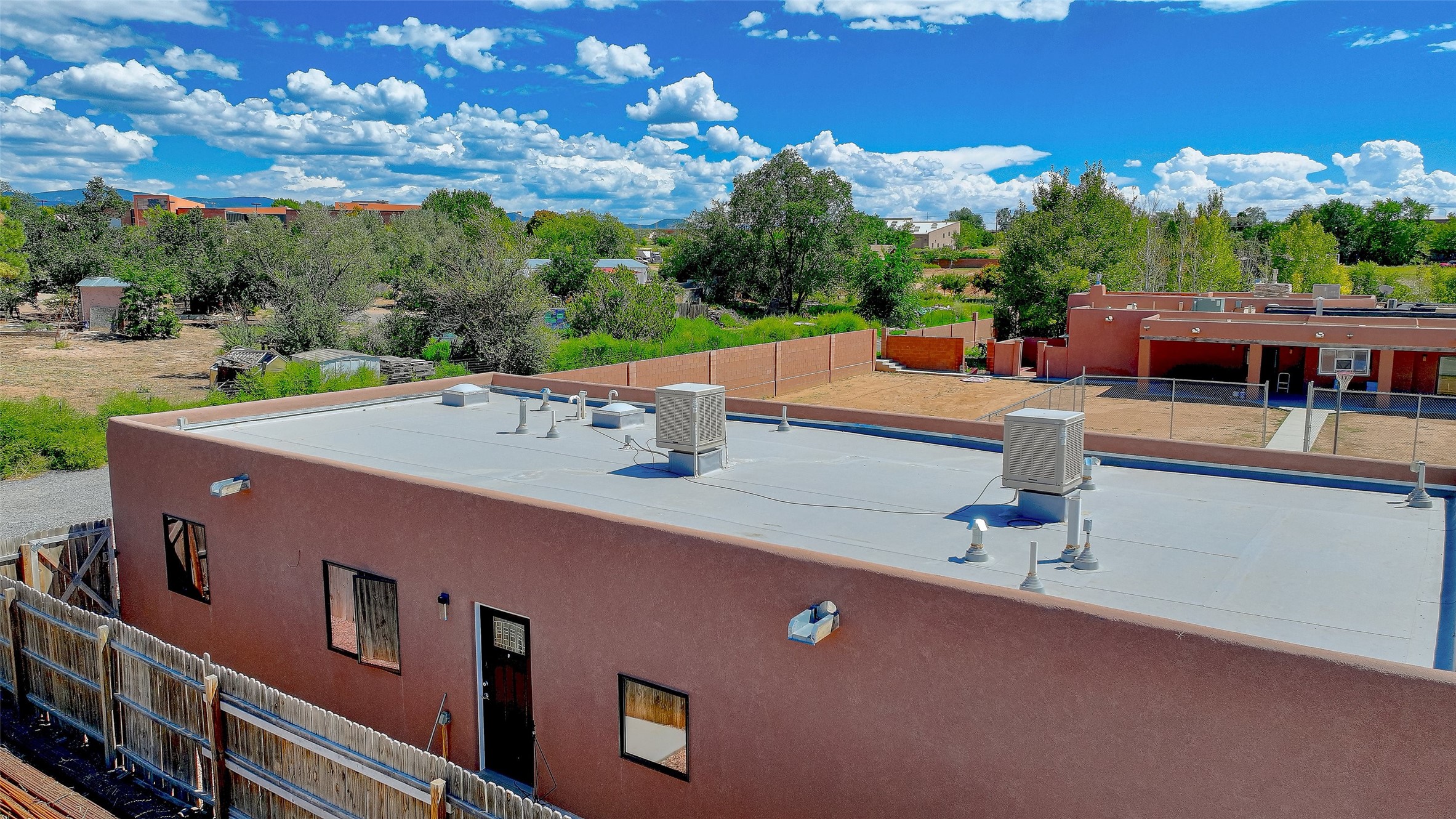 No showings until Mon 1/12. Priced to sell! Don't miss our on this opportunity!!! Absolute Stunner in Santa Fe! Perfect for a Large Family or Investor. Walk into the 2,764 SF 3 Bedroom, 3.5 Bath Primary Home and be greeted with Luxury! A Huge Sunken Family Room creates a Cozy and Intimate Atmosphere for Family Gatherings centered around a Fireplace accented with a Stonewall covering the entire South Wall. Magnificent Vigas and Diamond Finish Walls provide the Perfect Touch! The Kitchen is a True Chefs Delight! The Main Home includes an En Suite, Office, Radiant Floor Heating, Central Vac System, Water Softener System, and a High Efficiency Tankless Water Heater. The Comfy Primary Suite is equipped with its own Fireplace offering the Ultimate Relaxation. Attached to the Main Home is a Fabulous 1,008 SF Efficiency Suite with its own Private Entrance and includes 1 Bedroom, 1 Bath, Office, Full Kitchen, Laundry Room and Living Area. Behind the Full Size Enclosed Basketball Court you will find an additional 1,560 SF Guest Home that was built in 2022. This Modern New Home offers 4 Bedrooms; a Primary Suite, an En Suite, and 2 Guest Rooms and 3 Baths. Features include all Tile Flooring, Tankless Water Heater, TPO Roof, Fenced Yard and its own Private Road. The Two Large (480 SF Each) Utility Sheds/Carports also convey. Don't Miss Out on this One of a Kind Opportunity!!