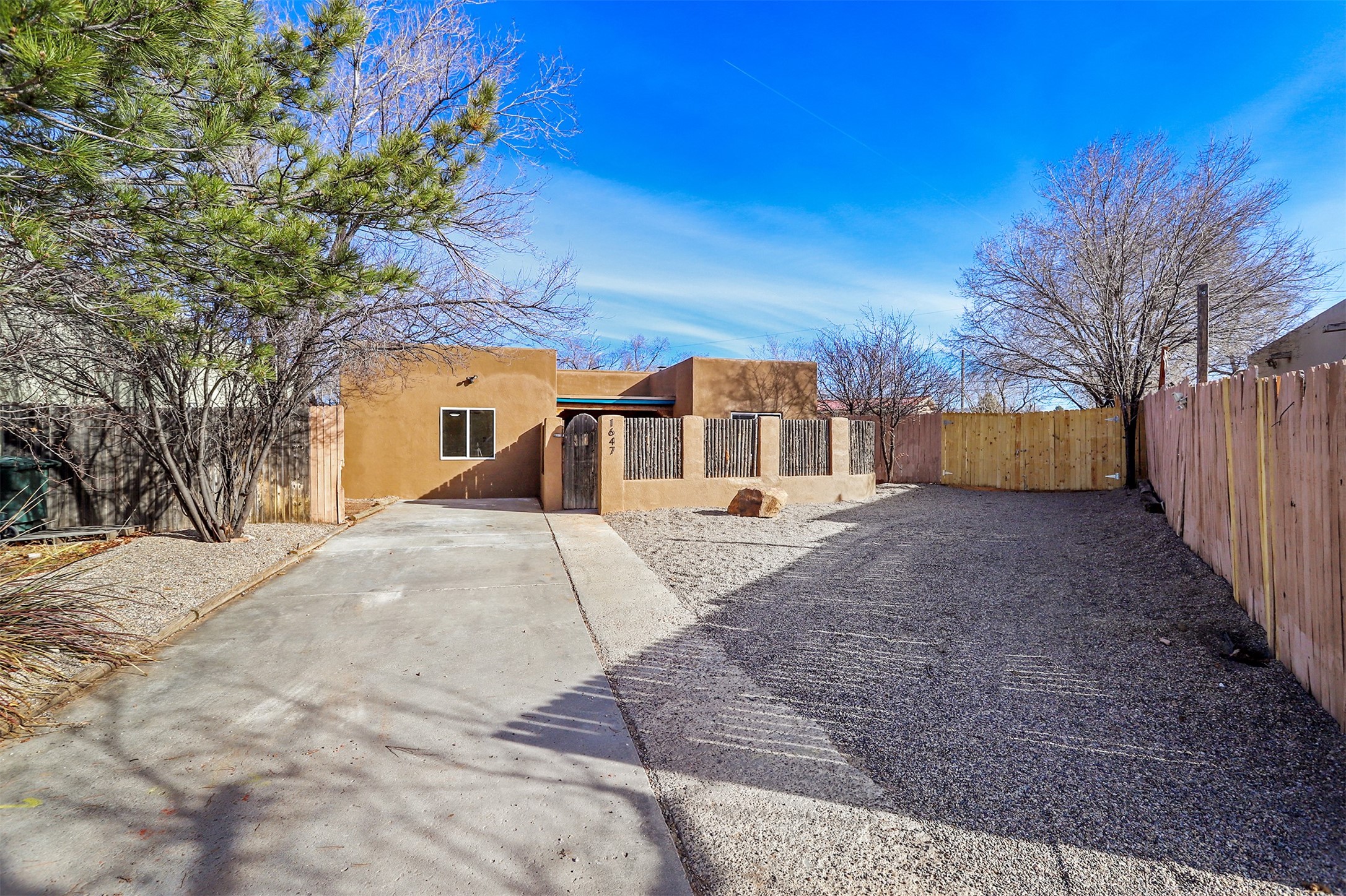 Welcome to this beautifully updated Santa Fe home, where classic Southwestern charm meets modern comfort. Perfectly situated in a central and well-connected area, this property offers easy access to shopping, dining, trails, and everyday amenities while maintaining a peaceful residential feel. A nearby park makes this an ideal setting for evening walks, outdoor enjoyment, and taking in Santa Fe's stunning sunsets. Inside, the thoughtfully designed layout features four spacious bedrooms and inviting living areas ideal for both entertaining and everyday living. The stunning kiva fireplace serves as a warm focal point, adding authentic character and cozy ambiance during cooler months. Saltillo tile flooring in select areas, combined with fresh interior and exterior paint, creates a bright, refreshed atmosphere with timeless Southwestern appeal. The updated kitchen is ready for all your culinary adventures, featuring new countertops, new cabinetry, and new stainless steel appliances. Remodeled bathrooms, updated light fixtures, and new carpet in the bedrooms enhance comfort and livability throughout the home. A new mini-split heating and cooling system installed on 11/2025 provides efficient, year-round climate control, and the home features a newer roof 04/2025. Set on a generously sized lot, the expansive backyard offers convenient backyard access and excellent flexibility--perfect for outdoor entertaining, gardening, additional parking, or creating your own private retreat. With its thoughtful updates, abundant outdoor space, and desirable location near parks and amenities, this move-in-ready Santa Fe home is a wonderful opportunity to enjoy comfort, character, and convenience all in one.