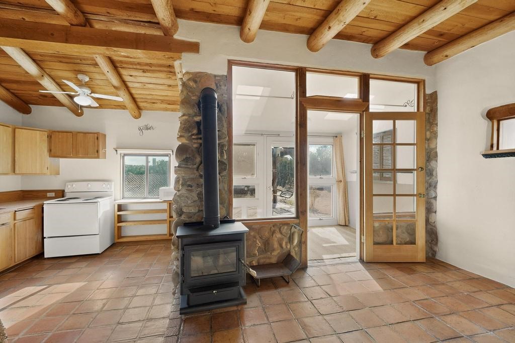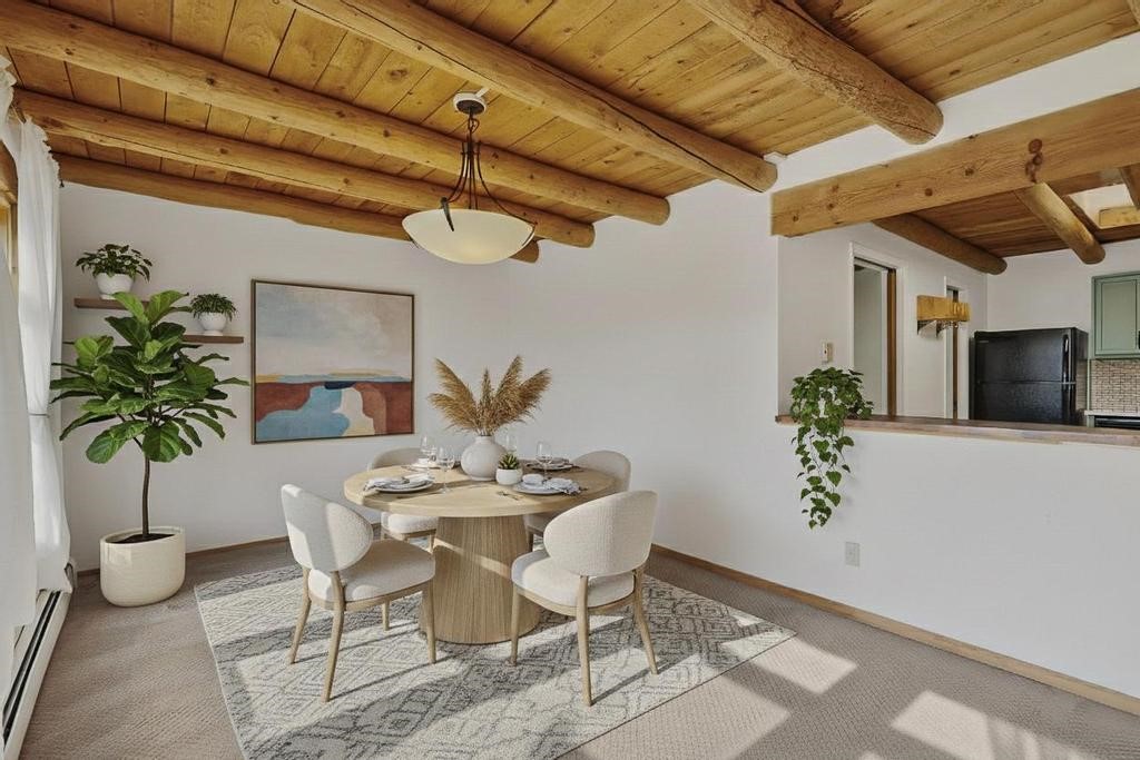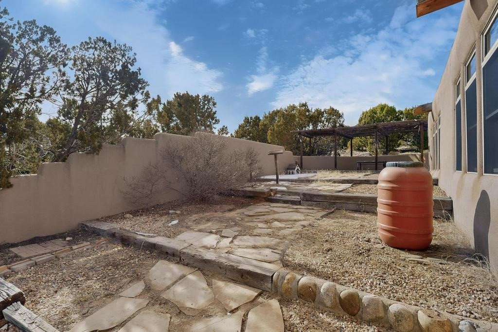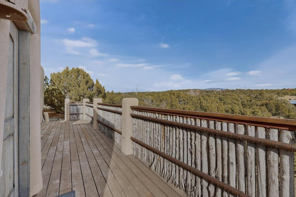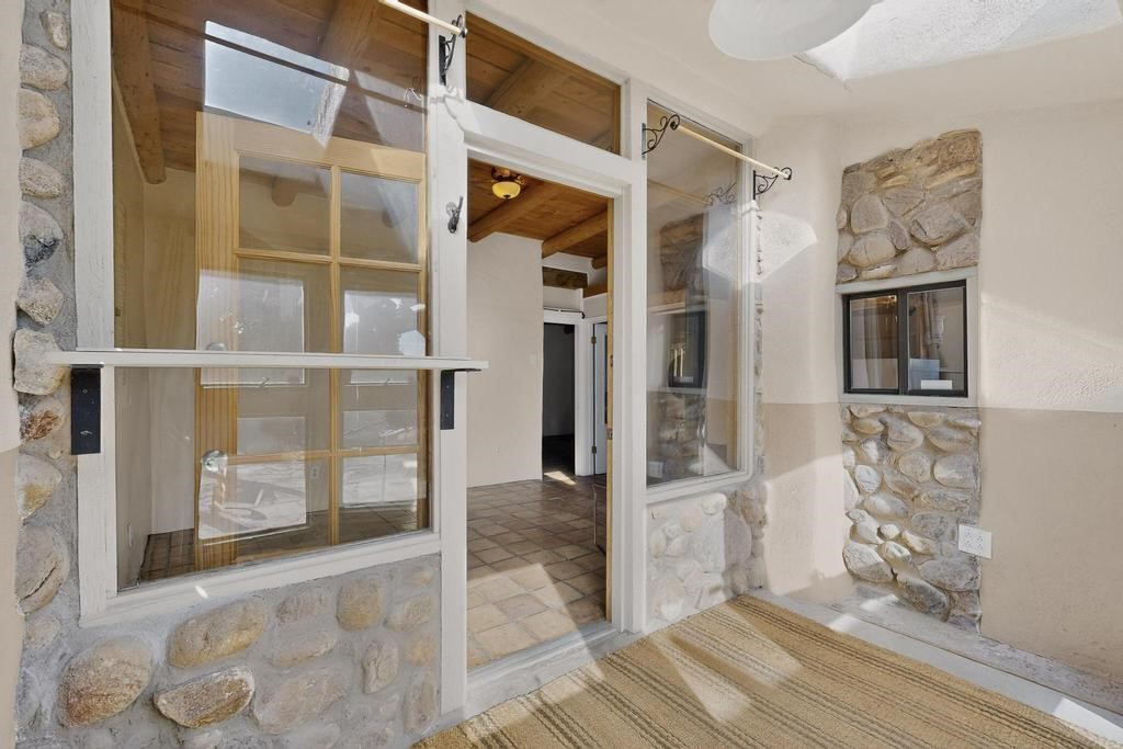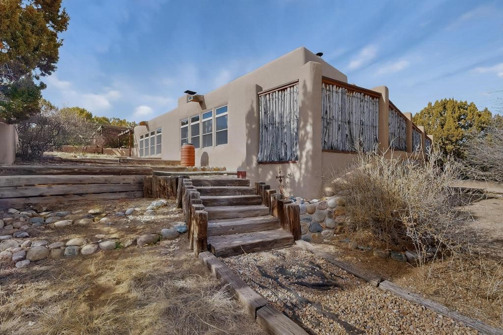 Have you ever wanted space to breathe and still be close to amenities? This zen home has that! Surrounded by native trees and plants, the mountains peak through when you're on the front deck. Enter the home to see large beams , lots of light, and SW MCM style. A passive solar dining room stays comfortable year around, and the fireplace & wood stove keep things cozy when the snow is falling. The updated kitchen has plenty of space with an eat-in bar top that looks outside, as well as a separate pantry and laundry room. Up a short flight of stairs, you'll find 4 bedrooms where the primary bedroom has a kiva fireplace to create a peaceful retreat. Outside, there are places to gather, and down the little path you find the hidden gem of a casita. Enter to find stone and brick and a luxury rustic vibe. The casita is full equipped with its own wood stove, a stackable washer/dryer, fridge, lots of light, and a separate bedroom/bathroom. Its private patio is a lovely South facing area perfect for hanging out or contemplation. In just a few minutes you're at the dog park or are on your way to the Plaza. If you're heading up to Los Alamos, the freeway is easy to access for a faster commute. Come take a deep breath and see this lovely home soon.
