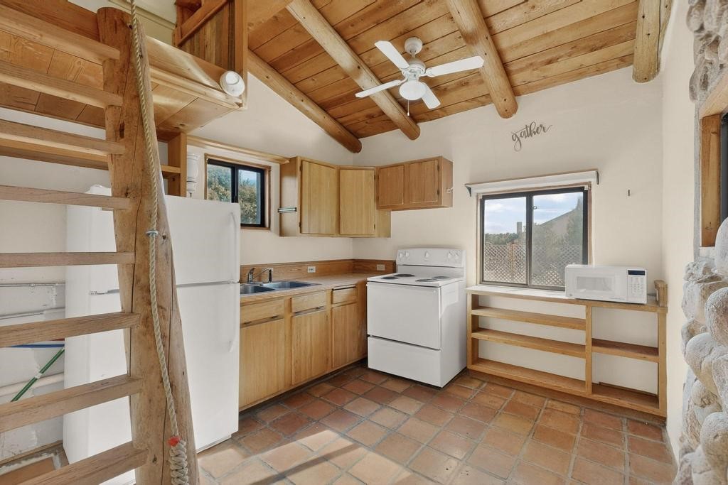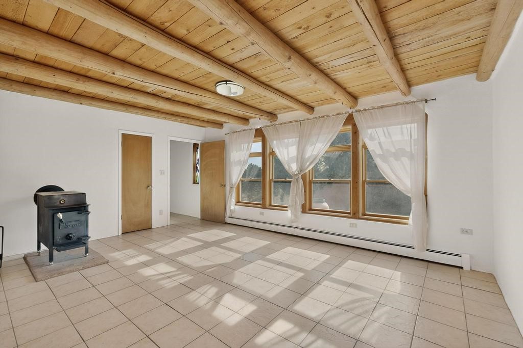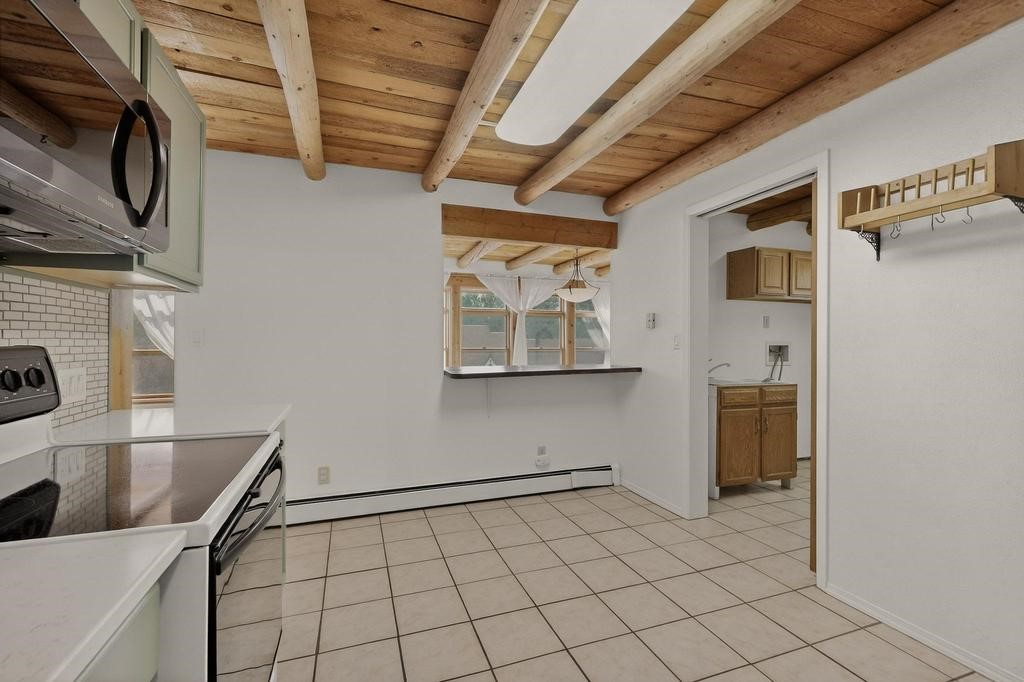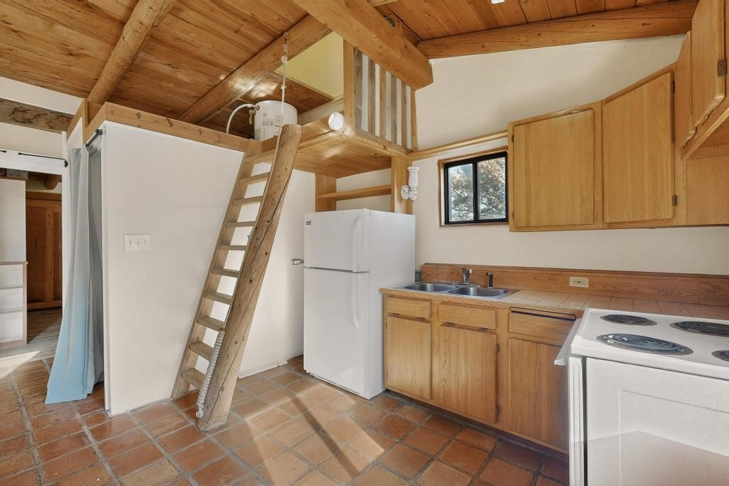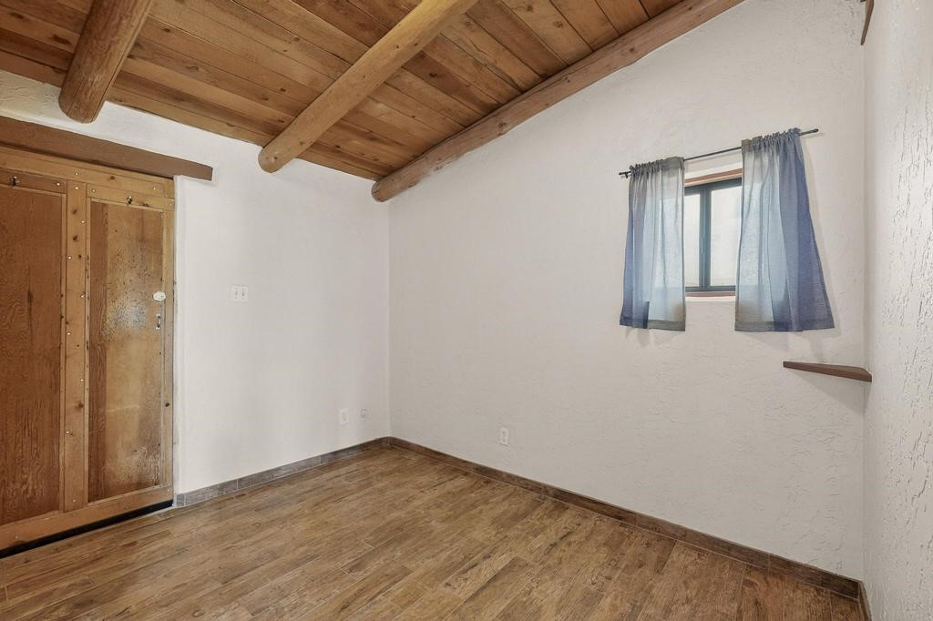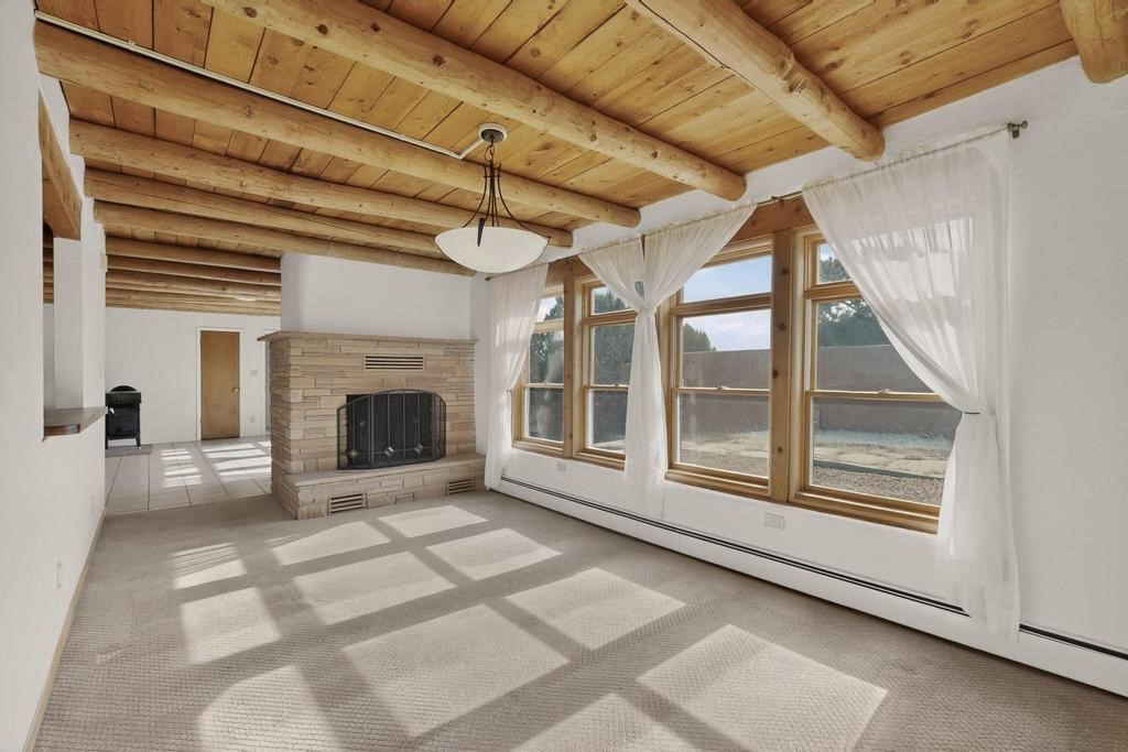 Have you ever wanted space to breathe and still be close to amenities? This zen home has that! Surrounded by native trees and plants, the mountains peak through when you're on the front deck. Enter the home to see large beams , lots of light, and SW MCM style. A passive solar dining room stays comfortable year around, and the fireplace & wood stove keep things cozy when the snow is falling. The updated kitchen has plenty of space with an eat-in bar top that looks outside, as well as a separate pantry and laundry room. Up a short flight of stairs, you'll find 4 bedrooms where the primary bedroom has a kiva fireplace to create a peaceful retreat. Outside, there are places to gather, and down the little path you find the hidden gem of a casita. Enter to find stone and brick and a luxury rustic vibe. The casita is full equipped with its own wood stove, a stackable washer/dryer, fridge, lots of light, and a separate bedroom/bathroom. Its private patio is a lovely South facing area perfect for hanging out or contemplation. In just a few minutes you're at the dog park or are on your way to the Plaza. If you're heading up to Los Alamos, the freeway is easy to access for a faster commute. Come take a deep breath and see this lovely home soon.