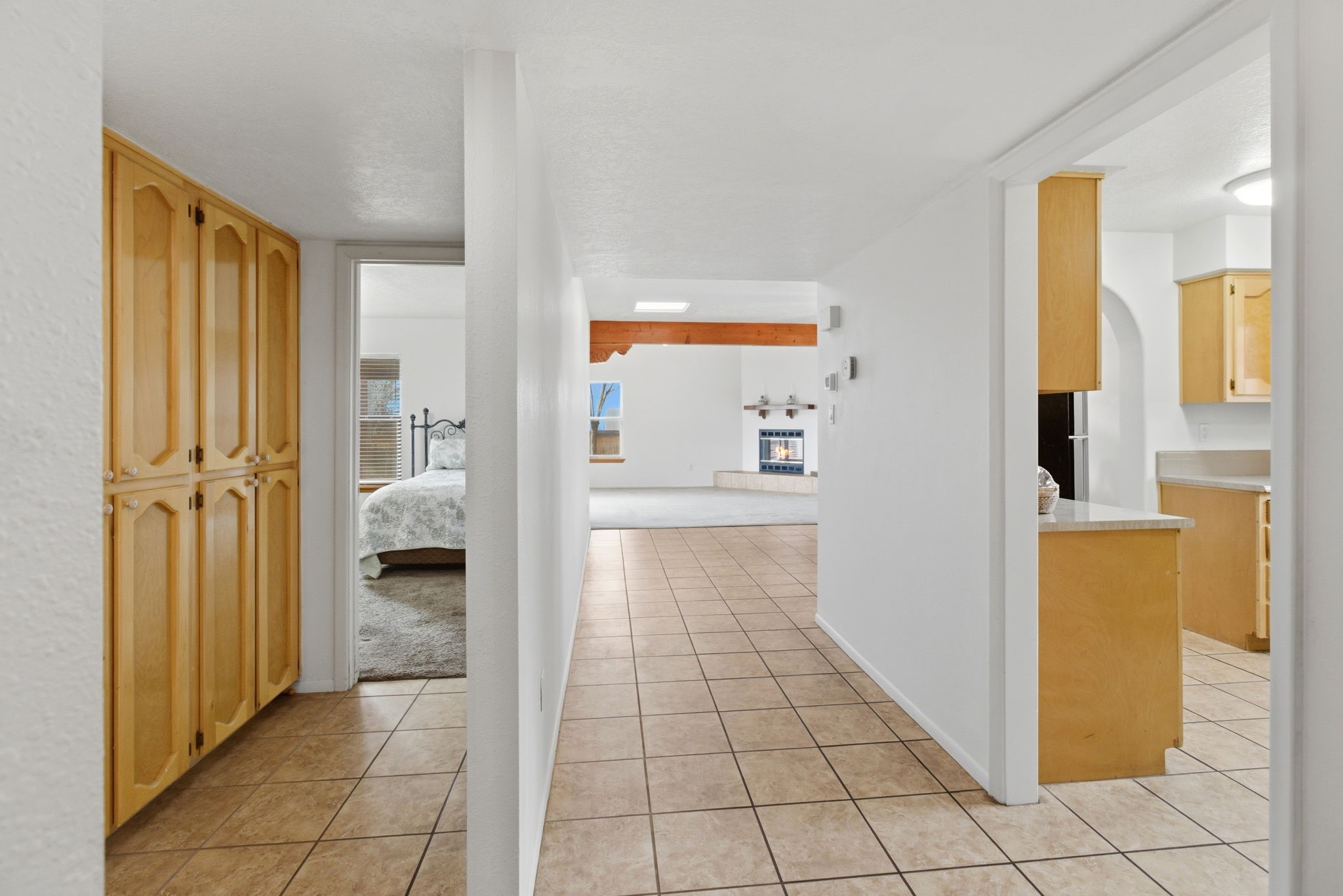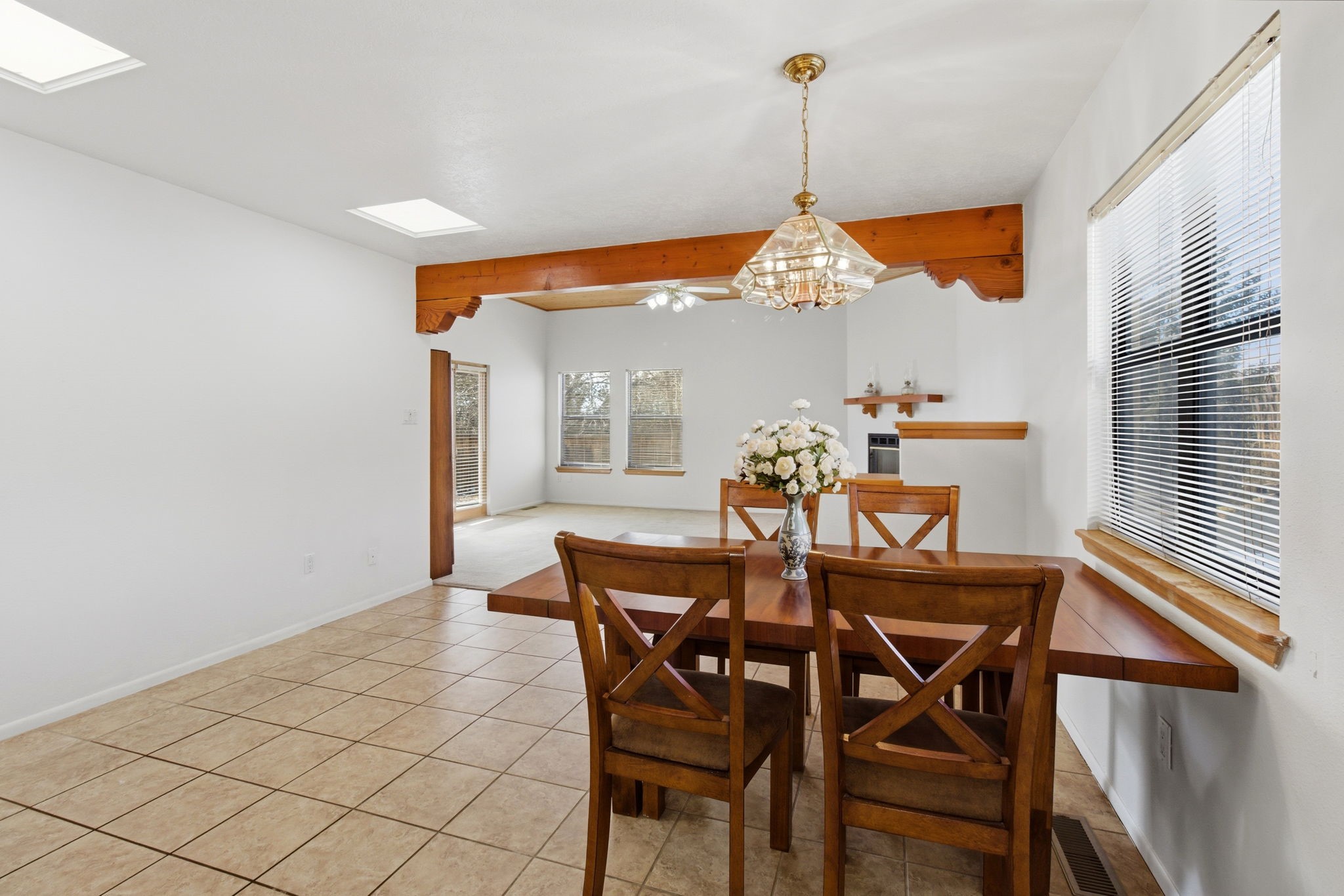 Nestled in the sought-after Park Plazas neighborhood, this beautifully maintained single-level, detached custom home offers comfort, warmth, and classic Santa Fe charm. With 2 bedrooms and 2 baths, the home backs to peaceful common areas and captures breathtaking sunset views of the Sandia Mountains. The spacious, light-filled kitchen features newer appliances, abundant cabinetry, and generous counter space--perfect for everyday living and entertaining.The dining room is enhanced by two skylights and a pony wall that opens to a large, square living room with high, tongue-and-groove ceilings, creating an inviting sense of space and character. A never-used wood-burning fireplace anchors the corner, while French doors lead to a covered portal, ideal for relaxing and enjoying the scenery. Thoughtfully cared for, the home includes a newer water heater, a well-maintained furnace (inspected twice yearly), newer appliances, a newer garage door, and a recently inspected roof.Park Plazas is a cozy, welcoming community close to shopping and all Santa Fe amenities, offering miles of walking trails, an off-leash dog park, tennis and pickleball courts, a community garden, and more. This lovely home truly has it all--and is not to be missed.