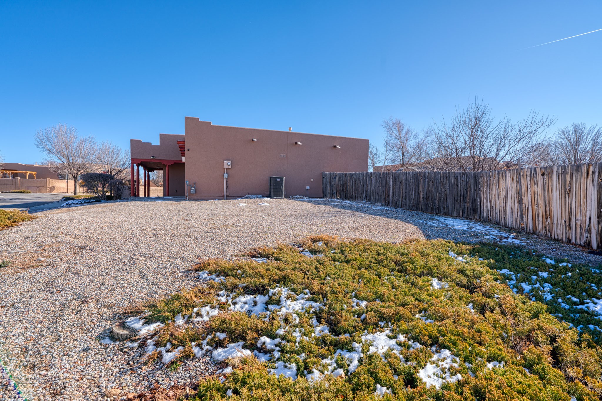 Discover this beautifully updated single-level home situated on a spacious corner lot, featuring 3 bedrooms, 2 bathrooms, a 2-car garage & 1,601 sqft of comfortable living space. This move-in-ready property showcases modern upgrades and timeless charm throughout. Recent improvements include a new TPO roof (OCTOBER 2024) and new stucco (2025), complemented by upgraded flooring, baseboards, recessed lighting, stylish ceiling fans, and freshly painted cabinetry. The living area offers tongue-and-groove ceiling with exposed vigas and beams, creating warmth and architectural character. The primary suite features a custom closet system with built-in drawers and shelving, an elegant accent wall, double vanity, garden tub, and standalone shower. Step outside and enjoy the covered/open flagstone patio space, a fully fenced yard, and a 10'x8' storage shed for added convenience. The oversized lot offers extra parking for convenience!