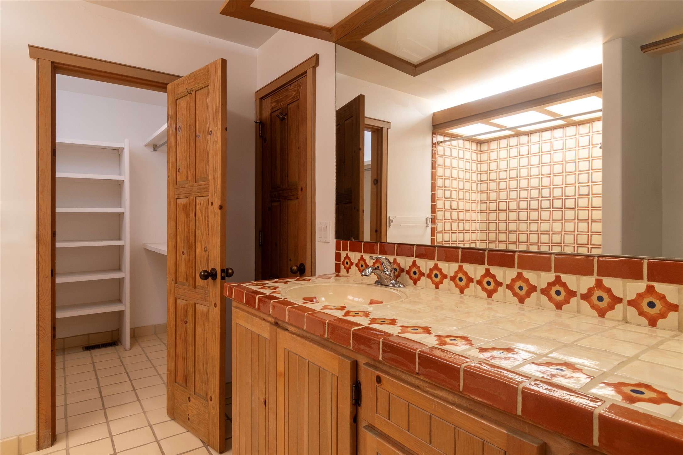 Beautifully sited among mature pion and juniper, this warm Pueblo-style home offers 3 bed 3 bath and stunning views of the Jemez mountains. Light-filled living and dining spaces connect seamlessly to a charming kitchen with wood cabinetry, skylights, and tile accents. The home includes a dedicated office, a serene primary suite, comfortable guest accommodations, and a finished lower level with additional living space, storage, and a well-appointed laundry room. Outdoor living is exceptional with an intimate walled patio, view-filled deck, and natural desert landscaping. A spacious garage and tranquil setting complete this inviting Santa Fe retreat.