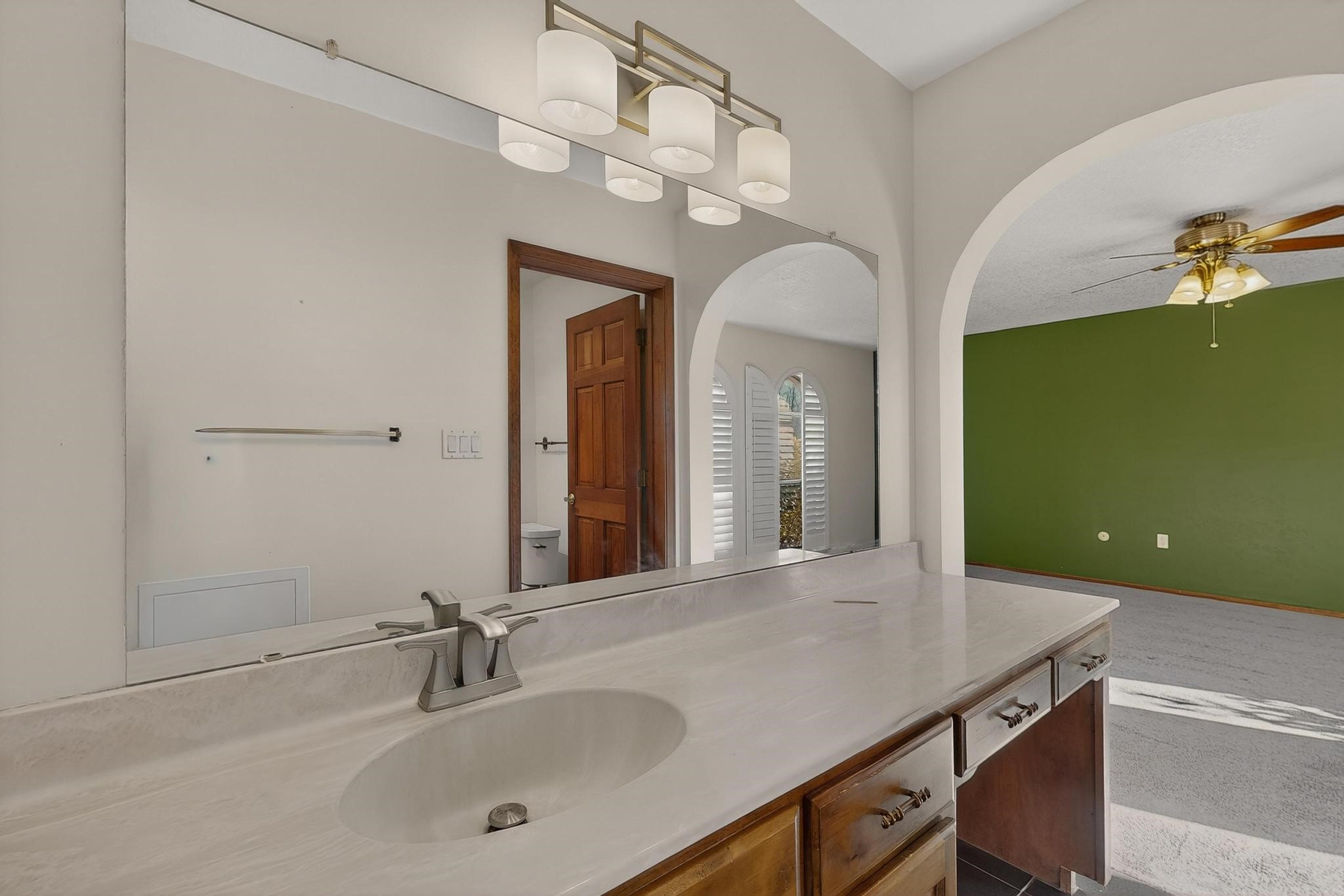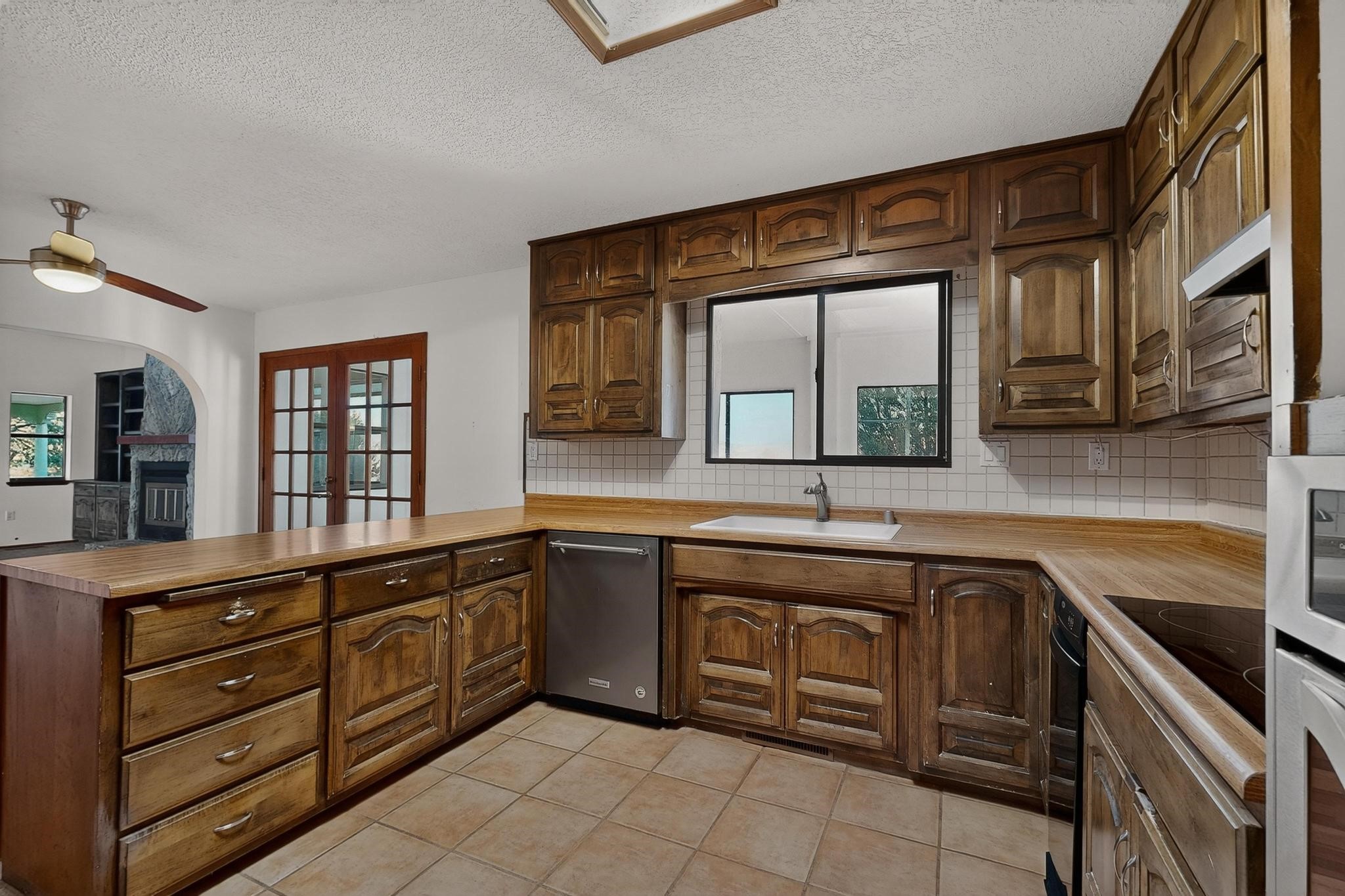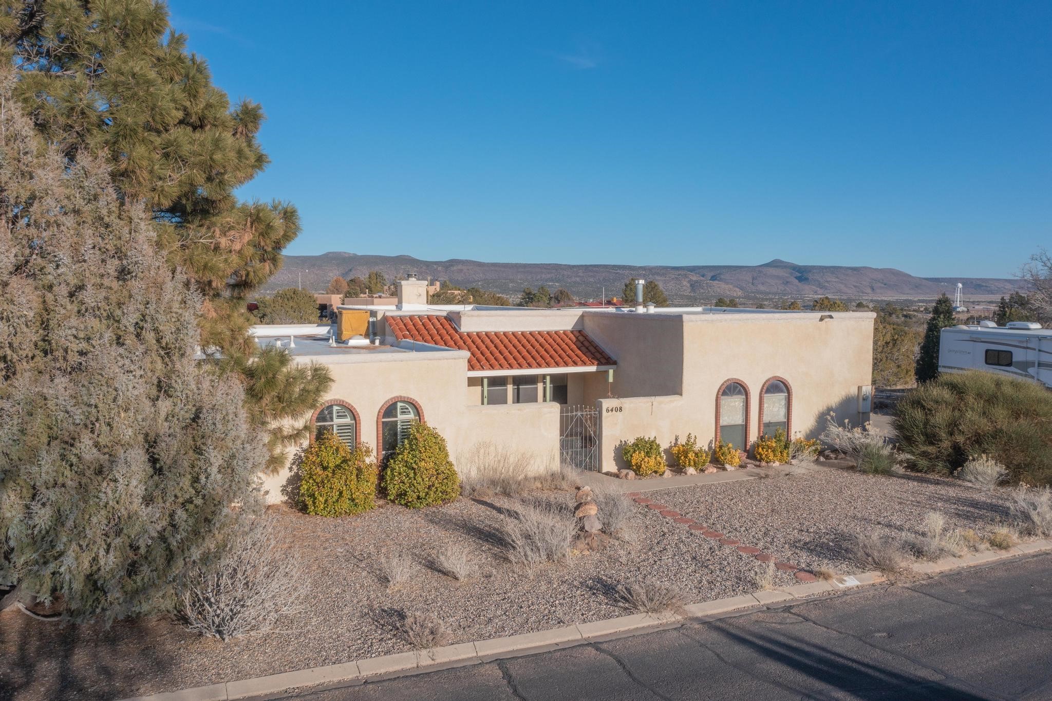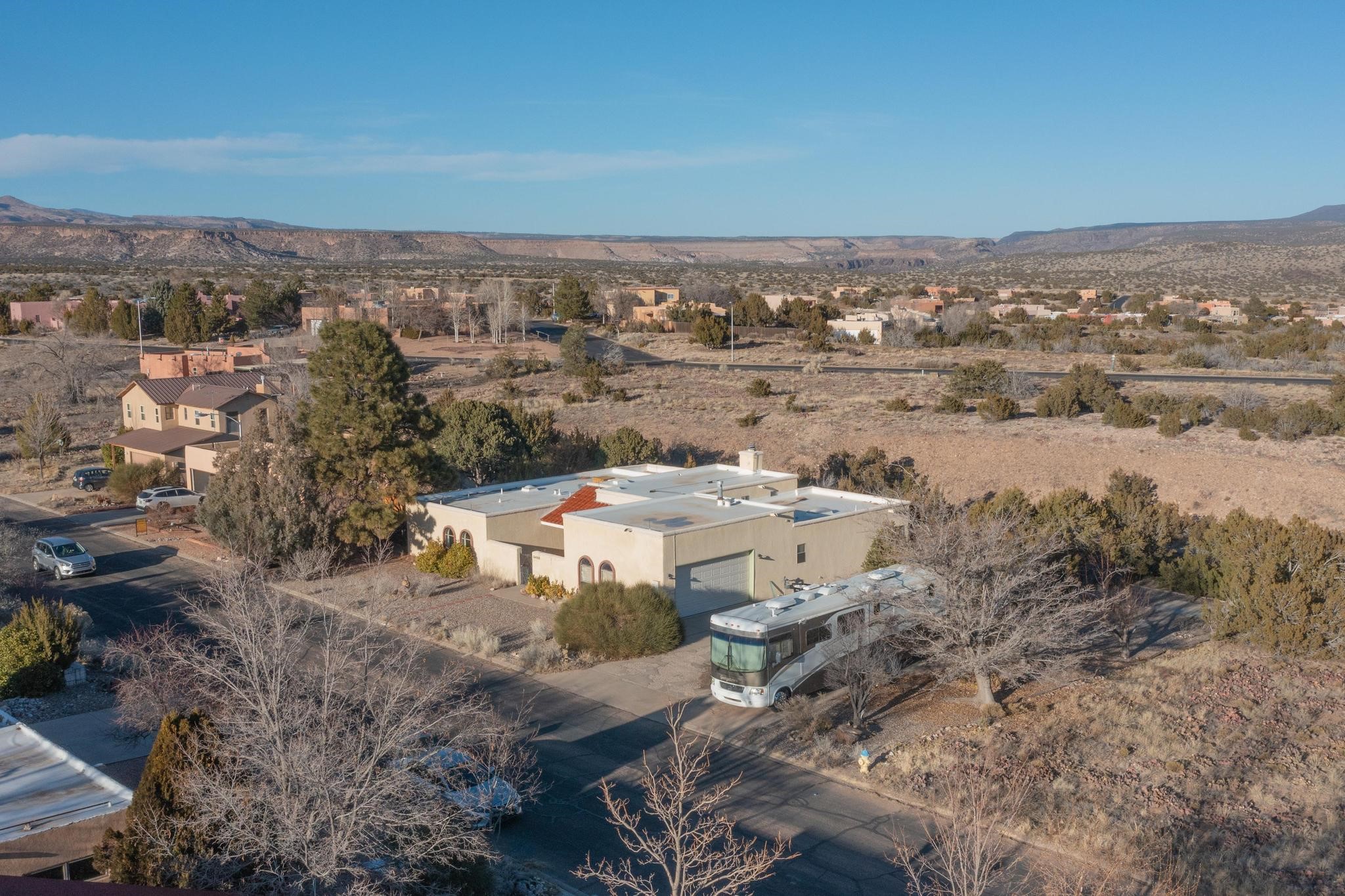 Thoughtfully designed approx. 2,500 sq ft, 3-bedroom plus flex room, 3-bath, 2-car garage home on a desirable double lot backing to open space, offering added privacy and beautiful views. The spacious living area, with room for an office or sitting area, features vaulted wood beam ceilings, a stone gas fireplace updated in 2023, and built-in shelving.The well-planned layout includes two primary bedrooms with en-suite baths, one with a walk-in closet, plus a third bedroom and an additional full bath. Bathrooms have been thoughtfully updated, including a remodeled primary bath with a walk-in shower. A sunroom, small office area off the kitchen, direct-access garage, and dedicated laundry room provide excellent flexibility for daily living.Notable improvements include a new furnace and water heater (2019), updated kitchen appliances and lighting, newer washer and dryer, insulated garage door, updated interior and exterior lighting, ceiling fans, window coverings, replaced window pulleys and screens, UV/heat-filtering window film, and new carpet in the living area and bedrooms. Additional amenities include marble flooring, forced air heating, central evaporative cooling, raised garden beds, fruit trees, and recent exterior updates.A wonderful opportunity to enjoy space, privacy, views, and relaxed Cochiti living. Please see the documents section for a complete list of updates and improvements.