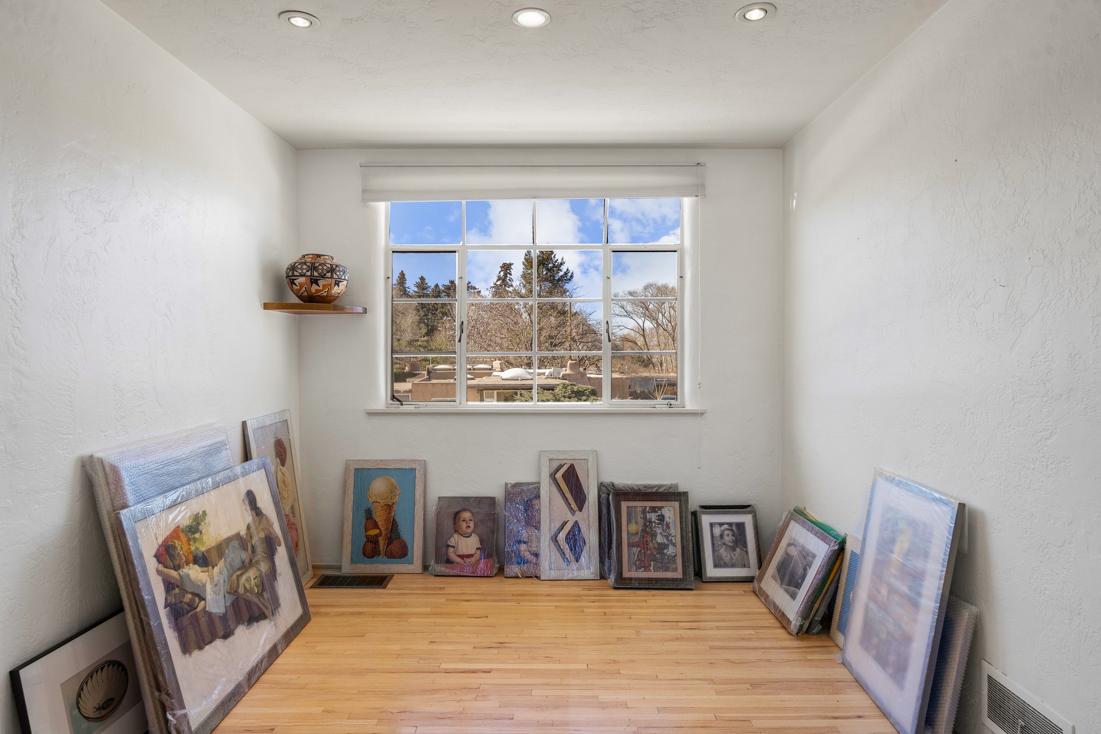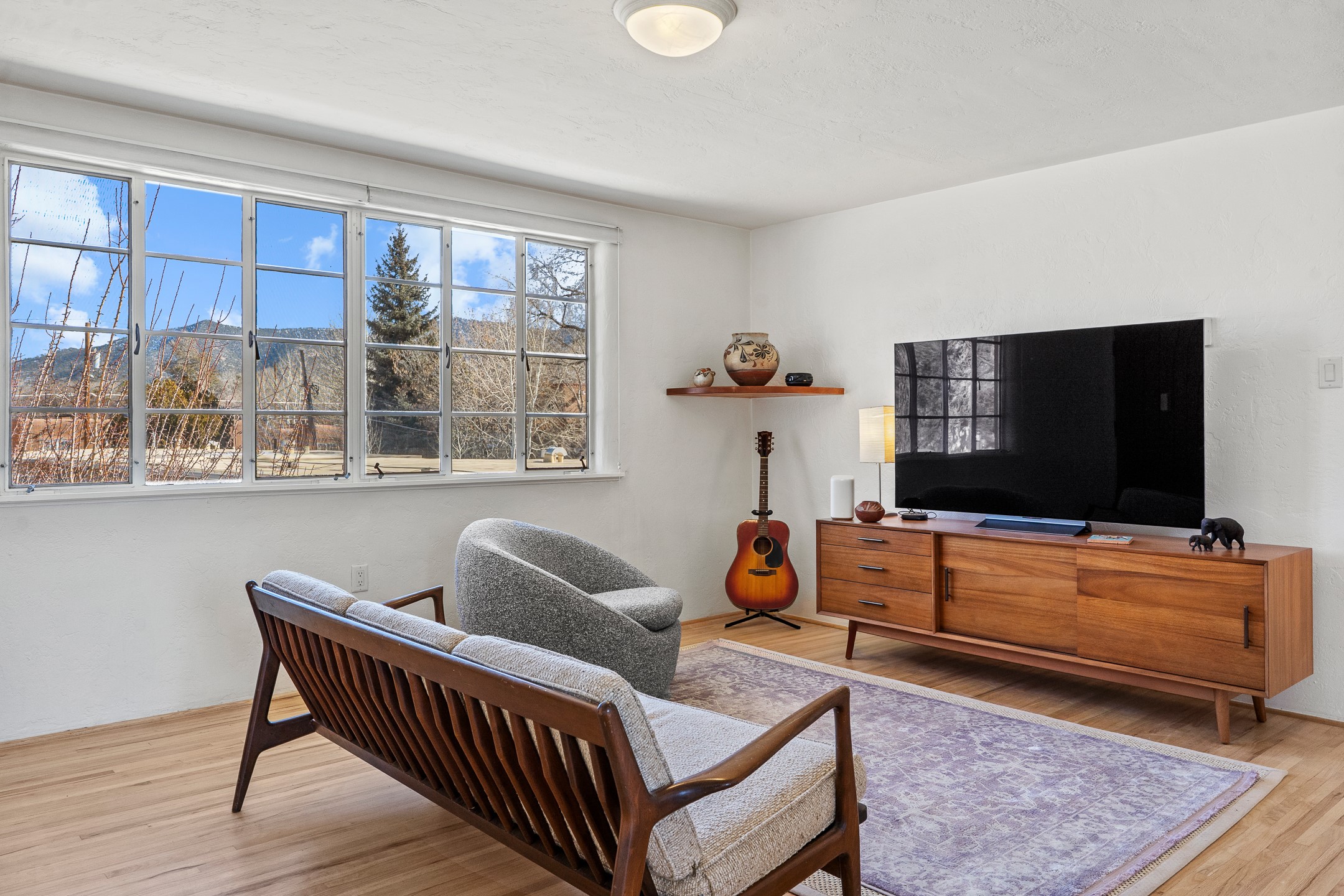 Nestled behind a white picket fence on Garcia Street, Casa Barbara is one of those charming Historic Eastside properties that exudes the essence of "old Santa Fe." This 1951 territorial-style garden-courtyard compound is listed on the NM historic preservation list, and it's exactly the kind of place Eastside buyers wait for.This extensively upgraded true two-bedroom unit boasts a prime location in the Historic Eastside, offering second-floor views of the lush landscaping and Sangre de Cristo Mountains. The interior features beautiful original red oak floors, a fully renovated bathroom, and an updated kitchen that combines charm with modern convenience. Outside, the meticulously maintained gardens provide a peaceful retreat among the apricot trees, aspens and lavender.Conveniently located within walking distance of Canyon Road, Acequia Madre, and the Plaza's galleries, museums, dining, and coffee shops, this unit also includes a covered carport, unit-owned storage, and on-site laundry facilities with the option to install in-unit laundry if desired. More new upgrades include updated bathroom and kitchen plumbing and restored original window hardware.The well-managed HOA has also made significant improvements to the property including new roofs on the condo, carport, and storage units, new gutters, and repairs to the front fence and sidewalk. With its move-in ready condition and potential as a primary residence or rental investment, this unit at Casa Barbara offers a unique opportunity to experience the charm of Santa Fe's Historic Eastside.