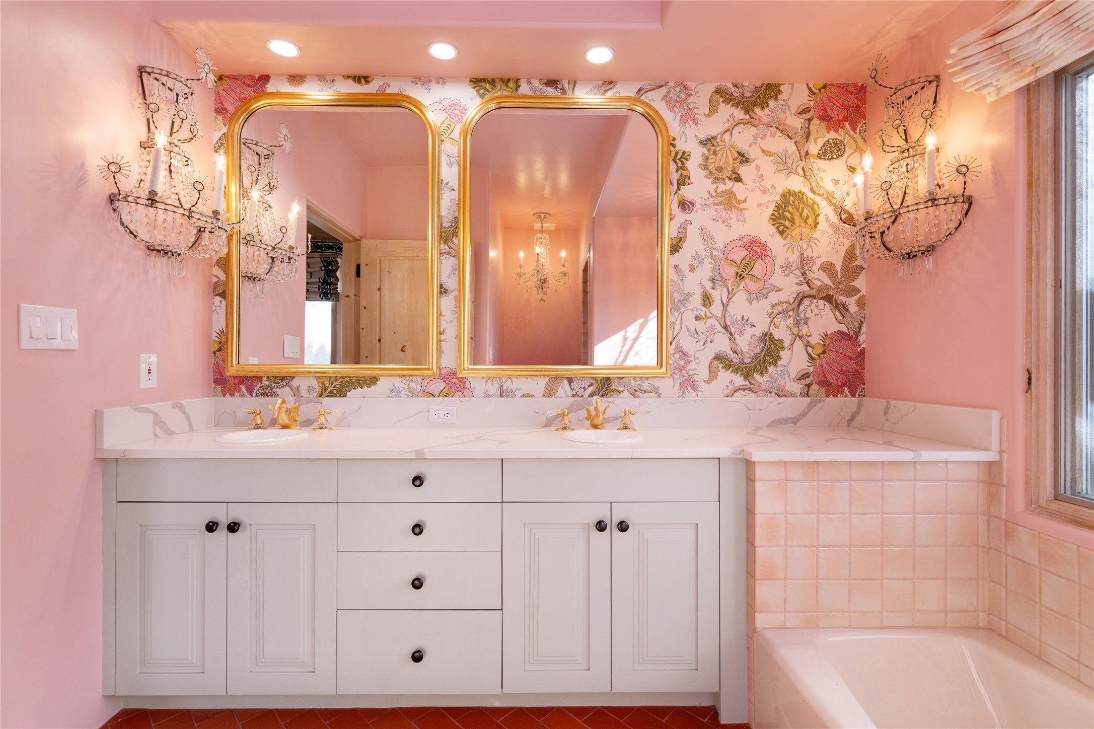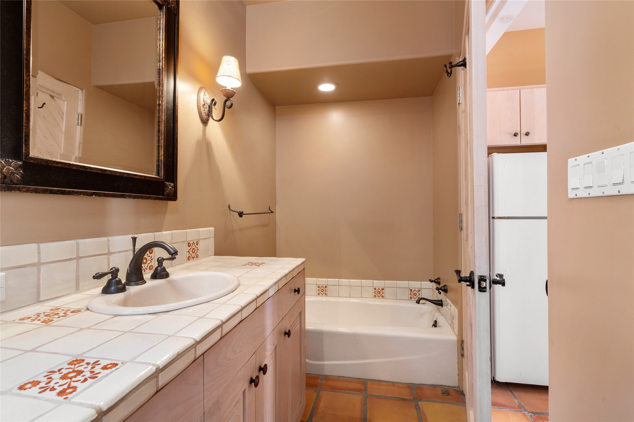 Expansive two bedroom home with guest house and studio. Exceptional views from your front porch and broad portal and large private back yard area perfect for entertaining. 230 square foot lap pool and hot tub for relaxing or entertaining. The main house has a grand foyer ready for art work with a back door showcasing the rear portal and back yard. The large kitchen has plenty of cabinet space, a butlers pantry, quartz counter tops, Wolf 5 burner stove, Cove Dishwasher, Subzero refrigerator, and a cozy banco/breakfast nook offset by a kiva fire place. Adjacent to the kitchen is a dining room that can easily seat 8 with nice views into the back courtyard and front yard. Down two steps past the office and large great room with fireplace to the massive main suite, full bathroom, soaking tub, two walk-in closets, sitting areas and easy access to the 8' hot tub. Guest house has a full kitchen and full bath. Detached studio ready for your endeavors. 2025 roof update with 5 year limited warranty on labor and materials. Must see this gem. Set up a showing today.