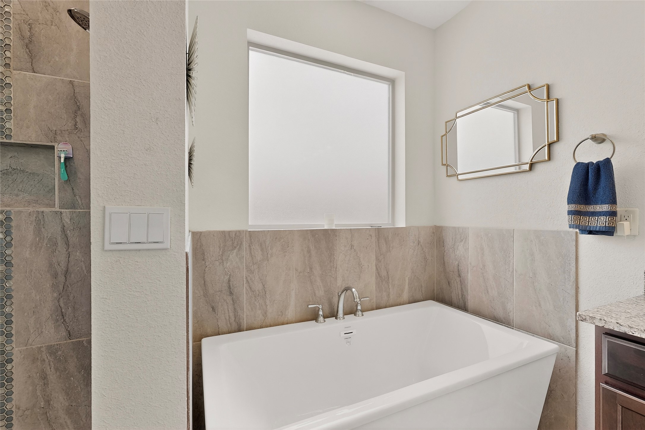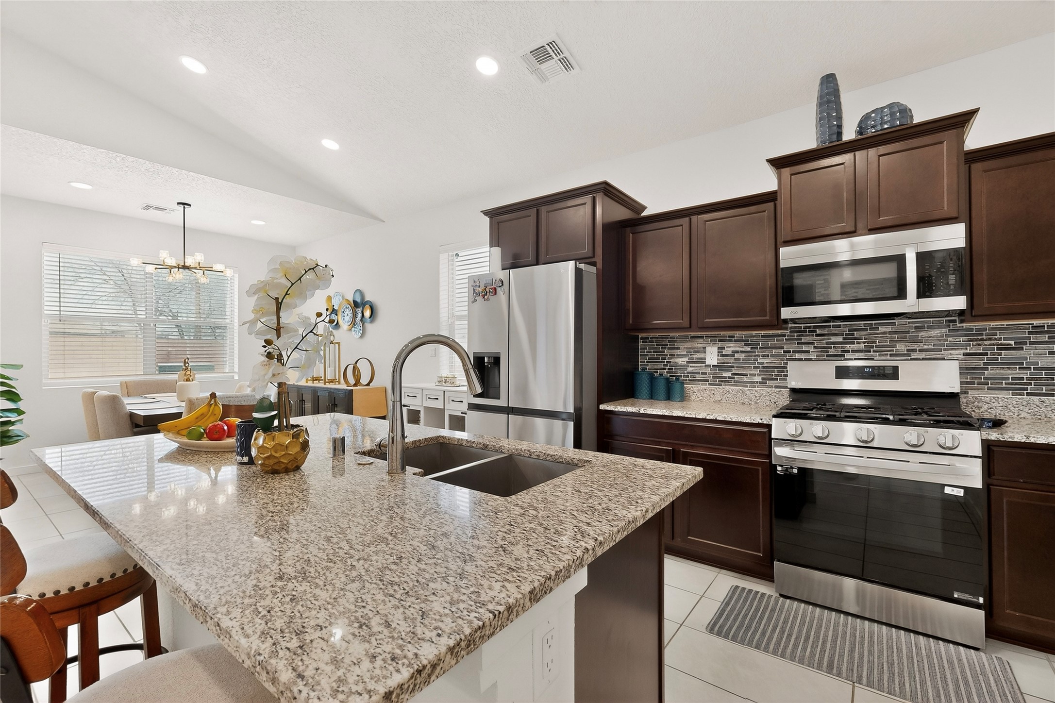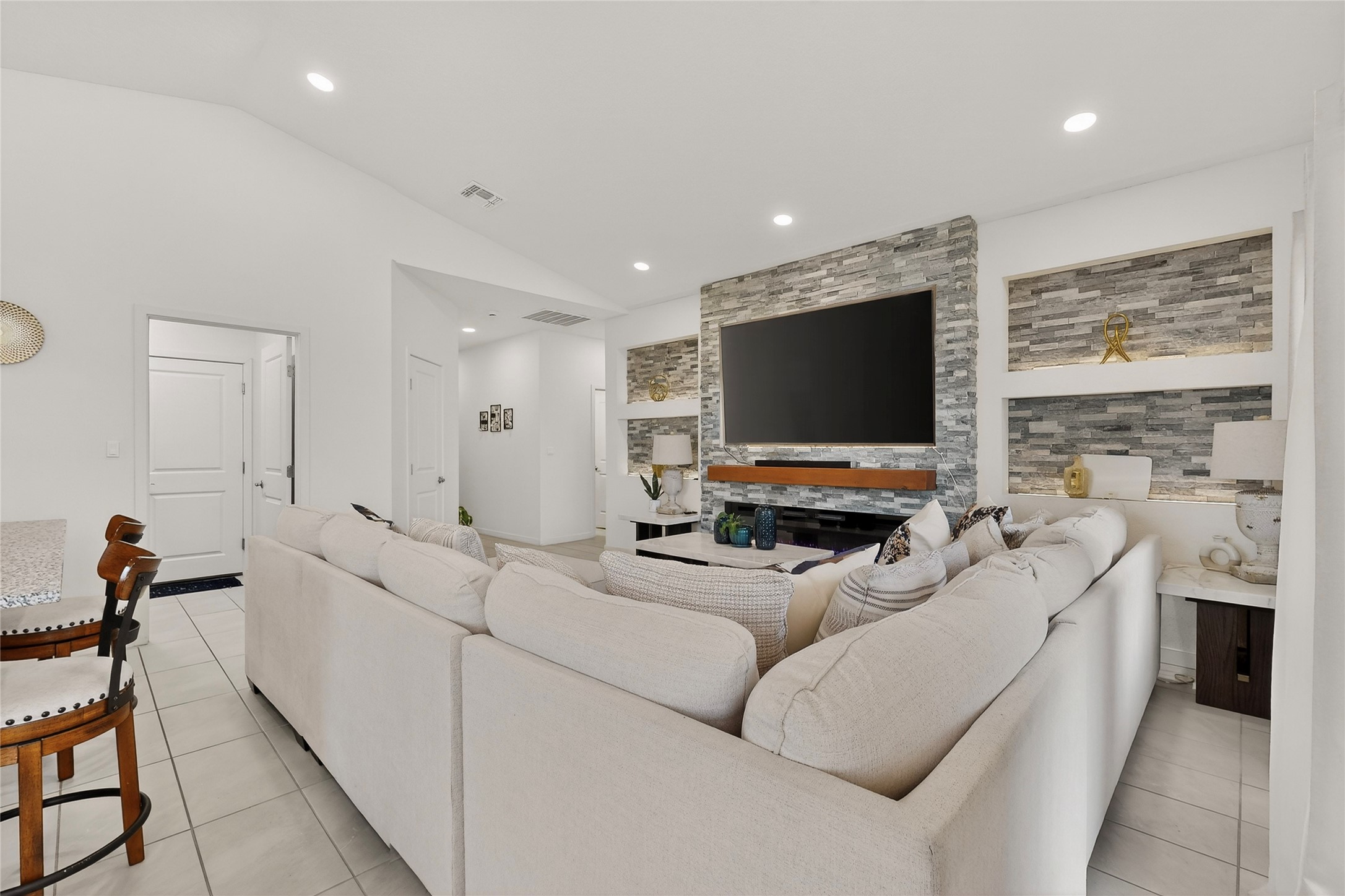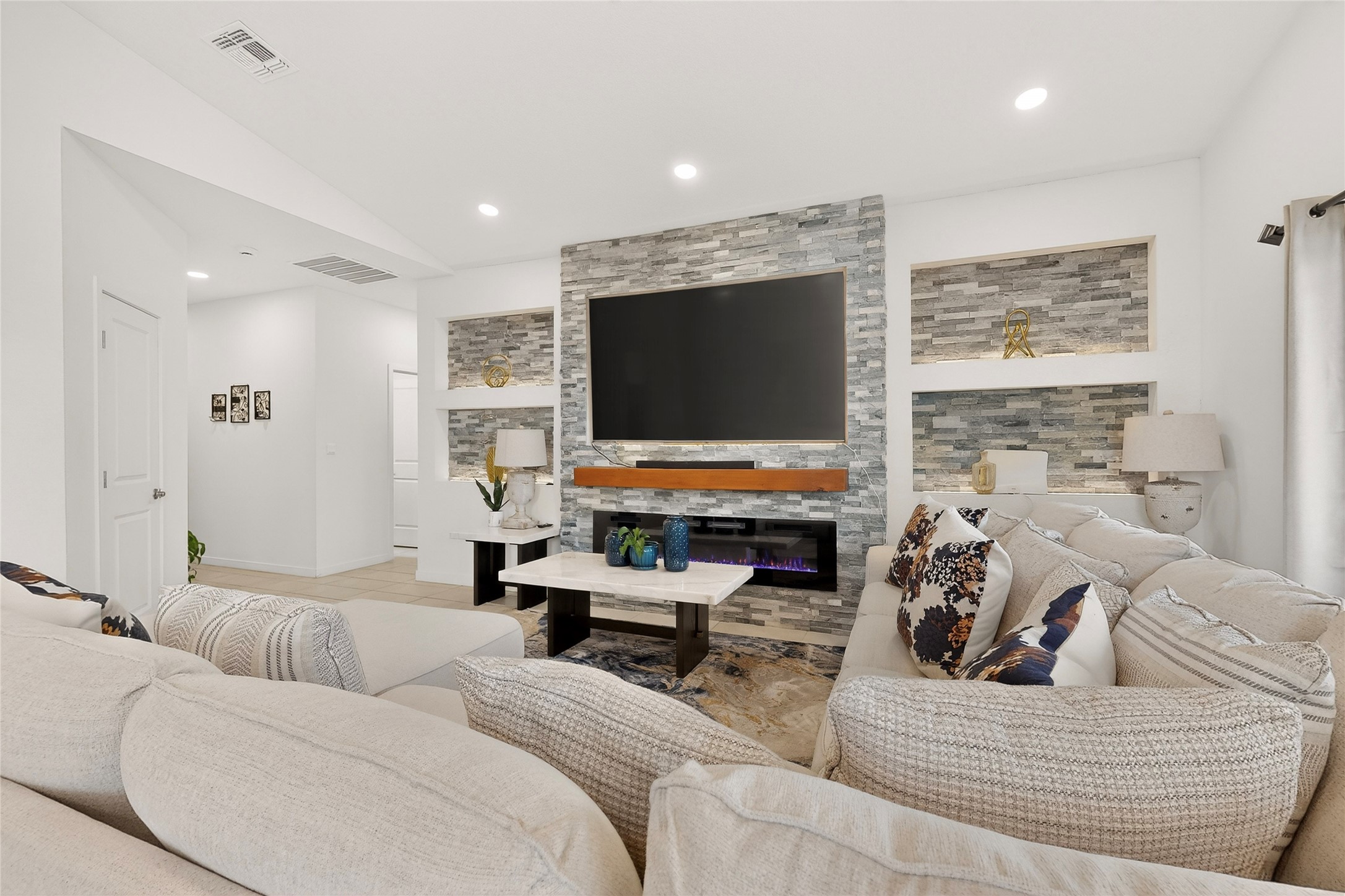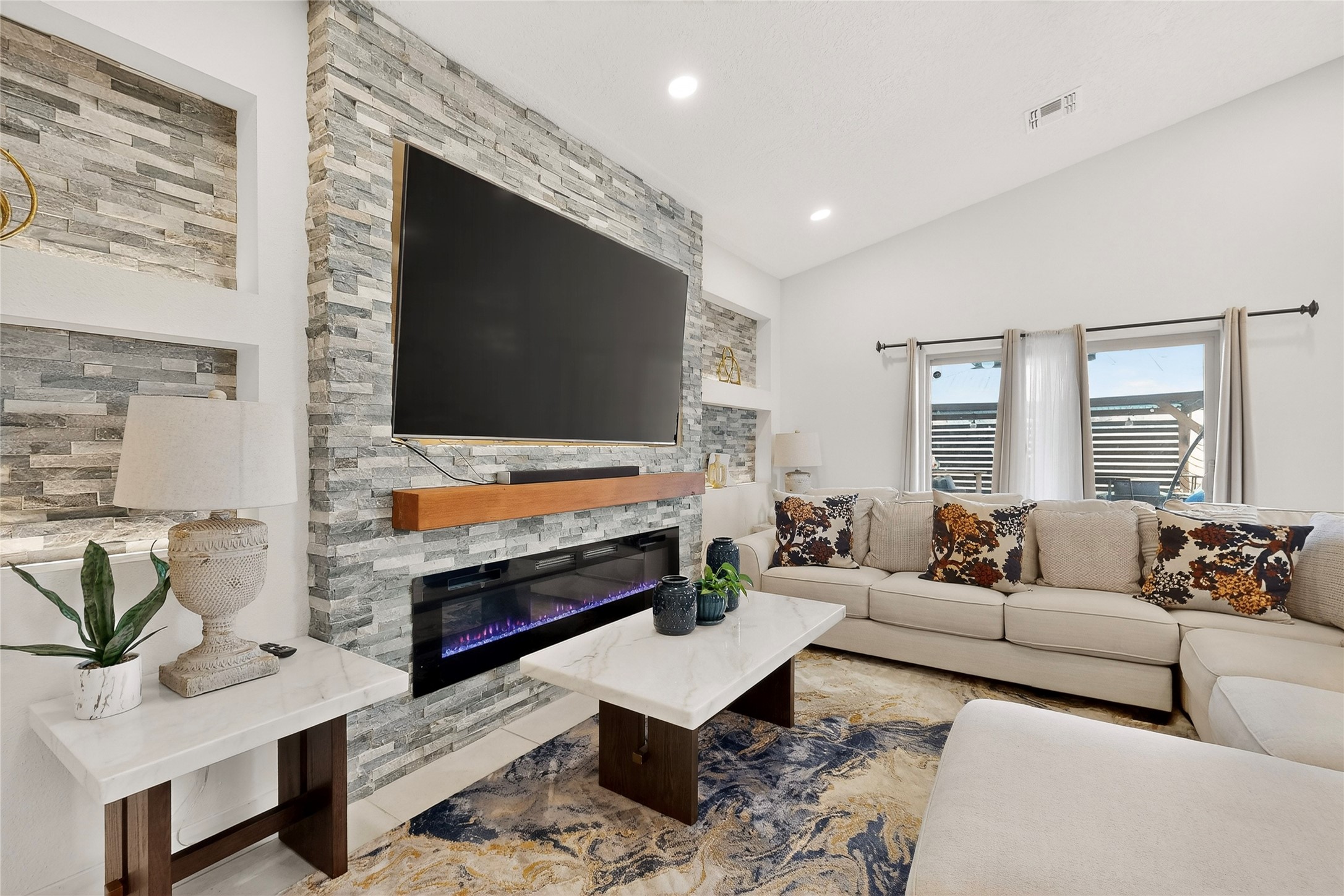 Almost-new, beautiful three-bedroom, two full-bath home featuring a gorgeous kitchen with an eye-catching backsplash and a spacious dining area perfect for gatherings. The primary suite offers a luxurious bathroom with both a soaking tub and a separate shower.This inviting home is tucked away on a cul-de-sac, making it an ideal family retreat. The living room showcases stunning stacked stone, ambient lighting, and a cozy fireplace, creating a warm and welcoming atmosphere. Enjoy a large laundry room and an open floor plan designed for modern living.Step outside to a concrete patio with gazebo and low-maintenance zero-scaped yard, perfect for relaxing or entertaining. Additional features include a tankless water heater and a finished garage.