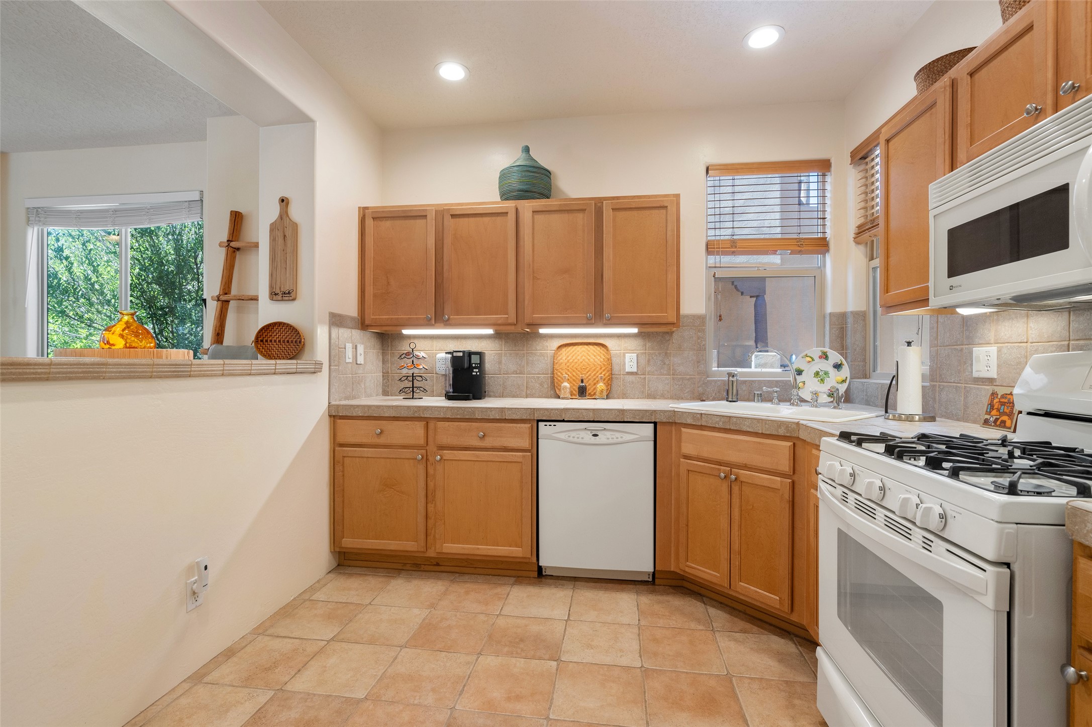 So lightly lived in, you'll be amazed at its pristine condition! Plus, a brand new heating and cooling HVAC system just installed! Located in the desirable Windmill Ridge area of Rancho Viejo, this turn-key property is ideal for full-time living or as a low-maintenance lock-and-leave aided by a smart thermostat Ecobee which is accessible through a smart phone. The main living area features beautiful tile floors and a soaring 20-foot ceiling, creating an open and expansive feel. A charming gas kiva fireplace, vigas, and wood ceilings add authentic Santa Fe warmth. The kitchen offers generous storage within maple cabinetry, complemented by soft neutral-toned tile countertops. A convenient laundry room and powder bath are located on the main level. Upstairs, a versatile loft provides the perfect space for a home office, media area, or reading nook, complete with a small balcony overlooking southern views and the neighborhood park. The primary suite boasts its own spacious balcony with sweeping views of designated open space and both the Jemez and Sangre de Cristo mountains. This immaculate home is part of a welcoming community featuring over 12 miles of paved walking trails, multiple parks, and an active HOA. Exterior maintenance is included in the townhome dues, making for stress-free living. Priced to sell and ready for its next owner!