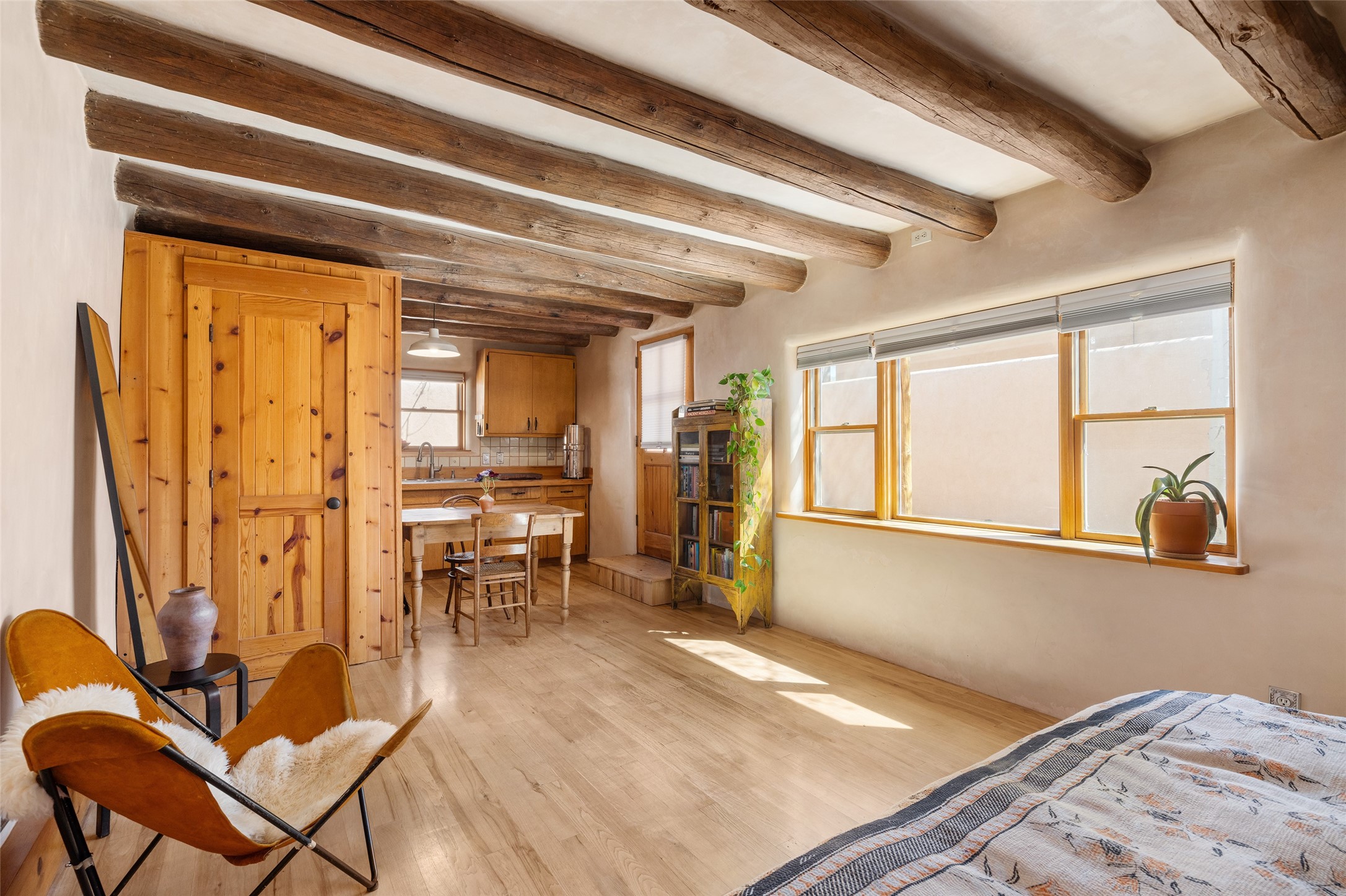 Pied--terre perfection in one of Santa Fe's most vibrant neighborhoods.Tucked at the end of a quiet, private lane near the iconic Railyard district, charming stand alone all-adobe studio is a rare find, the kind of intimate Santa Fe retreat that simply doesn't come along often. Whether you're looking for a full-time residence, or a savvy investment property, 945-C delivers authenticity, character, and location in one sweet package.Step through the gate into a walled courtyard, your own private outdoor sanctuary in the heart of the city. Inside, rich hardwood floors and a thoughtfully remodeled interior (completed in the early 2000s) create a warm, inviting space that feels anything but ordinary. The full bath with a tub large enough to spend some quality relaxation time, is a welcome addition to this beautiful space. The closet is ample with a laundry and shelving for additional storage. All of this is just a short distance from the Railyard's farmers market, restaurants, galleries, and the Railrunner. The very best of Santa Fe's creative and culinary scene right outside your door.Priced to sell and easy to show. Don't miss this one.