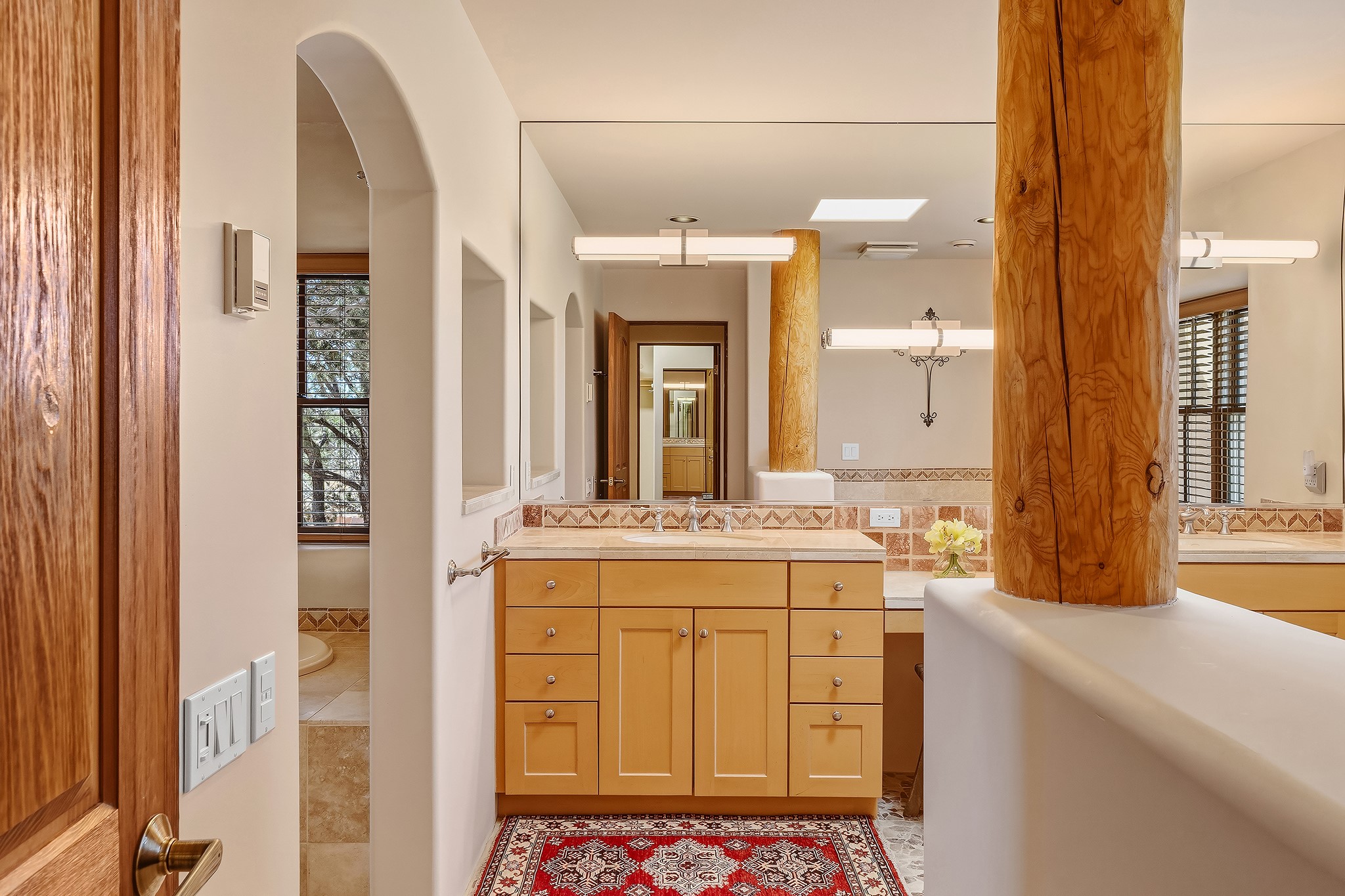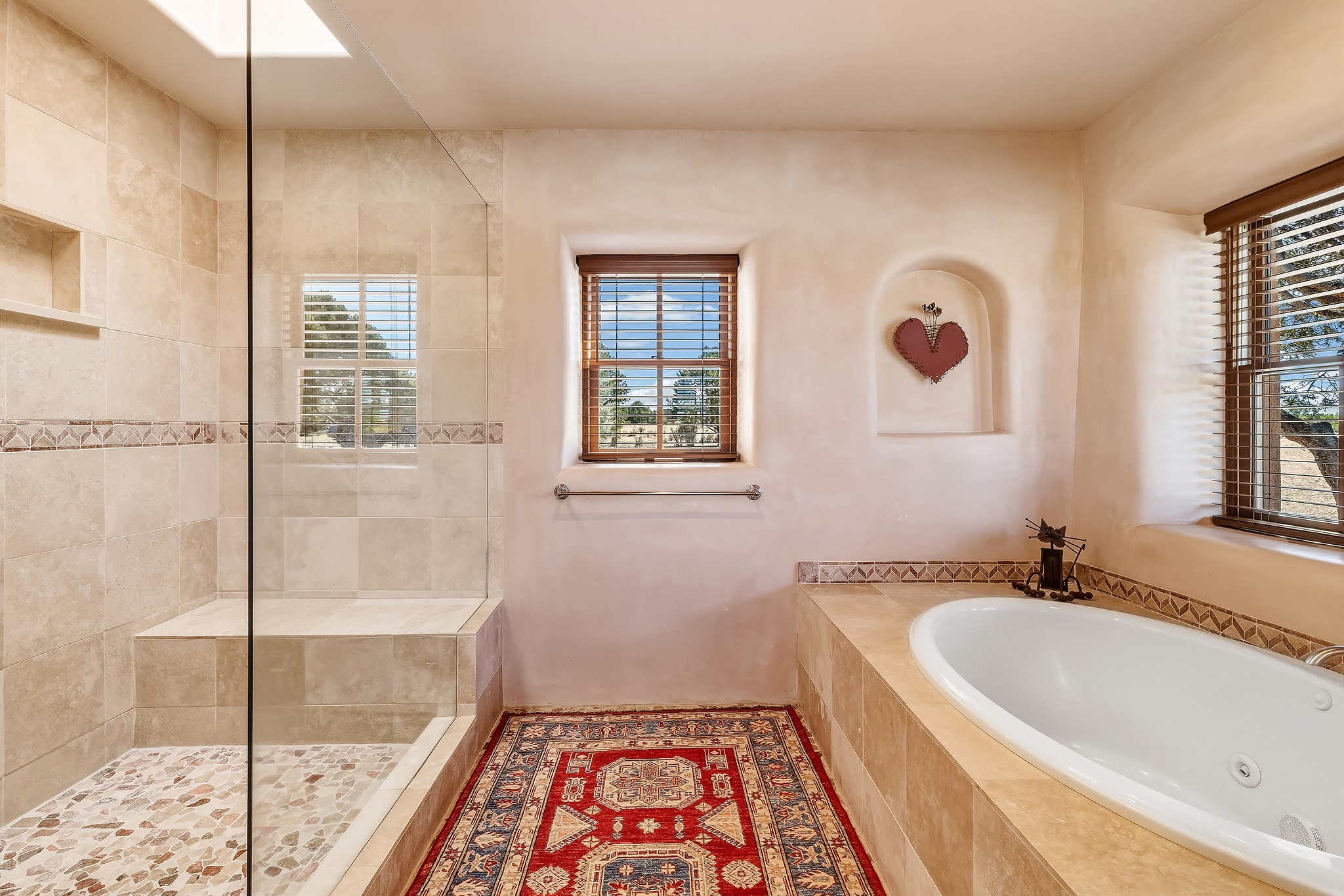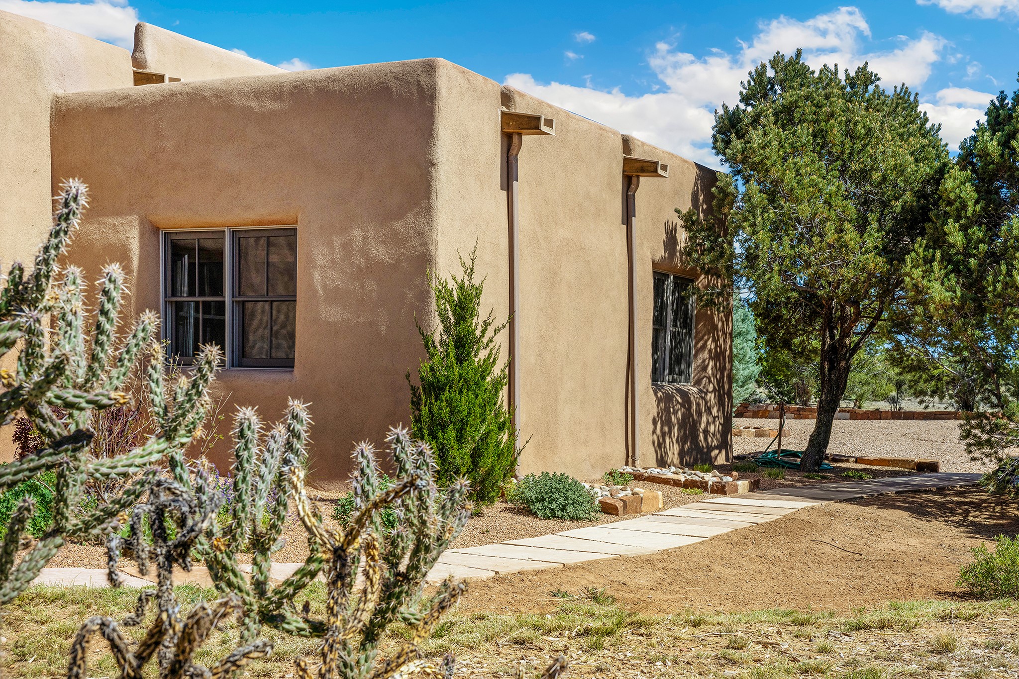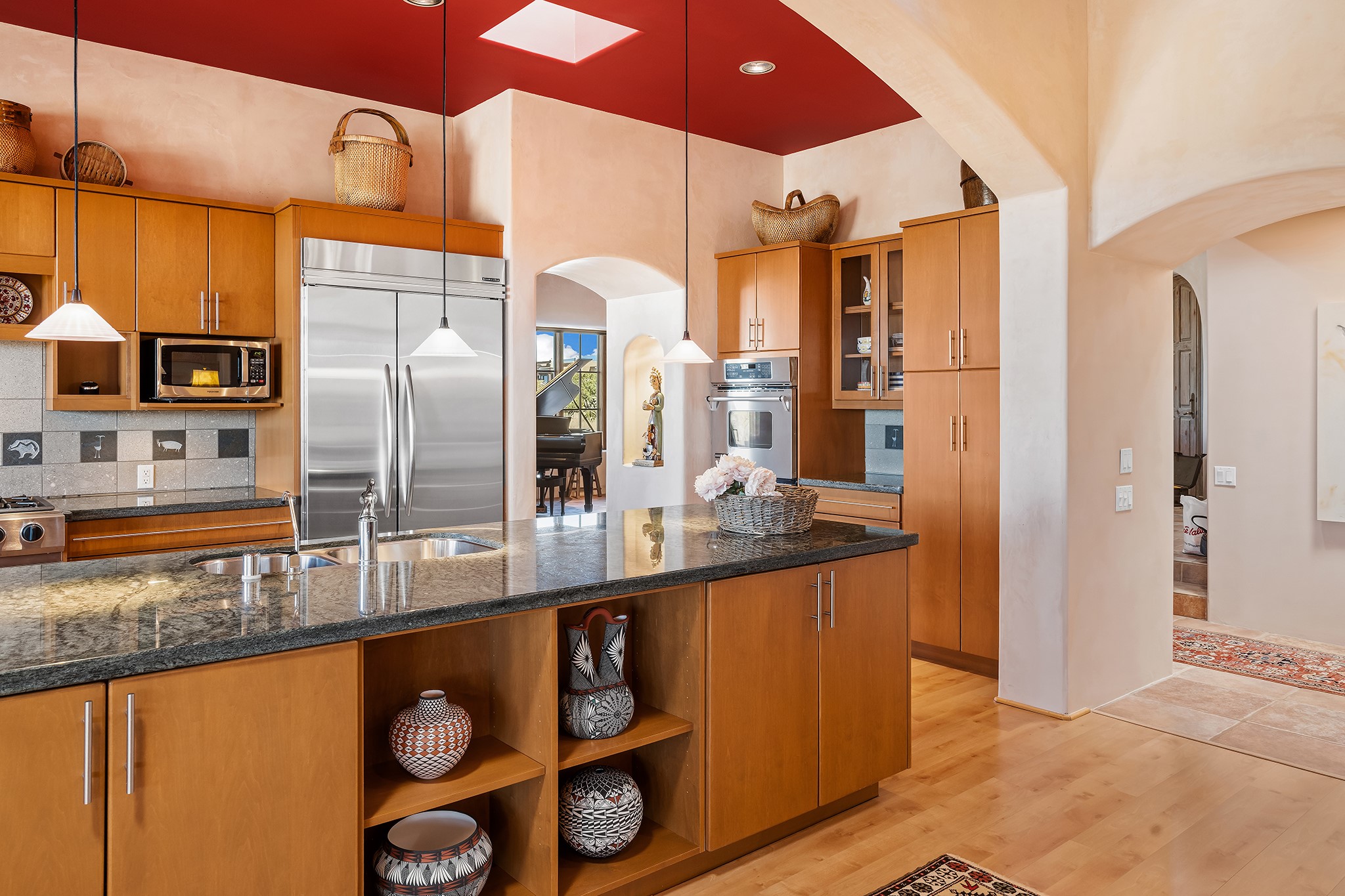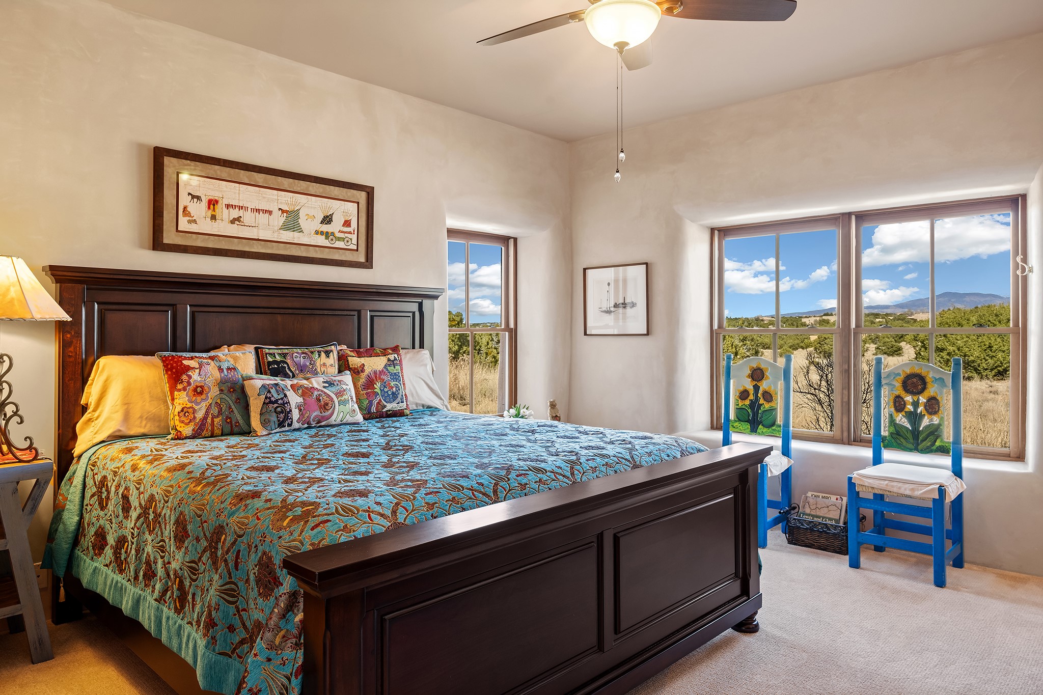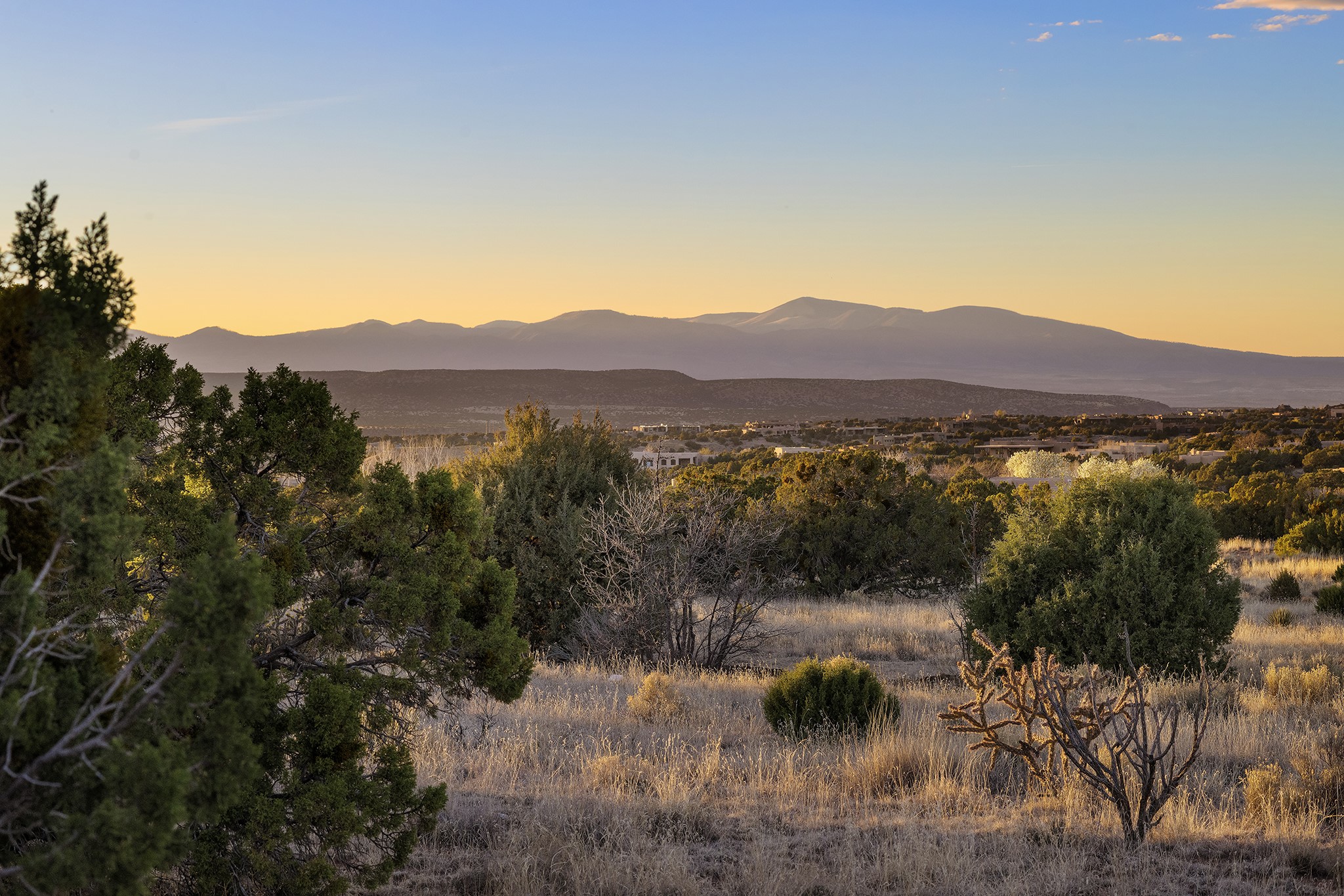 Panoramic views of the Jemez and Sangre de Cristo Mountains set the stage for this beautifully composed 3,833 sq. ft. residence on 2.67 acres in Las Campanas. As you enter the tree-filled front courtyard, a sense of quiet elegance unfolds--an immediate feeling of calm, privacy, and thoughtful design.The entry opens into a formal living room, where vigas fan gracefully toward the horizon, drawing the eye outward to the ever-changing mountain landscape. Just beyond, the dining room opens through glass doors to an expansive covered portal--nearly 1,000 sq. ft.--designed for seamless indoor-outdoor living. An outdoor fireplace and heater create an inviting setting for dining and gathering beneath Santa Fe's vast skies.Arched passageways lead into a striking kitchen and living space, where sculptural curves and a commanding kiva fireplace anchor the room. Granite countertops, stainless steel appliances, double ovens, and a 6-burner gas cooktop are complemented by a generous island with prep sink. A built-in banco offers a quintessential Southwestern moment--casual, intimate, and always oriented toward the view.The primary suite is a private retreat, opening to the portal and framed by breathtaking vistas. Its bath is equally serene, with dual vanities, a soaking tub, and a walk-in shower. A thoughtfully separated guest wing offers two spacious bedrooms, each enjoying its own connection to the surrounding landscape. Even the laundry room captures a quiet view of the front courtyard.Additional features include an 850 sq. ft. three-car garage, radiant in-floor heat, mini-split cooling, new stucco (2021), and a new $120K foam roof to be completed prior to closing.Set on 2.67 acres within Las Campanas, 81 Calle Ventoso W offers a rare opportunity to live immersed in light, landscape, and the timeless beauty of Santa Fe--where every moment is shaped by sky, horizon, and home.