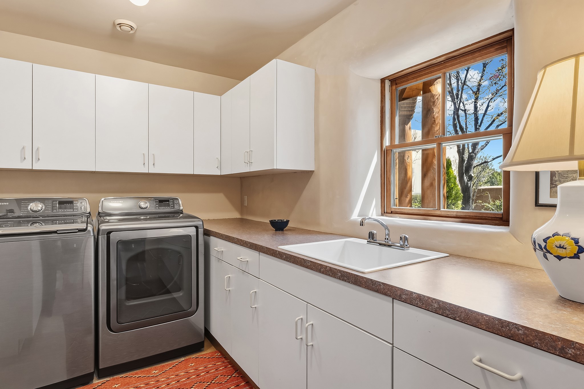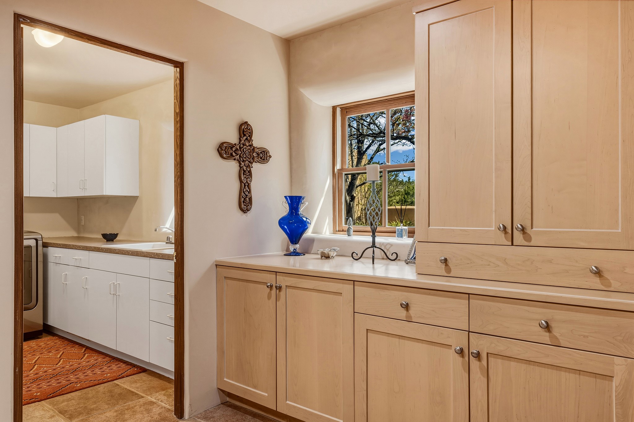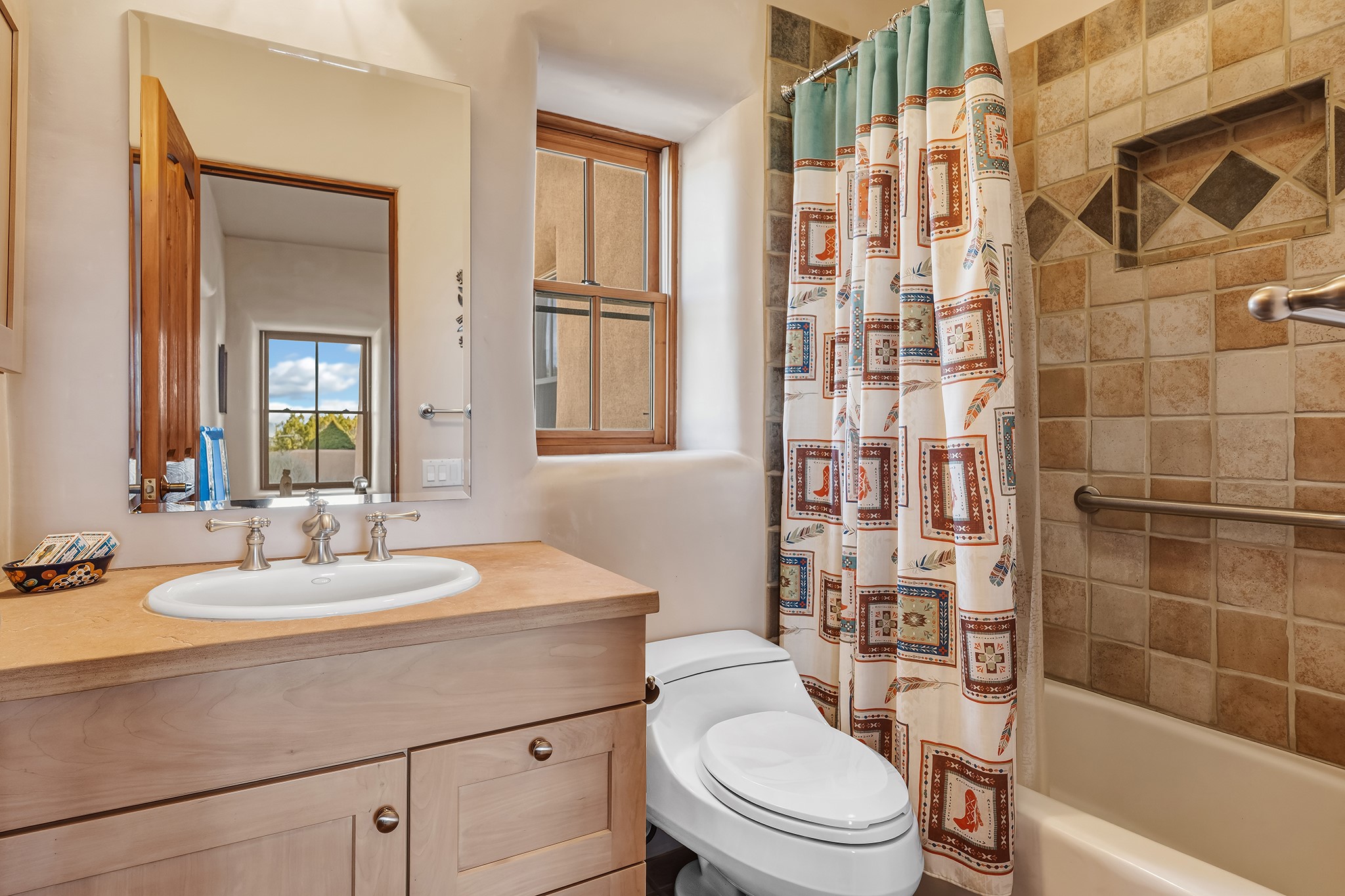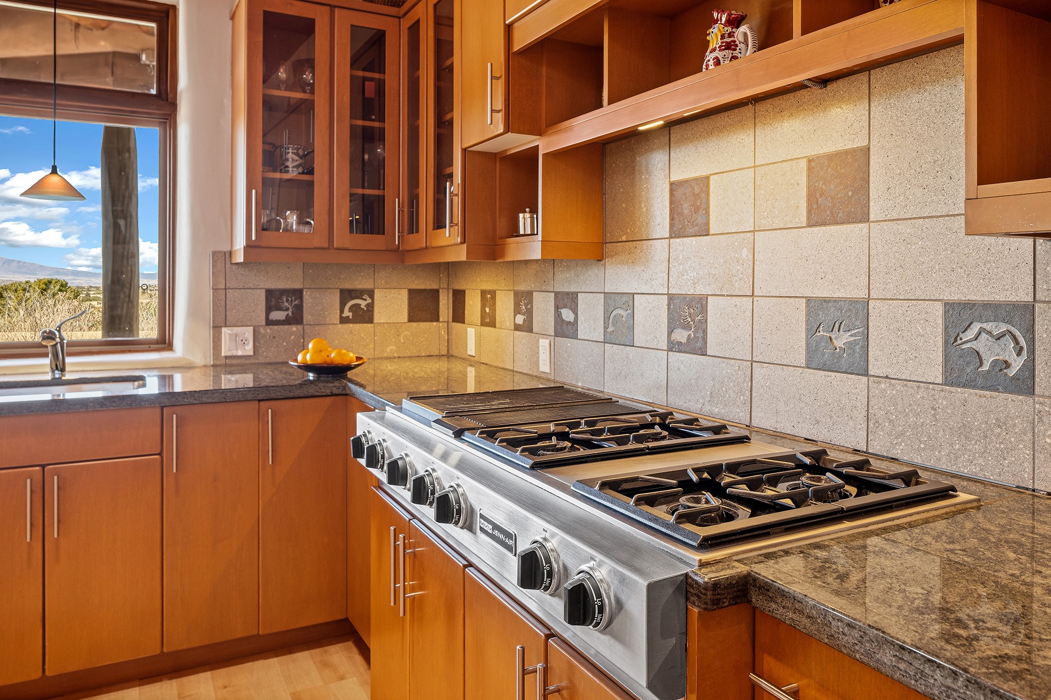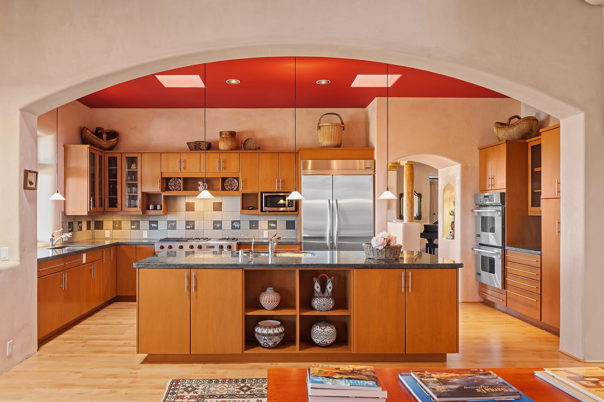Panoramic views of the Jemez and Sangre de Cristo Mountains set the stage for this beautifully composed 3,833 sq. ft. residence on 2.67 acres in Las Campanas. As you enter the tree-filled front courtyard, a sense of quiet elegance unfolds--an immediate feeling of calm, privacy, and thoughtful design.The entry opens into a formal living room, where vigas fan gracefully toward the horizon, drawing the eye outward to the ever-changing mountain landscape. Just beyond, the dining room opens through glass doors to an expansive covered portal--nearly 1,000 sq. ft.--designed for seamless indoor-outdoor living. An outdoor fireplace and heater create an inviting setting for dining and gathering beneath Santa Fe's vast skies.Arched passageways lead into a striking kitchen and living space, where sculptural curves and a commanding kiva fireplace anchor the room. Granite countertops, stainless steel appliances, double ovens, and a 6-burner gas cooktop are complemented by a generous island with prep sink. A built-in banco offers a quintessential Southwestern moment--casual, intimate, and always oriented toward the view.The primary suite is a private retreat, opening to the portal and framed by breathtaking vistas. Its bath is equally serene, with dual vanities, a soaking tub, and a walk-in shower. A thoughtfully separated guest wing offers two spacious bedrooms, each enjoying its own connection to the surrounding landscape. Even the laundry room captures a quiet view of the front courtyard.Additional features include an 850 sq. ft. three-car garage, radiant in-floor heat, mini-split cooling, new stucco (2021), and a new $120K foam roof to be completed prior to closing.Set on 2.67 acres within Las Campanas, 81 Calle Ventoso W offers a rare opportunity to live immersed in light, landscape, and the timeless beauty of Santa Fe--where every moment is shaped by sky, horizon, and home.