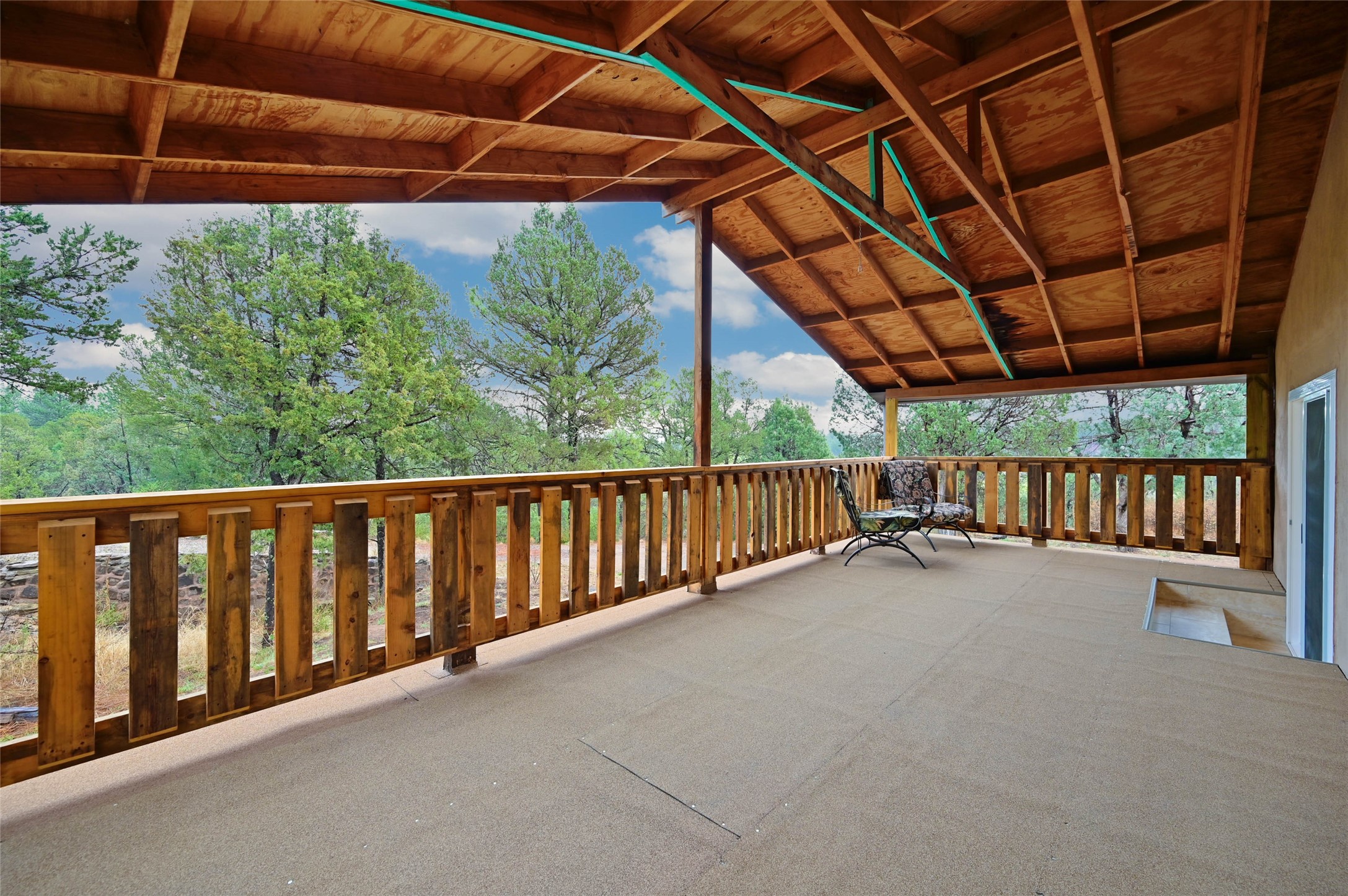 Captivating 3 bed, 2 bath retreat on 1.7 acres -- 5 Tortolita Lane, Glorieta, NM. Light- filled rooms framed by giant windows bring the trees and surrounding mountains inside, creating a serene, peaceful atmosphere. Thoughtfully refreshed and move in ready, the home offers generous living spaces, the security and privacy of a gated entrance and private well. Enjoy quiet country living with easy access to culture and dining -- just 26 minutes to downtown Santa Fe. Beautifully sited, well priced, and brimming with tranquility and views