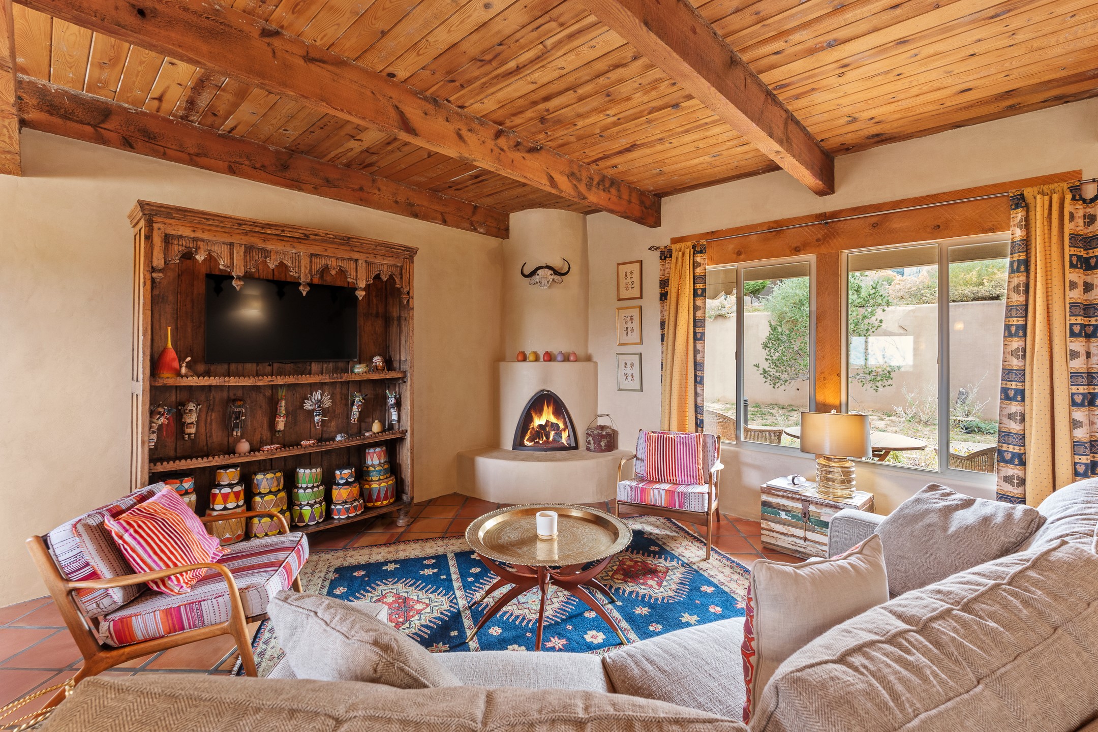 The Northeast of Santa Fe, within city limits, combines the pleasures of quiet living with the conveniences of location. On every tree-lined street are examples of newer, award-winning architecture and well-established, older adobes. In addition to the famous Plaza, this area includes all the land reaching up to the Jemez and the Sandias. Newer developments appear on your left and right as you climb in altitude into the tree-studded Sangre de Christos. Historically this area was for many years the center of life in Santa Fe. On one side of the Plaza stretches the Palace of the Governors. Constructed in the early 17th century as Spain’s seat of government, the Palace of the Governors in Santa Fe chronicles and documents the history of the city, as well as New Mexico and the region. Stroll down East Palace Avenue past galleries, shops and lovely hotels.