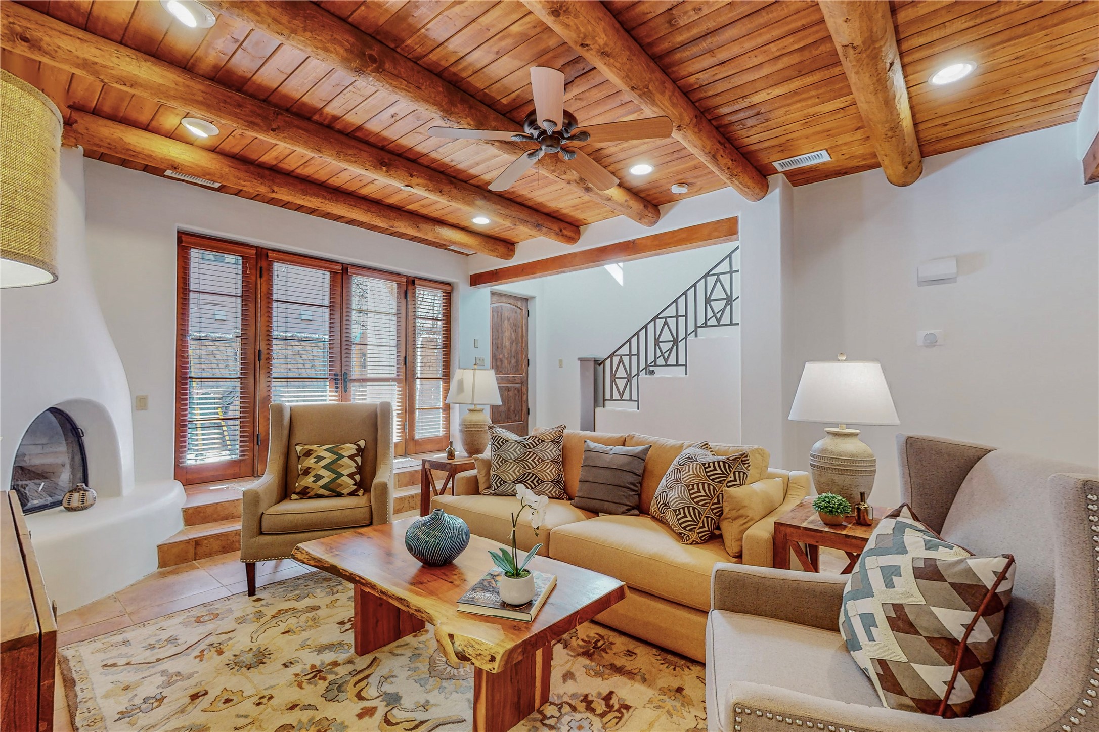 The Northeast of Santa Fe, within city limits, combines the pleasures of quiet living with the conveniences of location. On every tree-lined street are examples of newer, award-winning architecture and well-established, older adobes. In addition to the famous Plaza, this area includes all the land reaching up to the Jemez and the Sandias. Newer developments appear on your left and right as you climb in altitude into the tree-studded Sangre de Christos. Historically this area was for many years the center of life in Santa Fe. On one side of the Plaza stretches the Palace of the Governors. Constructed in the early 17th century as Spain’s seat of government, the Palace of the Governors in Santa Fe chronicles and documents the history of the city, as well as New Mexico and the region. Stroll down East Palace Avenue past galleries, shops and lovely hotels.