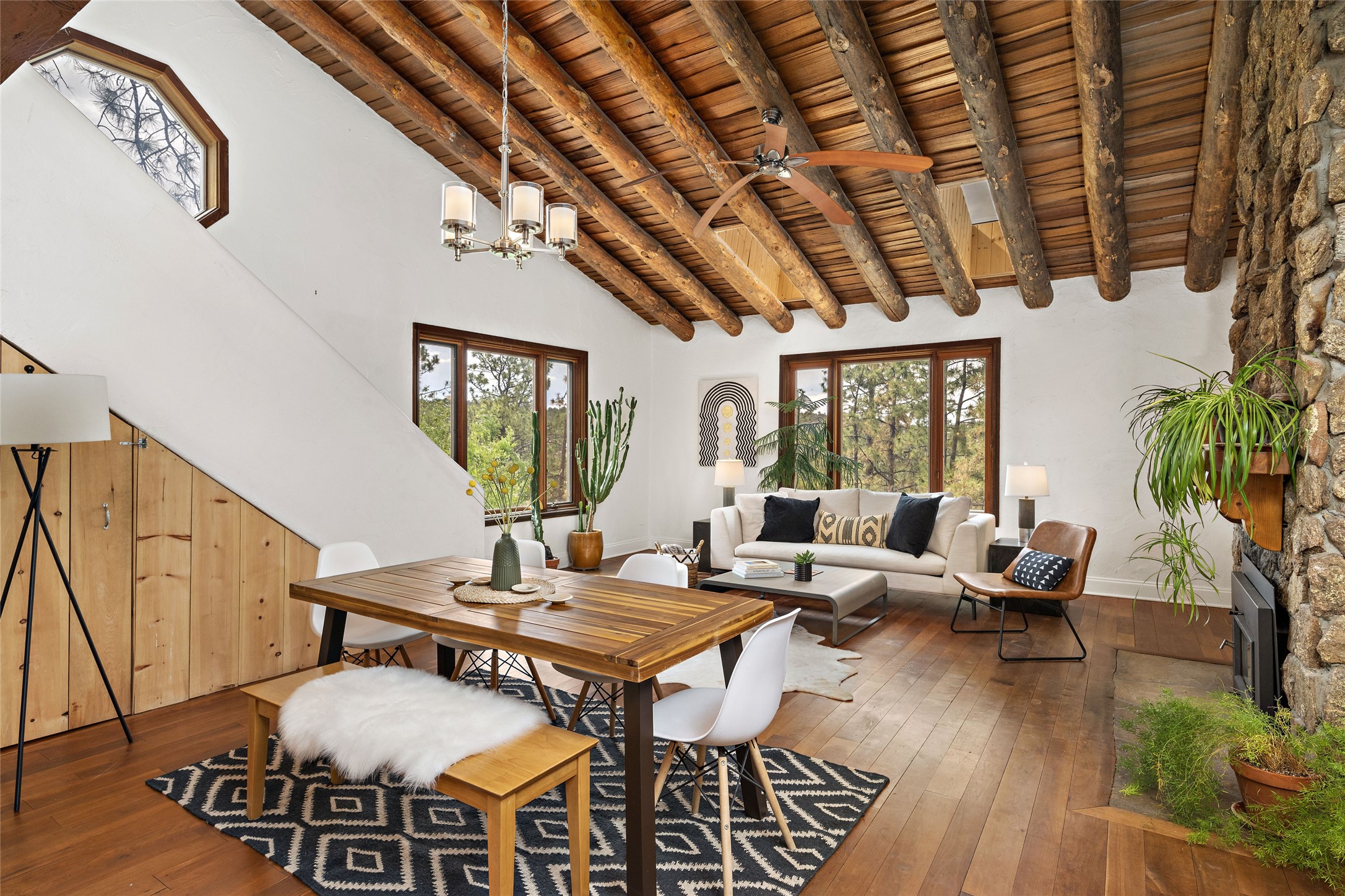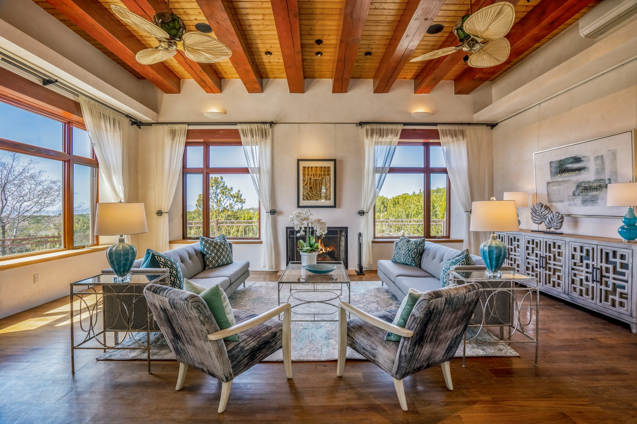 As the Old Santa Fe Trail winds north, these lovely, heavily-forested communities run alongside. Located in the foothills of the Sangres, the lower elevations provide rolling hills of pinon and juniper with the high-elevation nestled in mountainous terrain. All have wonderful views of the Sandias and famous Santa Fe sunsets. Most lots start at 2.5 acres and some are over ten. The area includes Cloudstone, La Vista, Coyote Mountain Road, Mercer, Double Arrow Road, La Barberia, Overlook I and II, north and south of Old Santa Fe Trail from Camp Stoney cutoff.